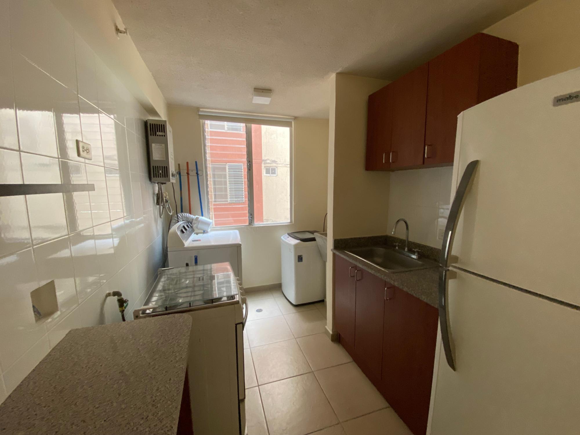 Alquilo Cómodo apartamento con excelente ubicación, cerca al aeropuerto, a pasos de la Estación del metro de don Bosco. con acceso al corredor sur y corredor Norte. Encuentra cerca supermercados, restaurantes, zonas de bancos y comerciales, que facilitaran tu buen vivir El PH cuenta con garita de seguridad, piscina, gazebo, estacionamientos de visita. Cada torre cuenta con ascensor. Esta bonita unidad cuenta con • 2 Recámaras • 2 Baños • Sala Comedor • Área de Lavandería • Ventilación y luz natural • 1 estacionamiento Se alquila con línea blanca (Estufa, nevera, lavadora secadora) Aire acondicionado en la sala comedor y recámaras. CERCA AL AEROPUERTO A UN PASO DE LA ESTACION DEL METRO