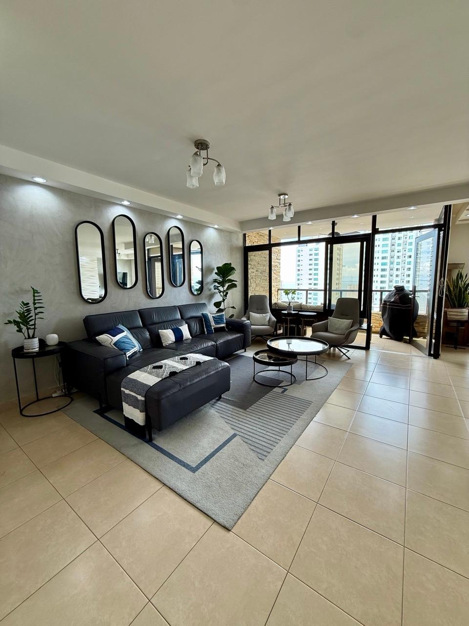 Apartamento en Alquiler Amoblado en Parque del Mar, con vista al mar, piso alto, amplio balcon, sala comedor, den fam., 3 recamaras con baños, cocina con lavanderia y cuarto de servicio, aires acondicionados y linea blanca, 2 estacionamientos, tiene una excelente ubicacion, proximo a las Multinacionles, comercio, restaurantes, bancos, esculas, area recreacional y mas.