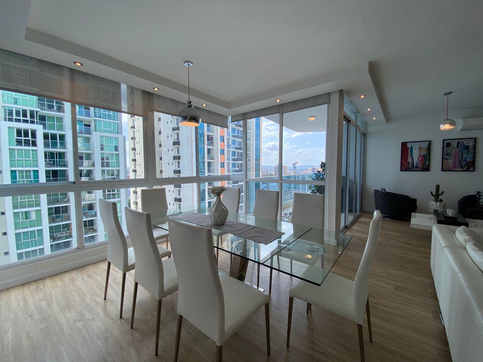 Apartamento de 3 recámaras y 2.5 baños en la calle 43 Bella Vista a pocos pasos de la Avenida Balboa y el Parque Urracá, con cocina remodelada y muebles modernos. El apartamento cuenta con 2 balcones, uno en sala-comedor y otro en recámara principal. Amplia sala-comedor, cocina con área para desayunador, closets para blancos, amplia lavandería y cuarto y baño de servicio. La calle cuenta con supermercado y farmacia y a un poco más de una cuadra se encuentra la cinta costera, donde se puede relajar, caminar o realizar varios deportes.