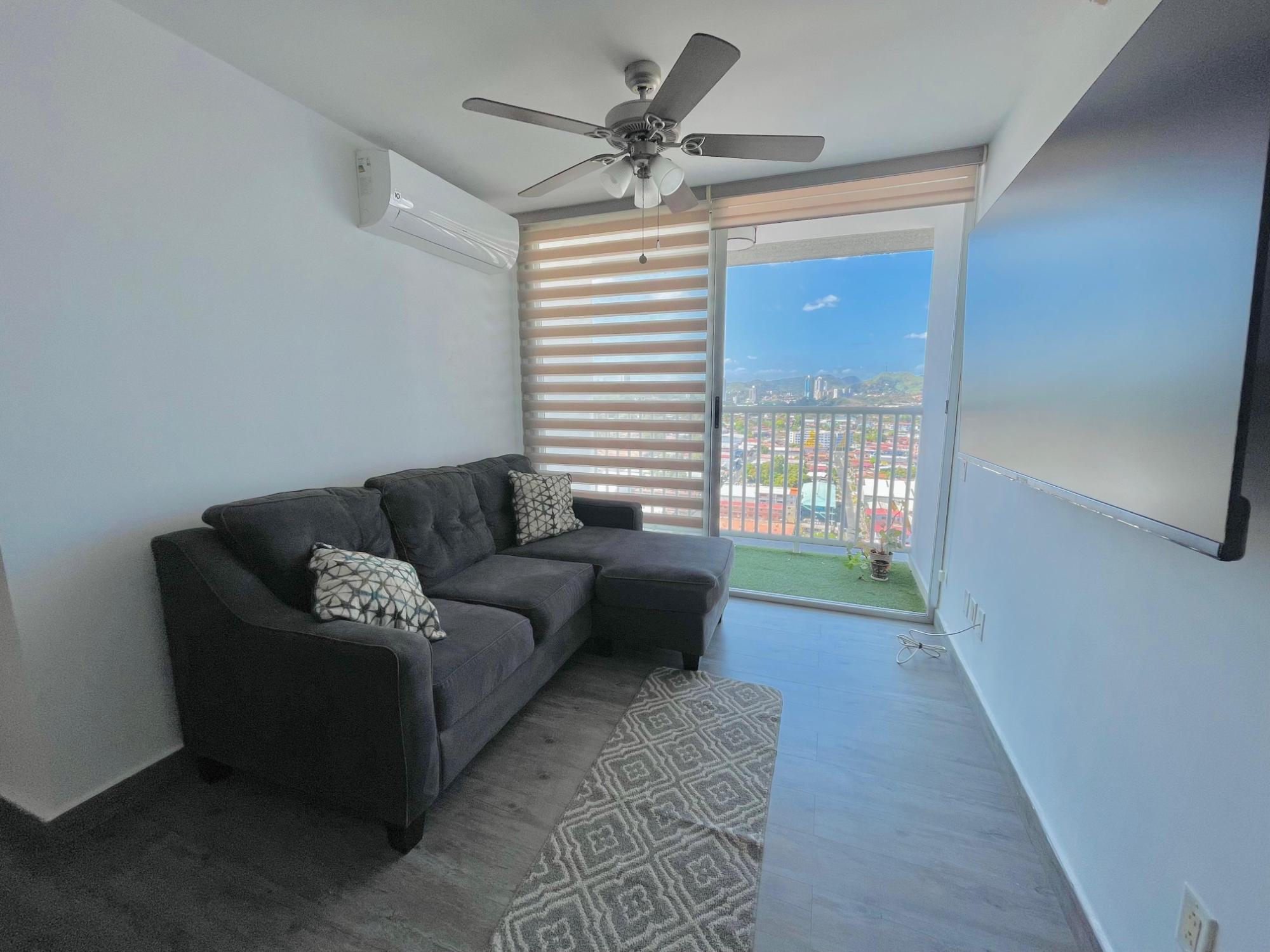 Apartamento en Alquiler Amoblado en Parque Lefevre - PH Alegría El PH Alegría cuenta con una excelente ubicación estratégica en Vía España, cerca de supermercados, farmacias, panaderías, restaurantes y a minutos de Costa del Este y San Francisco, por sus distintas vías de acceso y transporte público. El apartamento cuenta con: 66m2, 2 recámaras, 2 baños completos, 1 parking, Línea Blanca, Aires acondicionados inverter, Cocina Abierta con sobre de granito, Amoblado moderno, Lámparas y persianas, Remodelado, Balcón. El edificio cuenta con área social, salón de fiesta, gimnasio, piscina, parque infantil, lobby, planta eléctrica, tanque de agua, planta eléctrica, estacionamiento de visitas y seguridad 24 horas.