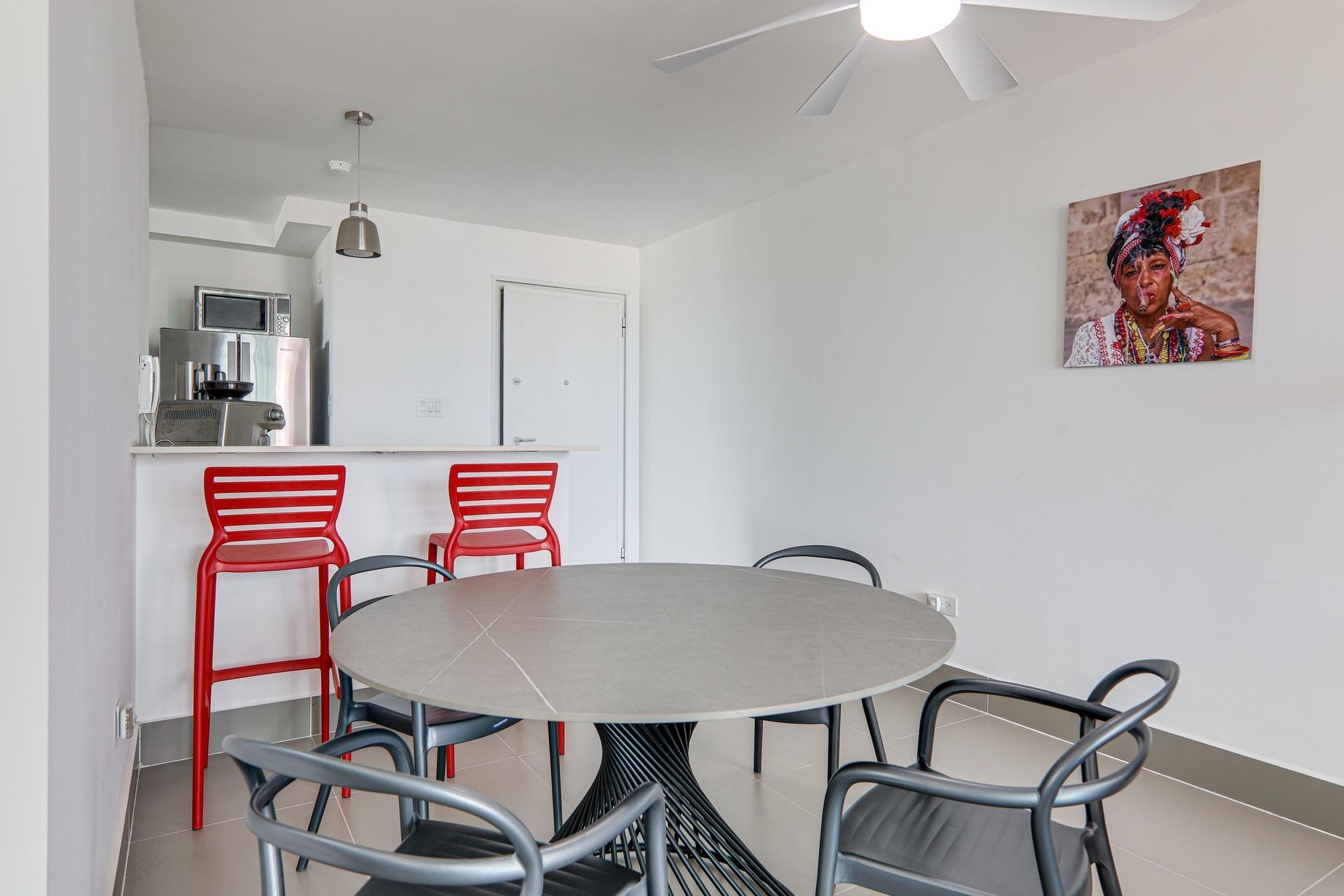 P.H. Altamira Residences es una torre moderna ubicada en Bella Vista, una de las zonas más deseadas del centro de la Ciudad de Panamá. A sólo pasos de la estación del metro y rodeado de supermercados, farmacias, cafés y restaurantes, Altamira Residences ofrece una ubicación privilegiada a un precio accesible. Este bello apartamento full amoblado está ubicado en un piso alto, ofreciendo vistas panorámicas de la ciudad hacia el Casco Viejo, el Cerro Ancón y las áreas revertidas del Canal de Panamá. Las características adicionales del apartamento incluyen: 92.56 m2 de área construida; Sala-comedor con acceso directo al balcón; Cocina abierta con sobres de cuarzo, electrodomésticos de acero inoxidable y área de lavado integrada con lavadora y secadora de tamaño completo; Recámara principal con ventanales de piso a techo, walk-in closet y baño privado; Segunda recámara con baño completo adyacente; Tres unidades de aire acondicionado Inverter Panasonic de primera línea y de bajo consumo con control WiFi para un máximo ahorro de energía; Abanicos de corriente directo (sin ruido) con control remoto en sala, comedor y recámaras; Rollers dobles (de privacidad y blackout) en instalada en cada ventana; Totalmente amoblado con muebles de diseño italiano de alta calidad de marca Tempo Design; Un estacionamiento asignado ubicado en el primer piso Las áreas sociales de Altamira Residences incluyen una gran piscina con terraza grande y área techada de BBQ/bar; parque infantil al aire libre; gran sala de juegos; salón de fiestas para eventos sociales; centro de trabajo conjunto (co-working); y gimnasio bien equipado en la azotea.