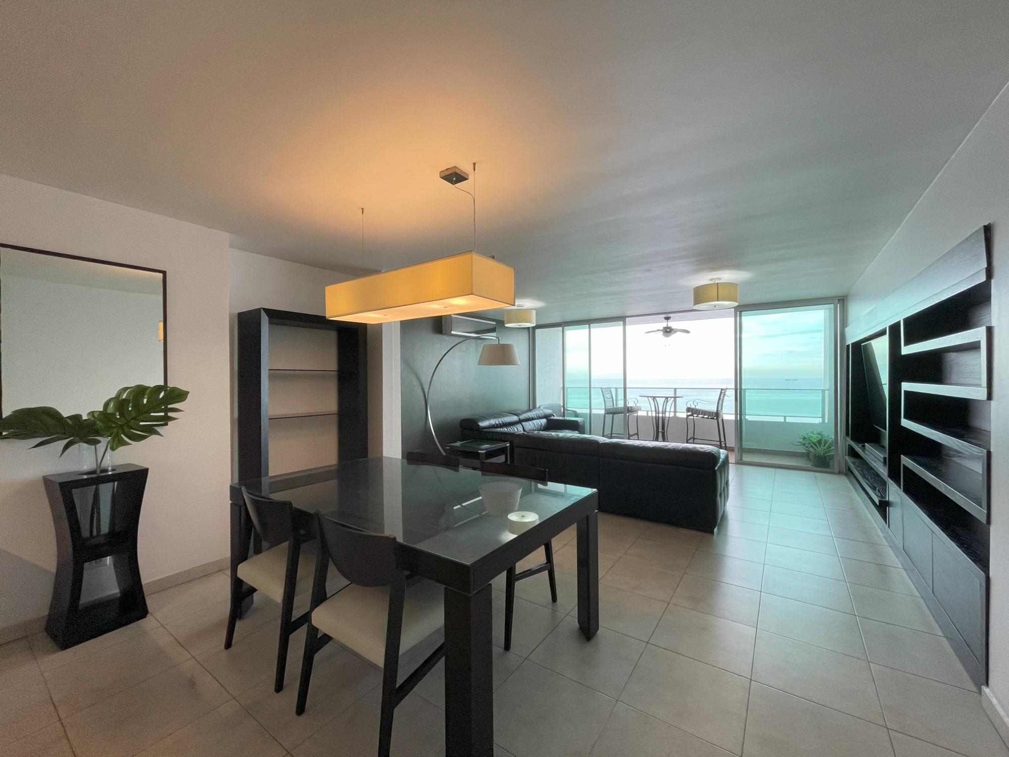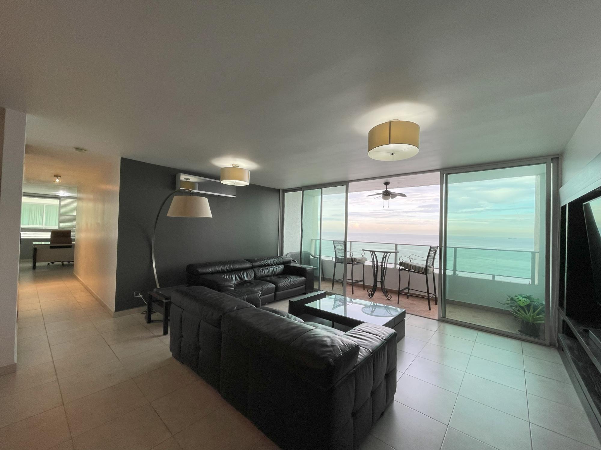 152 m2 Balcón con vistas al mar Amoblado 3 Recámaras con Walk-in closet y baño. Baño de visita Den con mueble de oficina. Sala comedor Cocina Abierta con línea blanca (nevera, estufa, extractor, lavaplatos y horno) Lavandería con lavadora, secadora, tina y calentador de agua 2 estacionamiento Aires acondicionados Cuarto y baño de servicio Área social con piscina Salón de fiestas, Parque Infantil Gimnasio Área Social no aceptan mascota.