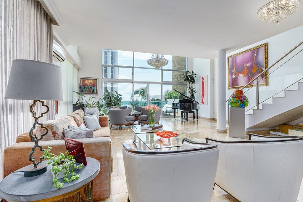 Hermoso apartamento tipo Loft de 372.26m2 con ubicación estratégica cerca de vías principales de la ciudad y con acceso a poco metros al corredor sur y a diferentes lugares de interés comercial y social. En el primer nivel el apartamento cuenta con vestíbulo de entrada, medio (1/2 ) baño de visitas, comedor, amplia sala con varios ambientes y doble altura en la parte frontal, terraza, den o cuarto de juegos para niños, cocina con isla y entrada de servicio, área de lavandería, cuarto y baño de empleada. El segundo nivel esta distribuido en vestíbulo, pasillo de circulación con closet, sala de estar o estudio, recámara Principal con baño con doble lavamanos y cuarto vestidor y dos (2) Recámaras Secundarias con baño y área de vestidor cada una. El PH cuenta con estacionamientos para visitas, puerta cochera, Lobby con dos (2) ascensores y escaleras, área social con salón de fiestas, terraza abierta, terraza cubierta con bar, baños, piscina, ducha, área de juegos de niños y gimnasio con sauna.