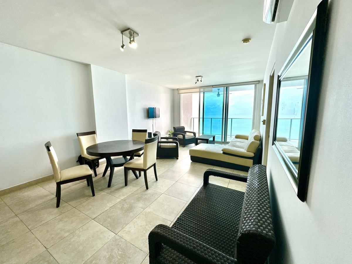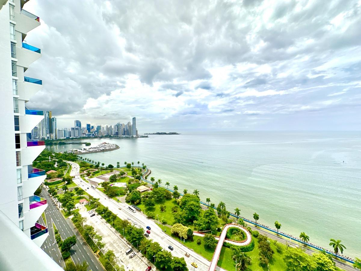 Vive con elegancia frente al mar en este espectacular apartamento de 101 m², ubicado en el piso 30 del prestigioso PH H2O On The Ocean, en la emblemática Avenida Balboa, Ciudad de Panamá. Características destacadas: 1 recámara amplia con vista directa al océano, ideal para despertar cada mañana con el sonido del mar. Baño completo, más un medio baño de visitas. Cocina abierta, moderna, integrada al área social, perfecta para recibir invitados o relajarse viendo el horizonte. Balcón con panorámica al mar, ideal para contemplar atardeceres y disfrutar de la brisa marina. 1 estacionamiento asignado. Amenidades y ubicación inmejorable: Edificio con seguridad 24 horas, acceso controlado. Piscina, gimnasio, sala social, áreas comunes bien mantenidas. A pasos de la Cinta Costera, con fácil acceso a restaurantes, supermercados, centros comerciales y principales vías de la ciudad. La altura del piso (30) garantiza vista despejada al mar y máxima privacidad. Ideal para: Parejas o personas solas que buscan confort y estilo de vida con vistas increíbles. Inversionistas que desean una propiedad con alta demanda por alquiler vacacional o ejecutiva.