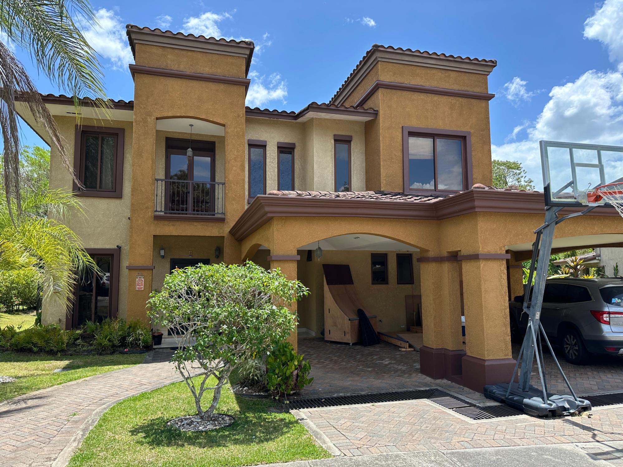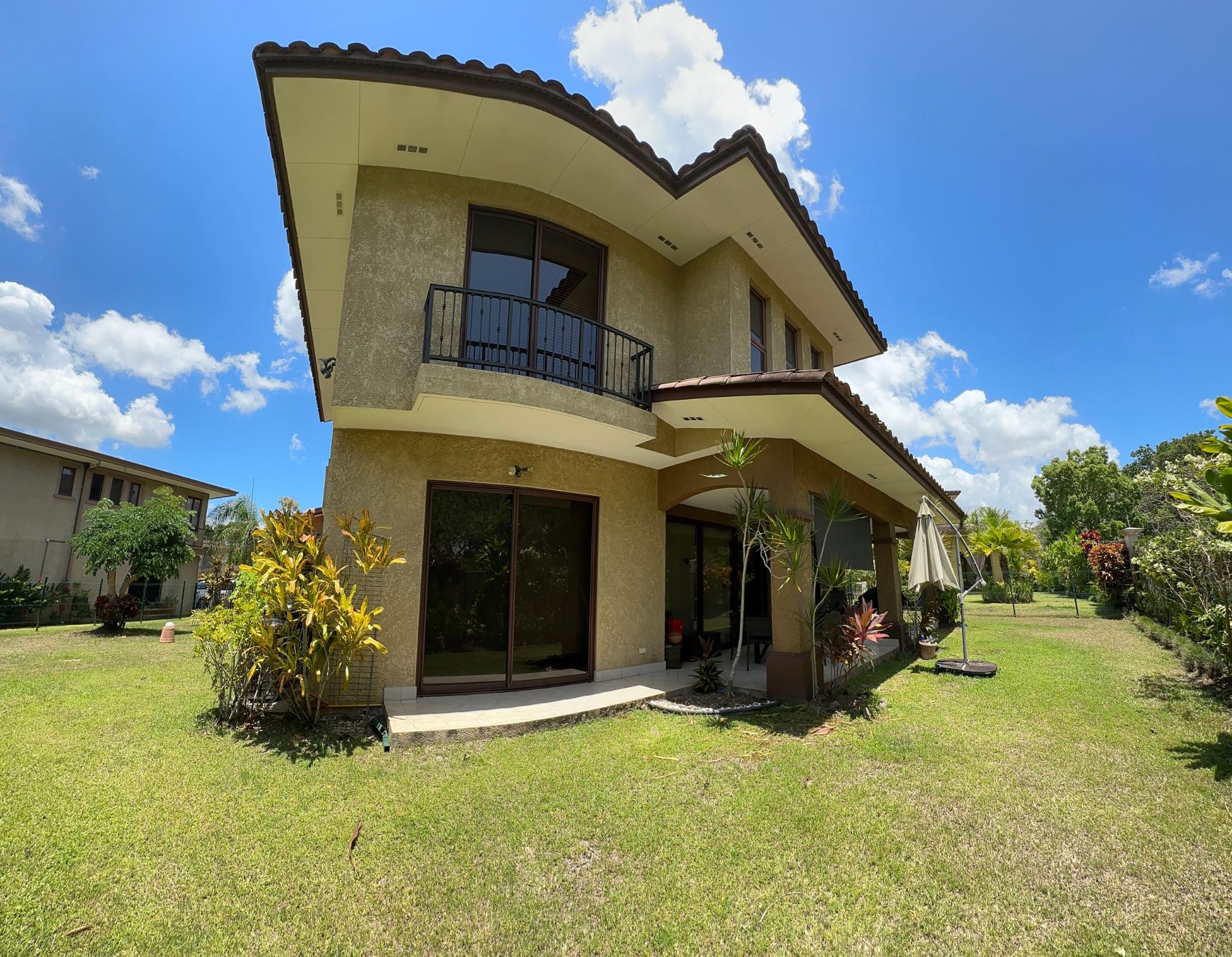 Casa Ubicada en PH Embassy Club, Forest State 458 m2 const. 774 m2 de terreno 4 recámaras con baño Recámara principal con jacuzzi y walkincloset ½ baño de visita Den cerrado Family room Terraza Techada Amplio Salón Comedor Depósito 3 parking techados (capacidad para 6 autos) Cuarto y Baño de empleada Amplia lavandería techada y cerrada Cocina cerrada con desayunador y salida directa al jardín y terraza Amplio jardín, más grande que el promedio Pisos de cerámica importada Balcón con linda vista 4 aires centrales Estufa, Neveras gemelas, extractor, lavaplatos automático, lavadora smart , secadora, triturador de desechos y calentador de agua Condominio 463$ (no incluye servicios de gas, agua y aseo) Año de construcción 2009, exoneración hasta 2029 } PH Ubicado en Clayton muy cerca del Canal de Panamá y Ciudad del Saber, con amenidades recreativas como: Casa Club con café restaurante, Gimnasio, Canchas de tenis, futbol y basquet, Piscinas, parque infantil, gazebos, Salones de Eventos y Seguridad 24/7. Se vende en 1.050.000$ (2300$/m2) Se alquila en 4950$ Para citas llamar a Grace Valero