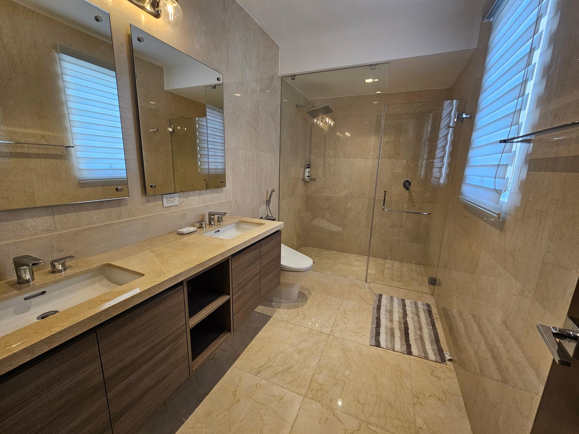 Casa estilo Town Home de lujo en alquiler en Santa María, Panamá. Viva el estilo de vida definitivo en Santa María, Panamá, la comunidad más prestigiosa de la ciudad, donde la elegancia, la comodidad y el diseño moderno se fusionan. Esta impresionante casa estilo Town Home de 318 m² ofrece pisos de mármol, electrodomésticos de alta gama y acabados de lujo en toda la propiedad. Cada espacio está diseñado con atención al detalle, combinando sofisticación y funcionalidad. La planta principal cuenta con una cocina de concepto abierto, amplias salas de estar y comedor, y un baño de visitas, ideal para recibir invitados. En la planta superior, tres amplias habitaciones, cada una con su propio baño, brindan privacidad y comodidad para todos los miembros de la familia. El tercer piso ofrece un espacio abierto con un baño completo que puede funcionar fácilmente como una cuarta habitación, suite de invitados, oficina o sala multimedia. Un garaje para dos autos completa esta excepcional residencia. Los residentes disfrutan de acceso a servicios de primer nivel, que incluyen un área social estilo playa, un gimnasio de última generación, canchas de tenis y baloncesto, y hermosas áreas recreativas ajardinadas. Disponible amueblada o sin amueblar, esta es la mejor casa adosada modelo en alquiler en Santa María. Su ubicación privilegiada ofrece fácil acceso a los mejores colegios, centros comerciales, supermercados, farmacias y mucho más. Disfrute de un estilo de vida refinado donde el lujo se une a la comodidad en Santa María, Panamá. Programe su visita privada hoy mismo.