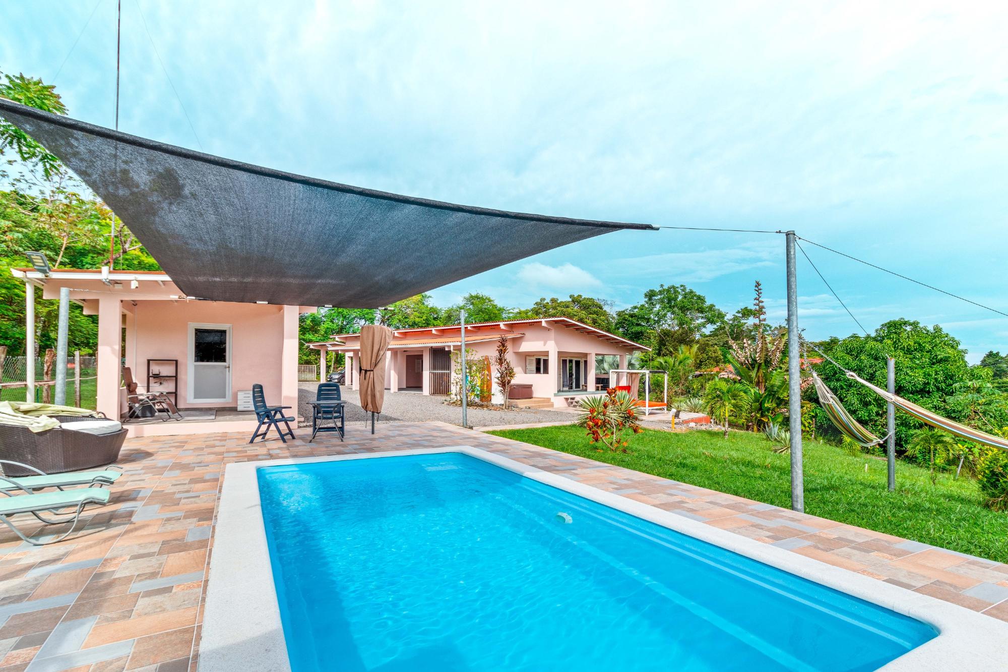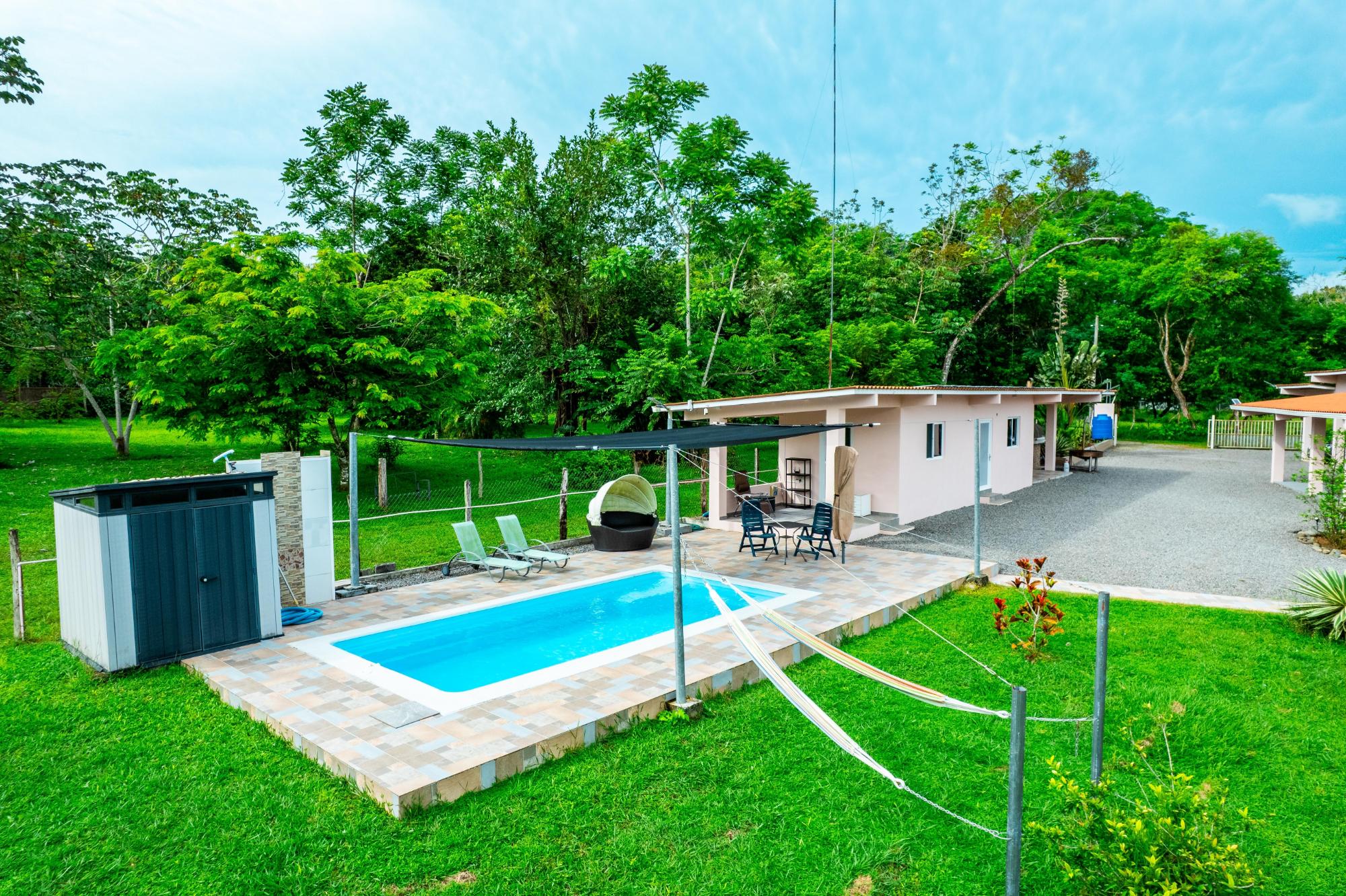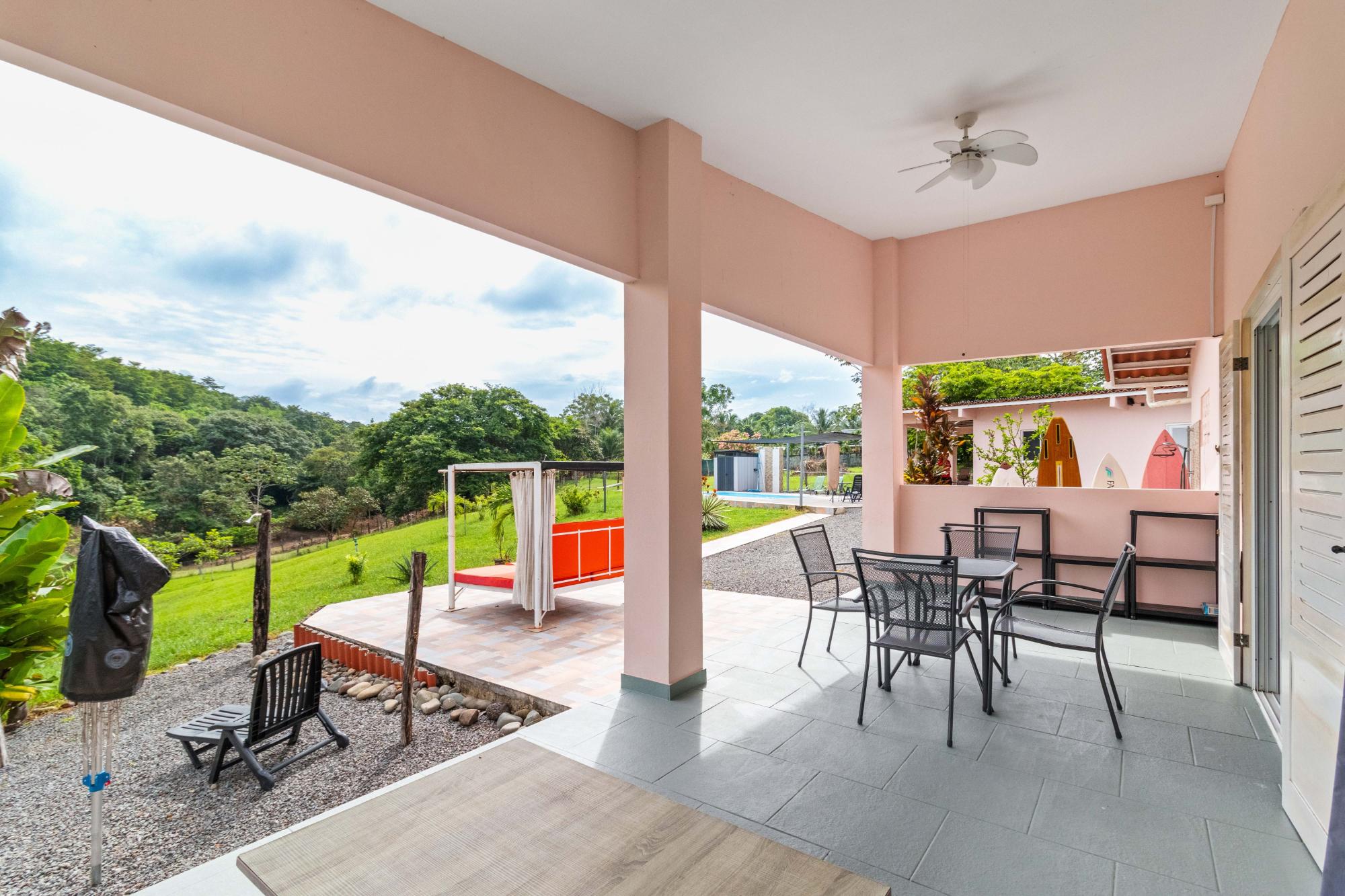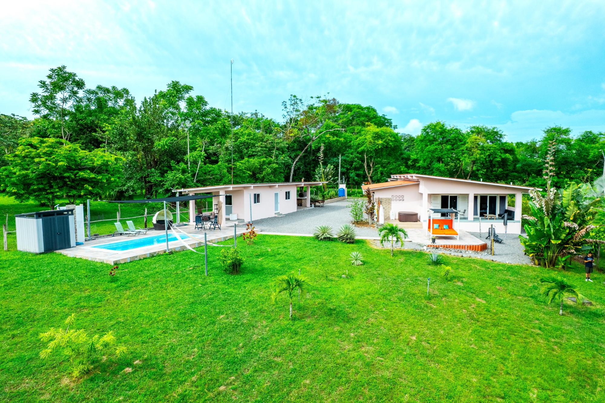 Bienvenido a esta hermosa casa completamente amueblada, ideal para familias o como dúplex. La propiedad se encuentra en un tranquilo y verde paisaje a solo unos minutos de la playa, ofreciendo una combinación ideal de naturaleza y confort. Disfrute de las comodidades de su terraza privada en medio de un amplio jardín tropical. Relájese en la piscina, protegida del sol, en las cómodas sillas de lona, en la hamaca o en el pabellón. La terraza también cuenta con una ducha exterior y un cobertizo para equipos de piscina. Para disfrutar de veladas sociales, hay una mesa de ping pong, hamacas y una cinta de correr. Además, un jacuzzi, un horno de piedra y una parrilla de acero inoxidable ofrecen una experiencia culinaria al aire libre. La casa cuenta con una moderna cocina con refrigerador y filtro de agua potable, además de lavadora y secadora. Los ventiladores y el aire acondicionado central proporcionan comodidad durante todo el año. La propiedad está completamente cercada e incluye su propia entrada para autos, dos plazas de aparcamiento cubiertas con portón eléctrico y una caseta de jardín. Otra característica destacada es la segunda casa con dos habitaciones, que puede utilizarse de diversas maneras, como por ejemplo, para alquilar. La finca cuenta con electricidad, agua e internet Starlink, además de un tanque de agua de lluvia para riego. ¡Un verdadero paraíso para los amantes de la naturaleza y las familias que desean disfrutar de la vida en un entorno verde y tranquilo! Junto al jardín, hay un terreno adicional con su propio pozo, un pequeño río y una pequeña zona de bosque, que se puede adquirir por separado. Esta propiedad también ofrece una parcela adyacente con su propio pozo, un pequeño río y un pequeño bosque.