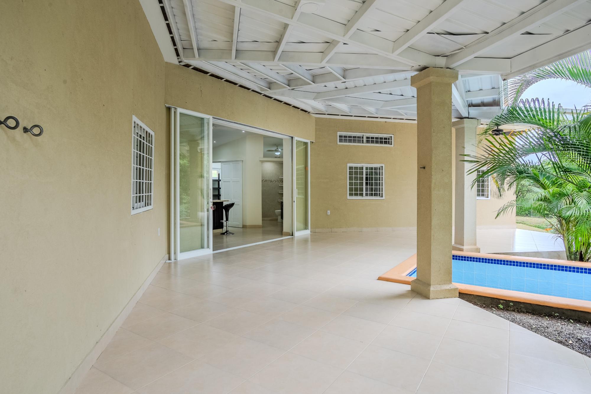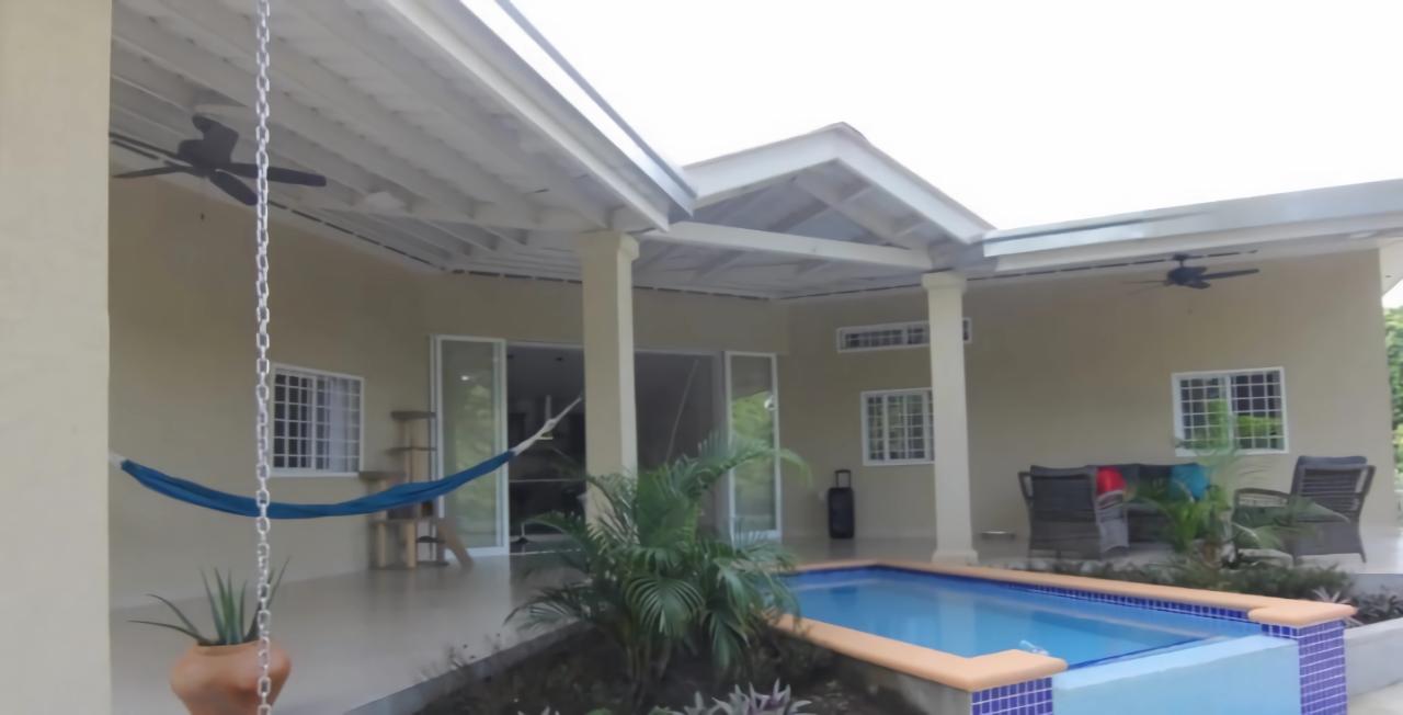 Ubicada en la carretera a El Valle, ya solo 20 minutos de Coronado, encontrará esta hermosa y luminosa casa de nueva construcción de 3 dormitorios y 2 baños. Esta casa está ubicada en una subdivisión privada de 5 lotes. Construida según los estándares norteamericanos, esta casa tiene 95.5m2 de espacio interior y un total de 149m2, y se asienta sobre más de 3/4 de acre de terreno, que está completamente cercada y cerrada. La casa cuenta con muchas características, como servicios públicos subterráneos, una piscina refrescante, azulejos de cerámica en todas partes, encimeras de granito en la cocina y los baños, ventanas europeas de alta calidad, un amplio patio cubierto junto a la cocina y la sala de estar, tomacorrientes USB cableados para cargar cómodamente aparatos eléctricos, aire acondicionado y puertas de seguridad con cerradura múltiple en cada habitación. La fuente de agua es abastecida por un pozo comunitario que da servicio a los 5 lotes. Esta belleza viene amueblada e incluye todos los electrodomésticos, incluido el horno, el lavaplatos, el refrigerador y la lavadora. Secadora también! pozo comunitario para 5 lotes cuesta $ 5 por mes para electricidad
