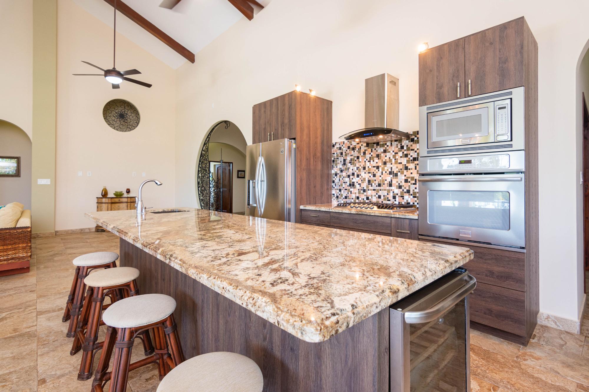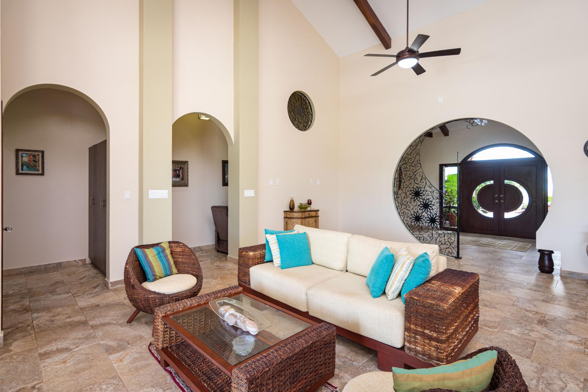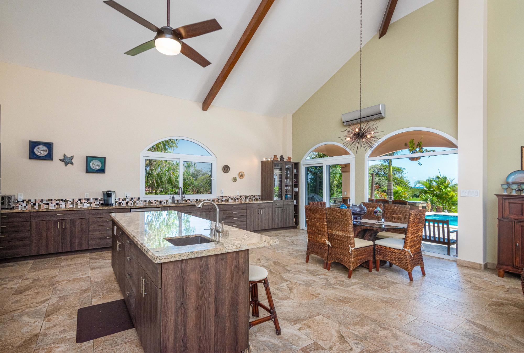 Esta hermosa casa personalizada en la comunidad cerrada frente a la playa de Costa Pedasi fue construida en 2016. La casa fue diseñada para ofrecer la combinación perfecta de vida interior y exterior, con amplias habitaciones, una increíble "gran sala" de planta abierta y un gran patio trasero. Terraza y zona de piscina con zonas de sombra y zonas de sol para adaptarse a cualquier momento del día y cualquier tipo de clima. De pie frente a la casa, su atención se centra en las puertas de madera del garaje personalizadas y la enorme puerta de entrada personalizada. Al entrar al espacioso vestíbulo, gire a la derecha para visitar los dormitorios y el estudio, o siga recto a través de un hermoso arco circular hacia la gran sala, que es el punto focal de la casa. La cocina, el comedor y la sala de estar de planta abierta de la casa son perfectos para el entretenimiento. La gran sala tiene techos altos, iluminación personalizada y mucho espacio en el mostrador de granito. Desde aquí puede dirigirse al área de entretenimiento al aire libre o girar hacia una gran despensa y el garaje cerrado para 2 autos más allá. Terraza de la piscina al atardecer Cubierta de la piscina Las puertas corredizas de vidrio conducen a la terraza privada del patio trasero y a la piscina, con espacios de terraza cubiertos y abiertos que cuentan con una fogata a gas y una fuente de agua que se ilumina por la noche. Es un hermoso lugar para que disfruten sus familiares y amigos. La casa y los terrenos están llenos de mejoras y extras. Por nombrar sólo algunos, la casa tiene su propio pozo de agua privado con tanque de almacenamiento y sistema de doble filtración. La casa tiene una caja eléctrica de 175 amperios y energía trifásica, todo respaldado por un generador Generac de 3kw con función de arranque automático. El patio con hermosos jardines tiene un paisaje maduro y un sistema de riego automatizado.