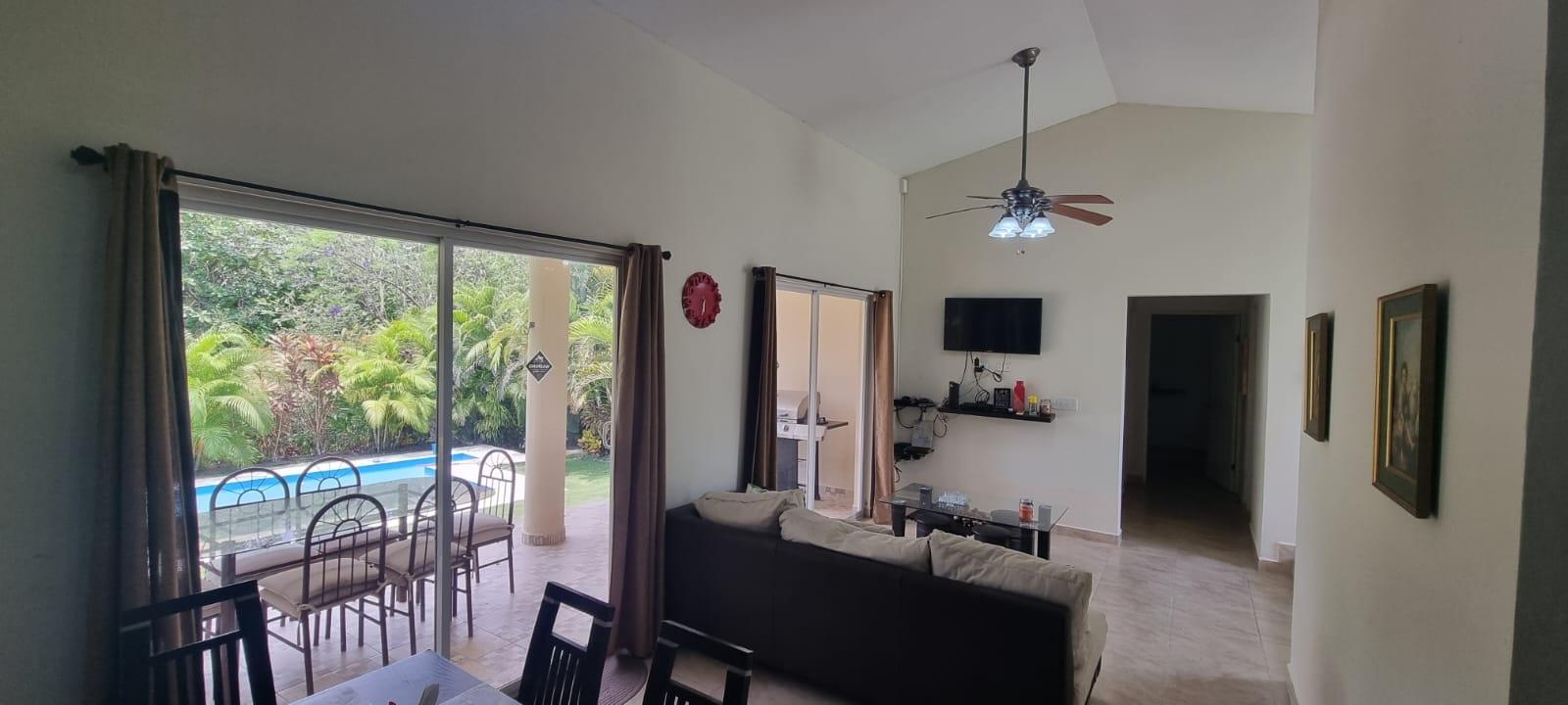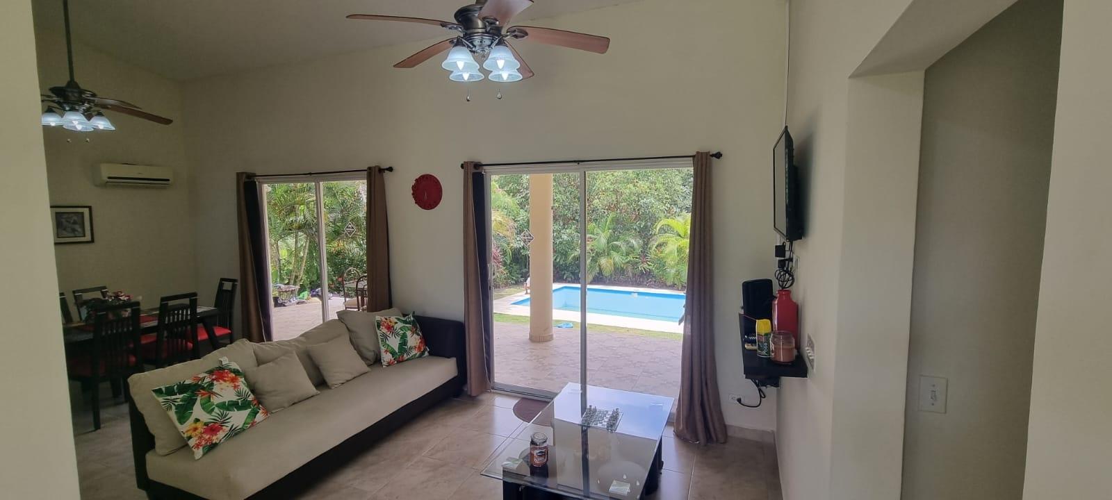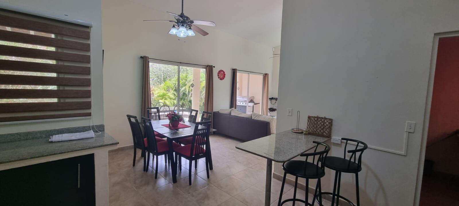 Vida campestre cerca del mar – Valle Village, Las Uvas, Panamá Escapa del ruido y encuentra la tranquilidad en esta encantadora casa campestre de una planta, ubicada en la comunidad privada y cerrada de Valle Village, Las Uvas. A solo 15 minutos de Coronado y 2 horas de la Ciudad de Panamá, esta propiedad amueblada es ideal para escapadas o vivir a tiempo completo. Con 120 m² (1291.67 ft²) de construcción sobre un terreno de 1080 m² (11625 ft²), cuenta con una distribución abierta que integra sala, comedor y cocina, además de una amplia terraza techada ideal para descansar o compartir. Incluye 2 recámaras, 2 baños completos con salida hacia la piscina, y estacionamiento para 2 vehículos. El jardín está rodeado de árboles frutales y ofrece un ambiente natural y muy tranquilo. Valle Village ofrece excelentes amenidades: ✔️ 2 piscinas ✔️ Área de BBQ ✔️ Canchas deportivas ✔️ Comunidad tranquila y segura ✔️ Cuota de mantenimiento: $125/mes ✔️ Se vende amueblada y con electrodomésticos Vive rodeado de naturaleza, a pocos minutos de las playas, tiendas y restaurantes. ¡Contáctanos para agendar tu visita!