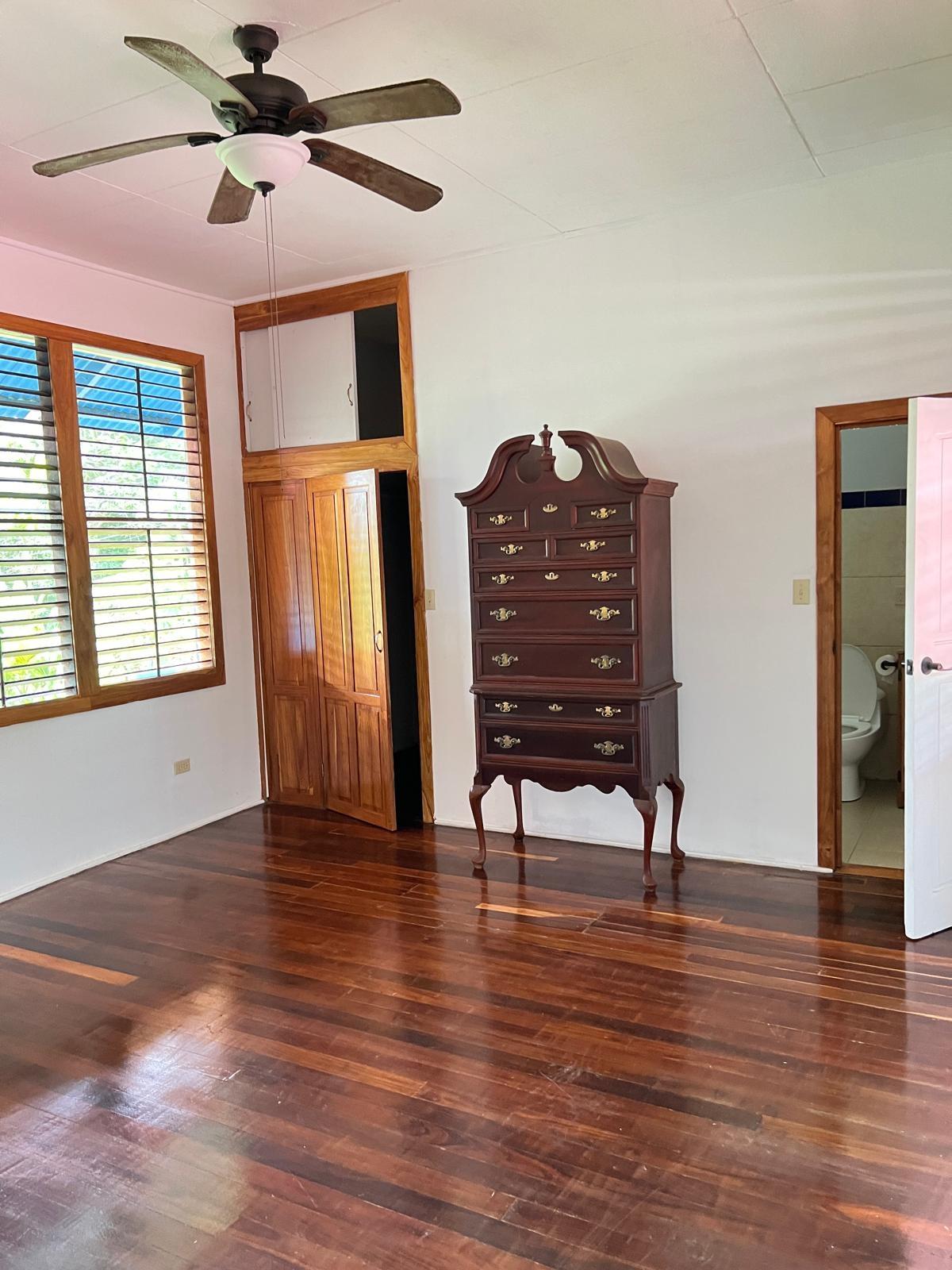 Casa clásica de plantación bellamente restaurada en Puerto Armuelles. Minuciosamente actualizada con estándares modernos, conservando la elegancia y el encanto de la construcción original de postes y vigas de la década de 1940. La planta principal de 198 metros cuadrados cuenta con tres dormitorios y dos baños completos, y en la planta baja hay un apartamento totalmente equipado de un dormitorio y un baño. La amplia cocina cuenta con una isla central, barra de desayuno, pisos de baldosas y amplios gabinetes de almacenamiento de teca nativa. Las áreas de estar superiores de la casa están adornadas con hermosos pisos de madera noble nuevos. La casa está diseñada para aprovechar la brisa del Pacífico; incluso se puede escuchar el susurro de las olas. Las ventanas cubren la mayor parte de las paredes exteriores, con ventiladores de techo en cada habitación. Los tres dormitorios son espaciosos y los techos de 2.7 metros en toda la casa, lo que brinda una sensación aún más abierta. La casa se entrega parcialmente amueblada. La planta baja cuenta con un dormitorio, un baño y un cuarto de invitados con aire acondicionado, un amplio lavadero interior y nuevos armarios de teca. El apartamento se alquila por $500 al mes, por lo que puede utilizarse para generar ingresos o como alojamiento para invitados. Se entrega parcialmente amueblado. Dispone de servicios modernos como teléfono, televisión por satélite y conexión DSL. Un tanque de reserva de agua con sistema de bomba presurizada garantiza un suministro constante de agua. La propiedad cuenta con jardines y un portón eléctrico automático en la entrada.