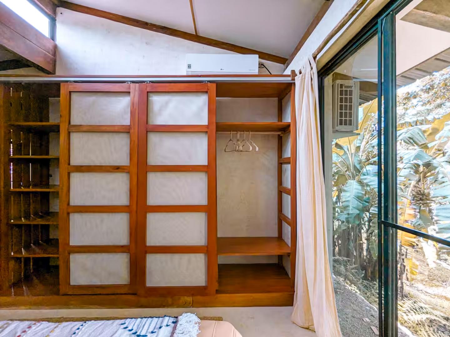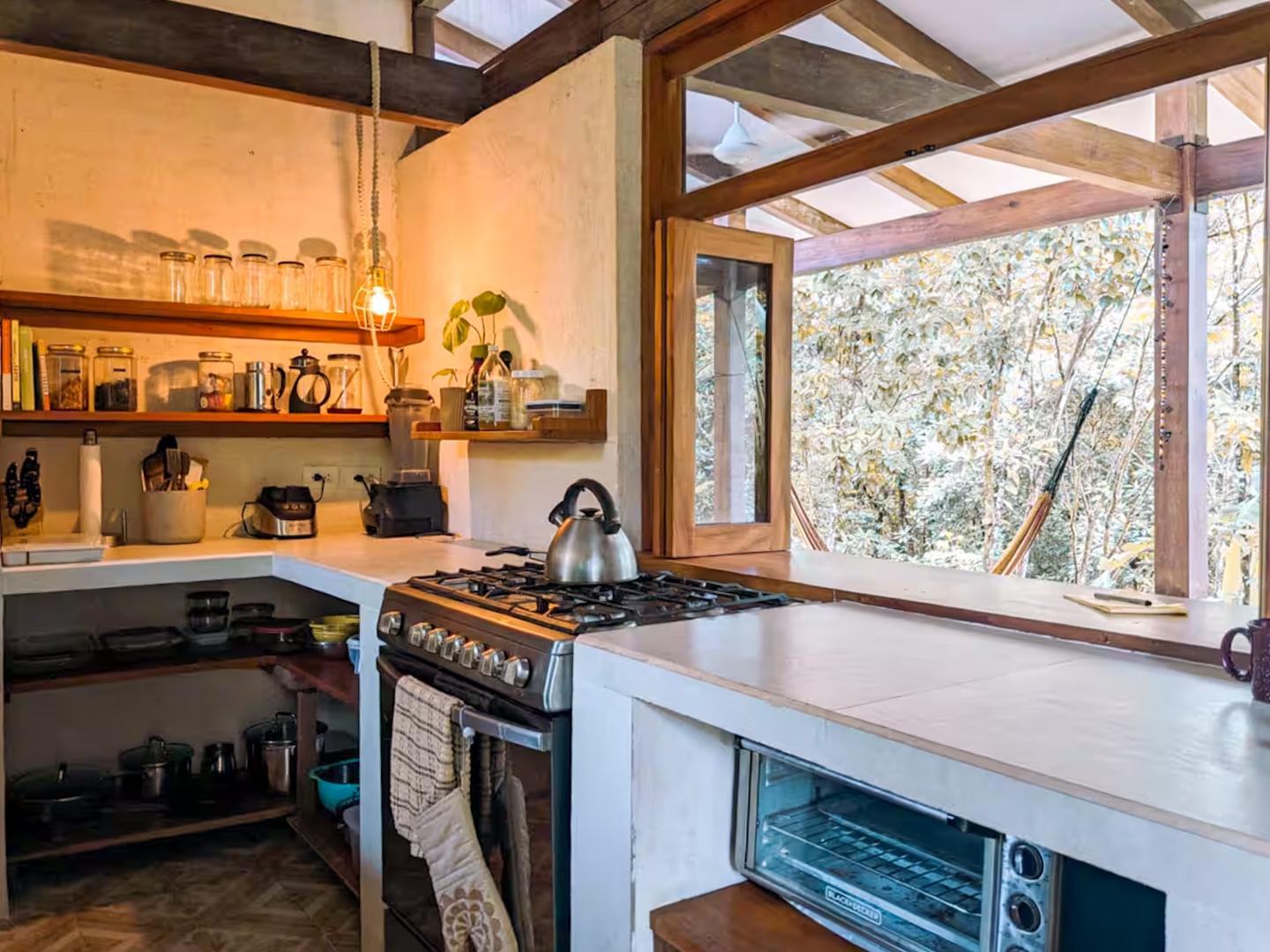 Esta casa tropical diseñada por un arquitecto combina sostenibilidad, comodidad y artesanía en un exuberante entorno forestal cerca de la costa de Torio, Veraguas. Construida en 2021, la casa refleja un enfoque reflexivo del diseño, mezclando materiales naturales con un diseño tropical contemporáneo que invita a la vida interior y exterior. Ubicada en un lote de 1,108.65 m² dentro del desarrollo Torio Hills, la propiedad cuenta con 100 m² de construcción, que incluyen 3 dormitorios, 1.5 baños y áreas de estar abiertas y llenas de luz que se conectan directamente con el paisaje circundante. La casa está completamente amueblada y ya está funcionando con éxito como alquiler vacacional, ofreciendo un potencial de ingresos inmediatos y valor a largo plazo para quienes buscan vivir o invertir en una de las regiones costeras más hermosas de Panamá. Diseño y construcción La estructura se construyó con muros de tierra apisonada, maderas tropicales y acabados de piedra caliza, creando una sensación cálida y orgánica a la vez que mantiene el equilibrio natural de la temperatura dentro de la casa. Un techo sándwich de zinc con vigas a la vista mejora la ventilación y la luz natural, mientras que los tonos terrosos de los materiales se integran armoniosamente con el bosque circundante. Interior y distribución: El interior sigue una distribución sencilla y eficiente que prioriza la comodidad y la fluidez. La cocina semiabierta cuenta con una estufa de gas, estanterías abiertas y acceso directo a la terraza, creando una transición fluida entre cocinar, comer y relajarse. El dormitorio principal cuenta con techos altos, espacio de almacenamiento empotrado y grandes puertas correderas que se abren a las vistas del bosque. Dos dormitorios adicionales ofrecen espacio flexible para invitados o familiares, uno de ellos con una cama matrimonial en la parte inferior y una cama individual en el altillo en la superior.