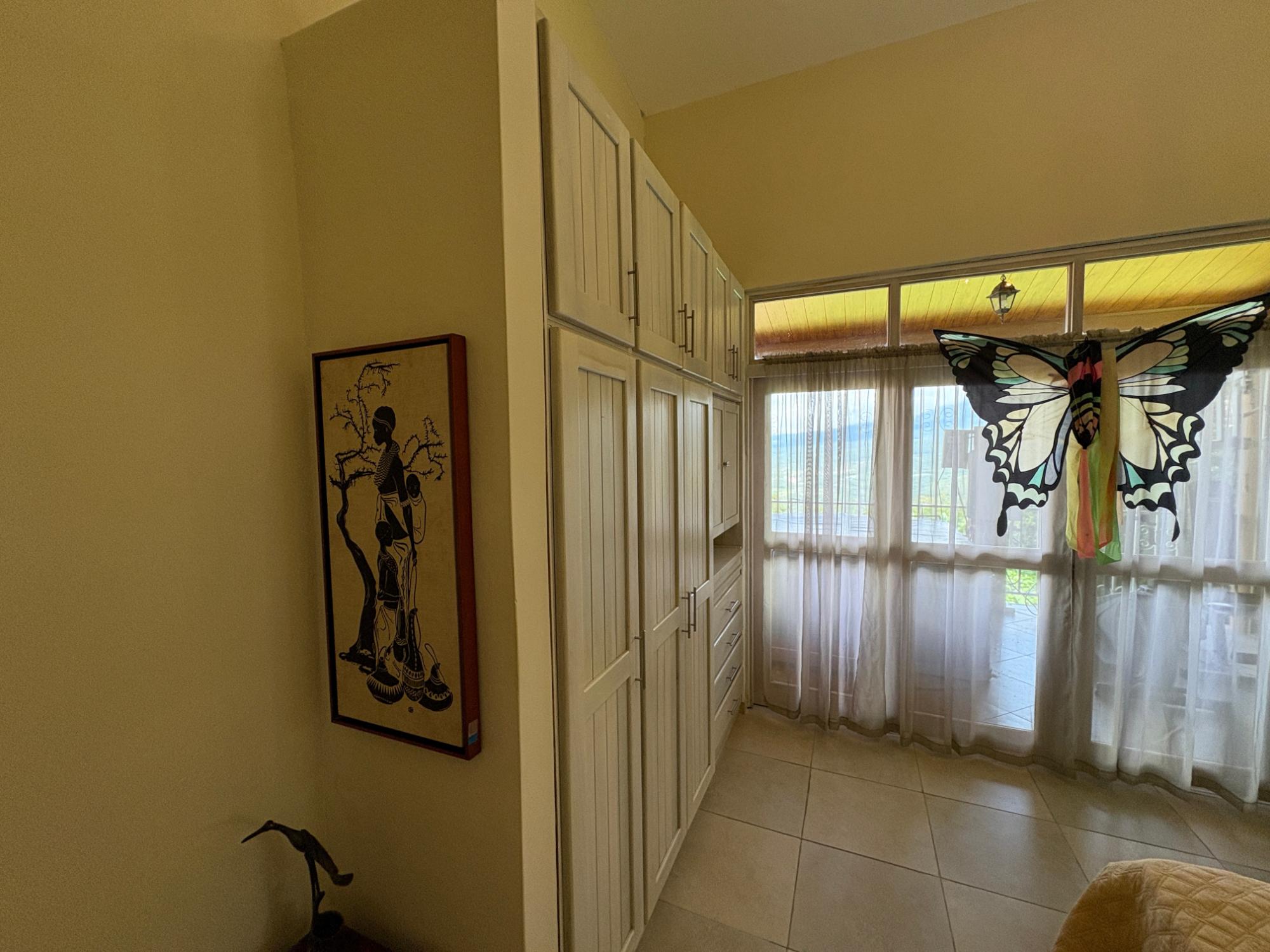 La casa cuenta con aproximadamente 248,90 m² de construcción bajo techo. Al entrar, la sala de estar principal se abre a una espaciosa sala de estar con altos techos abovedados y grandes puertas de cristal que enmarcan la vista y conducen a la terraza cubierta. La cocina incluye gabinetes de madera maciza, una isla central/barra de desayuno, además del comedor con una mesa para ocho personas. También hay una barra empotrada, chimenea y acceso al patio exterior cubierto, donde un jacuzzi complementa dos zonas de estar. Un patio descubierto adyacente ofrece espacio para tomar el sol o cultivar un huerto en macetas. El dormitorio principal es amplio e incluye un vestidor, baño en suite con bañera y lavabo doble. La habitación principal tiene acceso directo a la terraza cubierta a través de puertas de cristal. Tres dormitorios adicionales ofrecen amplio espacio para la familia o invitados, ambos con armarios de madera y acceso a baños completos. La propiedad también incluye una zona de lavandería y trastero, un cobertizo independiente, un garaje y cinco plazas de aparcamiento para visitas.