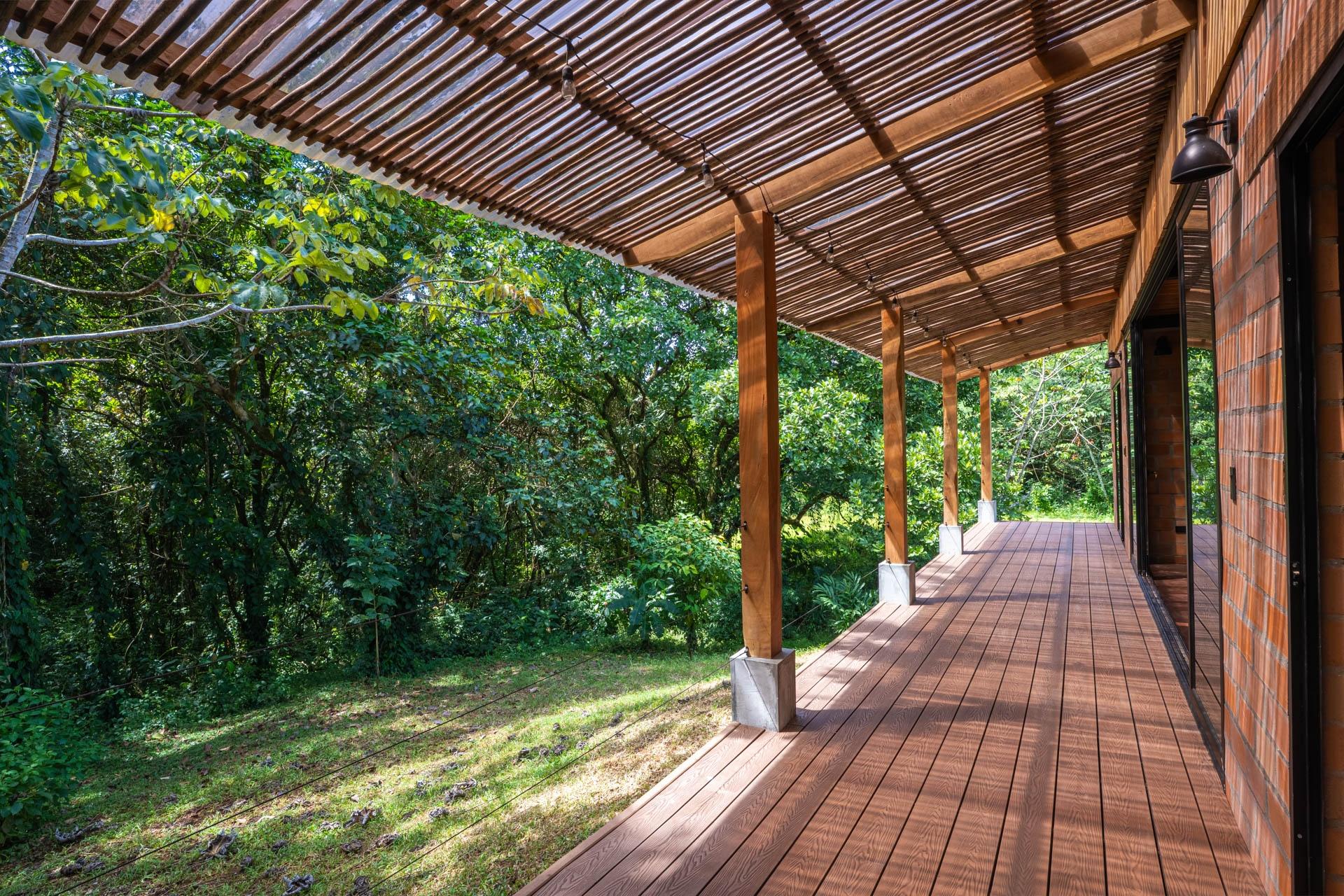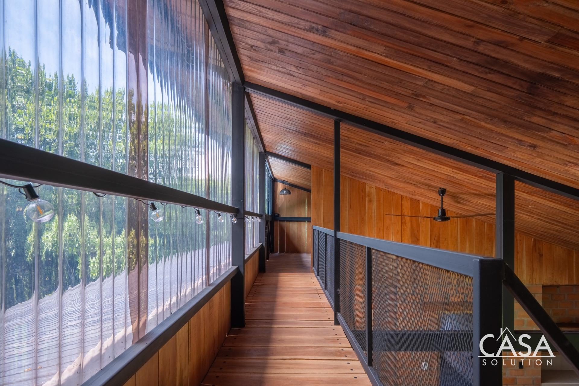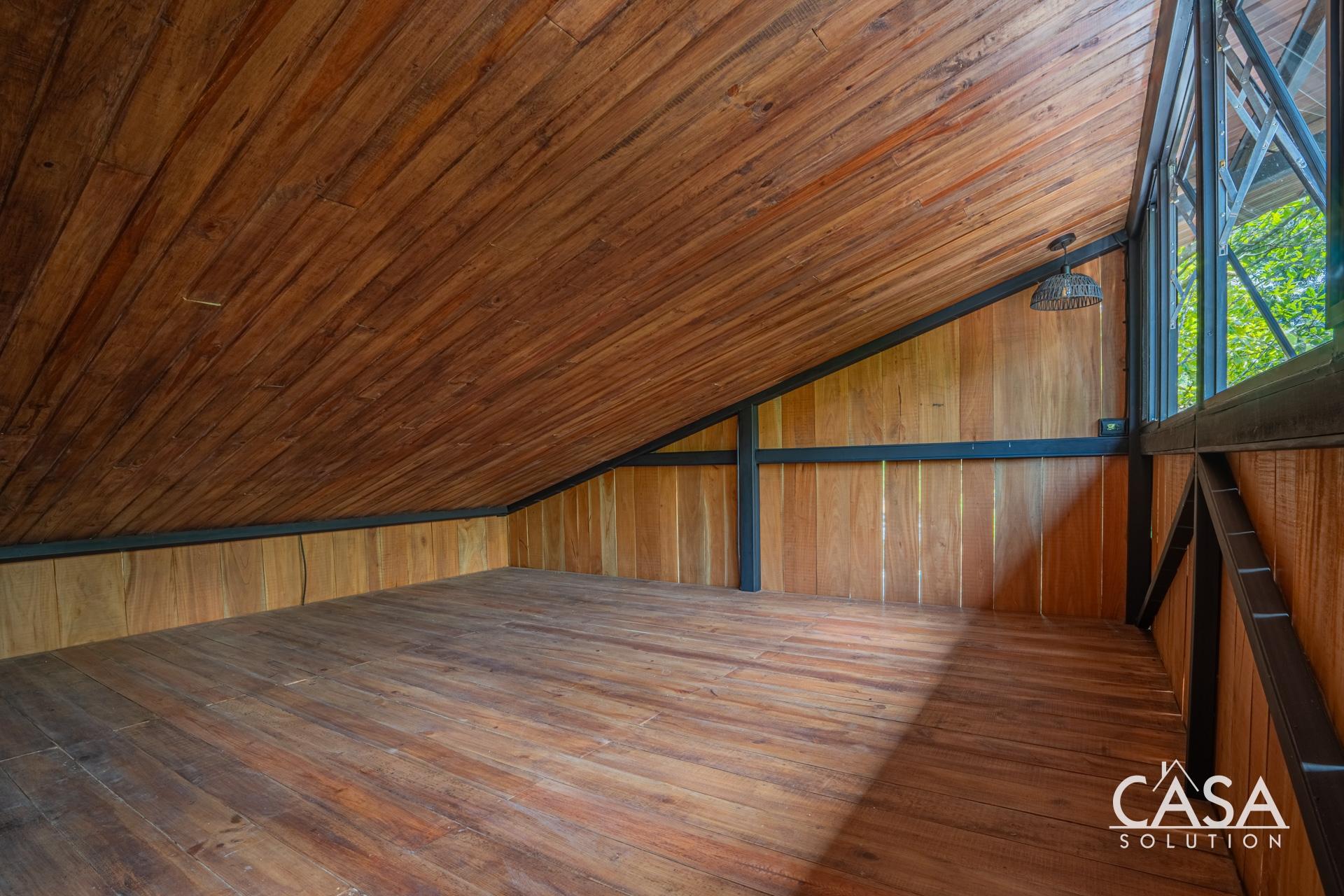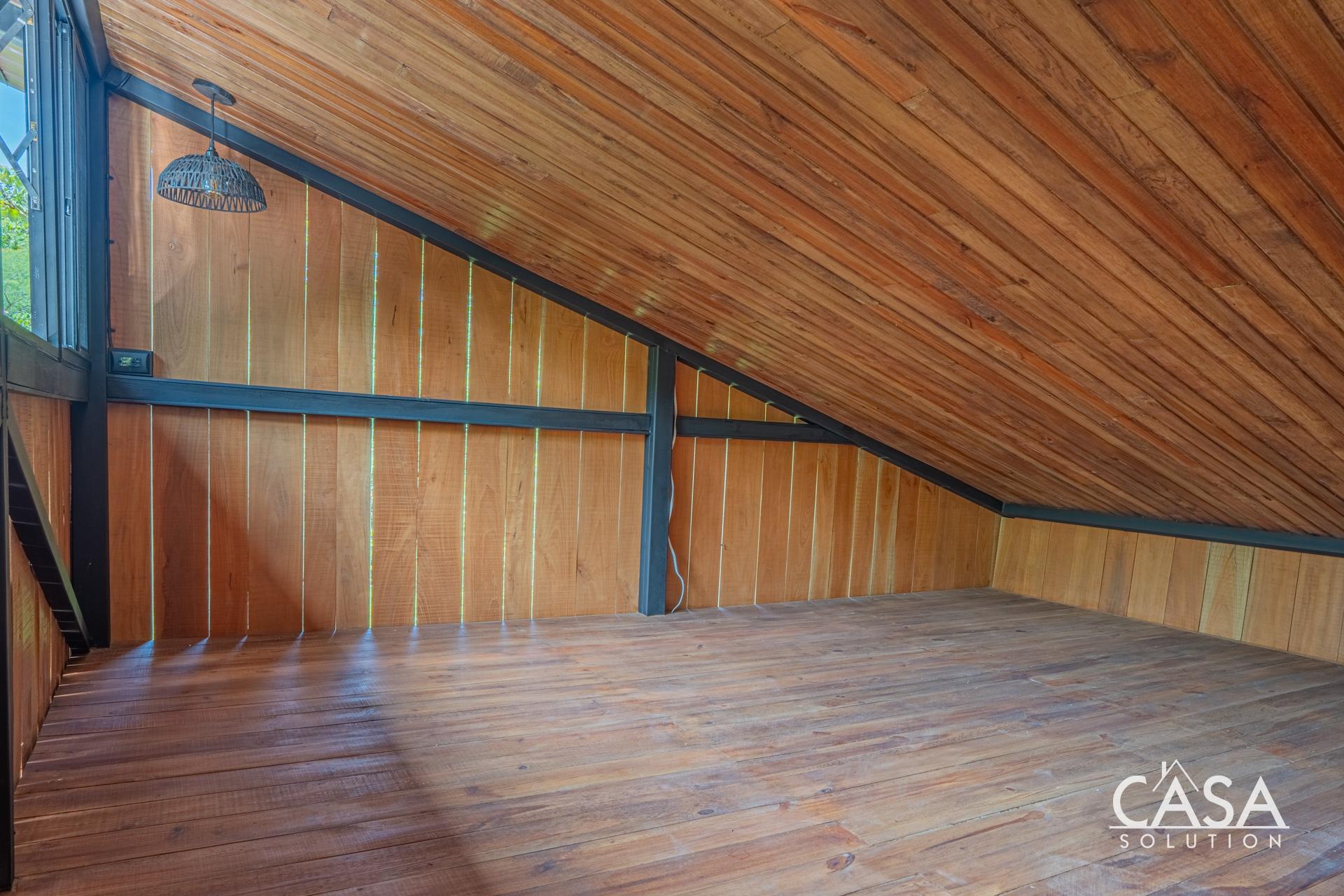 Esta casa a estrenar en Torio Hills combina la arquitectura tropical moderna con un profundo respeto por el entorno natural. Construida con materiales de calidad y un enfoque minimalista, ofrece un estilo de vida tranquilo y confortable a solo minutos de los servicios del pueblo. Ubicada a un minuto en coche del centro de Torio, esta propiedad brinda comodidad y privacidad. El río Torio se encuentra a tan solo cinco minutos a pie, en un agradable paseo, mientras que un arroyo de agua dulce corre justo debajo de la casa, añadiendo un ambiente sereno al entorno. La casa se asienta sobre un terreno con suave pendiente rodeado de exuberante vegetación, creando una atmósfera selvática envolvente a la vez que mantiene un fácil acceso a la carretera. La estructura combina madera, acero y ladrillos de arcilla natural, ofreciendo una estética moderna pero a la vez acogedora. En el interior, la distribución abierta destaca los techos altos, las grandes puertas corredizas de vidrio y los cálidos tonos de madera. La luz natural inunda el interior, brindando a cada espacio una sensación acogedora y luminosa. La cocina cuenta con encimeras de concreto y estanterías de madera hechas a medida, integrándose perfectamente con la sala de estar y la amplia terraza cubierta: una extensión ideal del hogar para disfrutar del aire libre. Con cuatro dormitorios y dos baños, la distribución resulta práctica y flexible. Cada dormitorio cuenta con su propio altillo, que puede utilizarse fácilmente como dormitorio adicional, despacho, estudio de arte o sala de juegos. Estos espacios elevados aportan carácter y funcionalidad, convirtiendo esta casa en la opción ideal para diversos estilos de vida, desde una residencia familiar hasta una propiedad para alquiler vacacional.