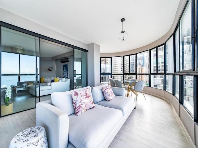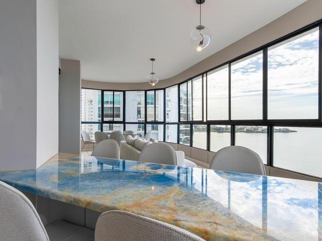 Este condominio con vista al mar ofrece algunas de las mejores vistas de la Ciudad de Panamá. La espaciosa residencia comprende todo el piso 11 del edificio Regent en Paitilla. La casa fue completamente remodelada en 2021. Tres de las habitaciones y lo que llamamos el “sky bar” tienen vista al mar verdaderamente icónica de la costa de la Ciudad de Panamá. Es difícil exagerar lo impresionantes que son las vistas de 180 grados del océano. Extendiéndose hacia el horizonte se encuentran Ocean Reef Island, la Calzada de Amador, la entrada al Canal de Panamá, el Casco Viejo, la Cinta Costera y la Avenida Balboa. Condominio con vista al mar en la ciudad de Panamá The Regent en Paitilla representa el lujo de la vieja escuela en Panamá. Cada piso del edificio de 25 pisos es una residencia individual a la que se accede mediante un ascensor privado. The Regent se encuentra en una calle sin salida privada sin tráfico. El edificio cuenta con seguridad 24/7. Dos ascensores principales y un ascensor de servicio se abren al vestíbulo de ascensores privado de cada residencia. La basura se recoge dos veces al día y hay un servicio de conserjería para ayudarle con sus maletas. El edificio cuenta con suministro de energía y agua de respaldo. Una familia numerosa puede vivir fácilmente en esta cómoda casa con mucho espacio para espacio personal. Tres de las cinco habitaciones cuentan con baños privados y vestidores grandes.