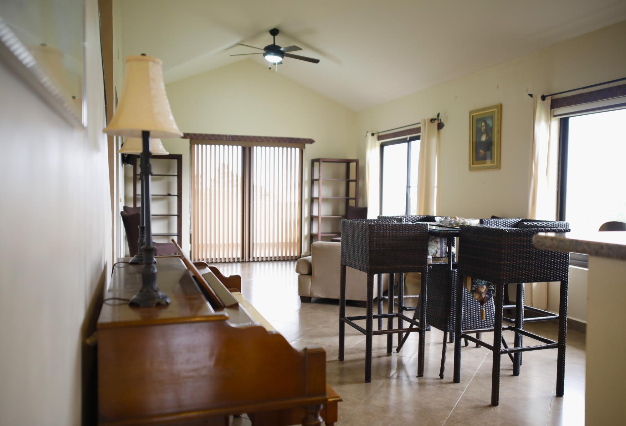 Ubicado en el segundo piso del PH Residencial Blue Sky, este condominio de 203,56 m² es un espacio cómodo y parcialmente amueblado en Boquete Country Club. El condominio incluye electrodomésticos y algunos muebles, lo que lo convierte en una opción conveniente para quienes buscan una casa lista para mudarse. Al ingresar, hay una sala de estar y comedor combinados conectados a una cocina con barra de desayuno, lo que proporciona una separación entre los espacios. Desde este condominio, puede ver las montañas cercanas, el Volcán Barú e incluso vistas lejanas del océano en días despejados. El nivel superior incluye dos habitaciones: la habitación principal tiene un vestidor, mientras que la habitación secundaria cuenta con un armario empotrado. Además, hay dos baños y un estudio en el loft, lo que brinda mayor flexibilidad. Con una exención de impuestos a la propiedad válida hasta el 12 de febrero de 2029.