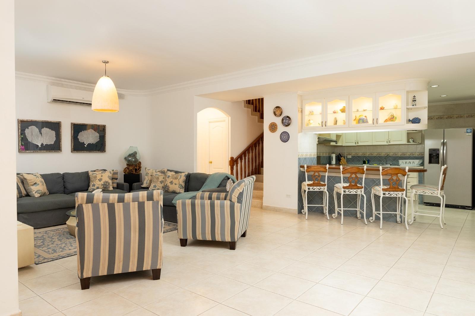 Este dúplex se encuentra en PH Marina del Rey, parte de Playa Blanca Resort en Río Hato, Antón. La propiedad cuenta con 430.94 m² de terreno y aproximadamente 640 m² de construcción en terreno plano. Su ubicación proporciona vistas directas al mar y acceso a la playa a través de una puerta privada, lo que la convierte en una opción atractiva para quienes buscan bienes raíces en Playa Blanca. Características interiores La casa está construida con una construcción de concreto y un techo de teja, diseñado para ser duradero en un entorno costero. Tiene seis recámaras, cada una con su propio baño, además de un cuarto de servicio separado con baño. La recámara principal incluye un vestidor, balcón privado y un área de ejercicios. Todos los armarios están revestidos con madera de cedro americano para evitar la humedad, y las manijas y cerraduras de las ventanas de bronce son anticorrosivas. La cocina se conecta con la sala principal en un diseño abierto, con una barra para cenas informales. La casa está completamente amueblada e incluye muebles, lámparas, obras de arte, camas, electrodomésticos, lavadora y secadora, barbacoa, muebles de terraza, hamacas y piezas decorativas. Para el control de la temperatura, la casa cuenta con aire acondicionado split en cada dormitorio, sala de estar y área de desayuno, así como aire acondicionado central en los dos dormitorios junto a la piscina. Exteriores: La casa cuenta con dos terrazas cubiertas, una piscina privada con terraza, ducha exterior, jardín paisajístico y una zona de barbacoa. También hay un garaje para tres autos y una entrada cubierta con cochera. La venta incluye una Kawasaki 4x4 (2019) en excelentes condiciones, lo que facilita el desplazamiento por la comunidad o la playa. La propiedad cuenta con su propio sistema de agua privado.