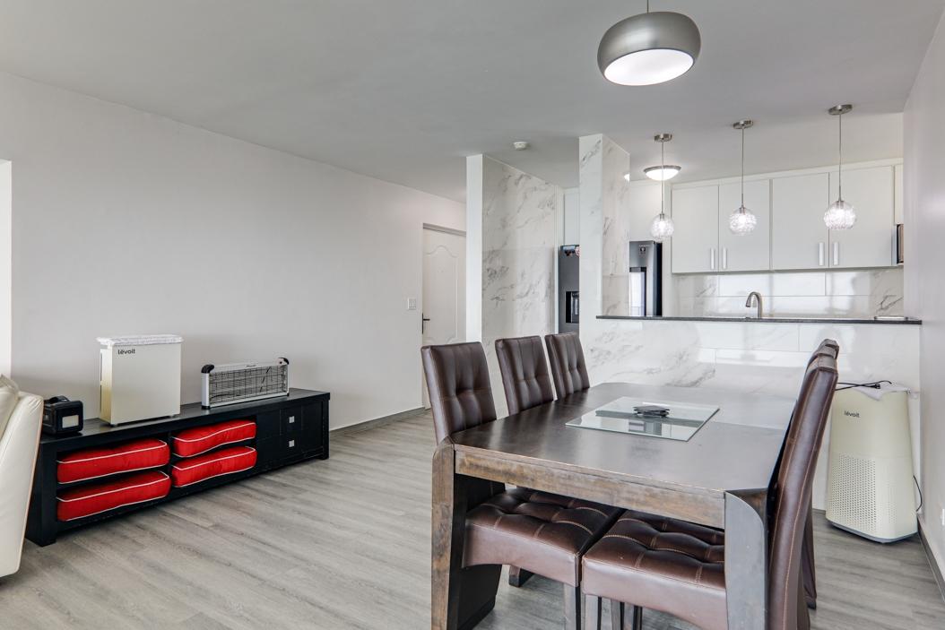 ¿Buscas un lugar con espacio, vista al mar y una ubicación céntrica? Esta residencia de 3 habitaciones en Terrawind ofrece las tres cosas. Con 139 m² de espacio interior y un diseño inteligente, es fácil instalarse y disfrutar. Justo al entrar por la puerta principal, un pequeño vestíbulo separa el área principal de estar y funciona bien para guardar zapatos o como espacio de almacenamiento. La cocina abierta cuenta con una barra de desayuno y da acceso al cuarto de servicio, que incluye su propio baño y área de lavandería. Las puertas corredizas de la sala y el comedor se abren a un amplio balcón con vista al Pacífico, perfecto para disfrutar del café por la mañana o de una tarde con amigos. Esta unidad incluye tres habitaciones: dos con vestidores y baños privados, y una con clóset empotrado que comparte baño. En total, ofrece 3.5 baños, además de una sala familiar o espacio de oficina ideal para trabajar desde casa o para uso familiar. Viene completamente amueblada y equipada, con una cocina moderna que incluye todos los electrodomésticos, incluso lavaplatos, además de aire acondicionado y ventiladores de techo en toda la residencia. Tendrás dos espacios de estacionamiento en la planta baja. Es una excelente opción para familias o personas mayores que buscan un entorno tranquilo, con una buena vista y una distribución funcional. Terrawind – San Francisco Terrawind está compuesto por dos torres de 40 pisos ubicadas en el barrio de San Francisco. El edificio ofrece seguridad las 24 horas, un lobby y cuotas de mantenimiento mensuales bajas. La fachada será repintada y el lobby renovado el próximo año. Los trabajos recientes incluyen pisos pulidos en el lobby y las áreas sociales. Las amenidades incluyen: Piscinas para adultos y niños Gimnasio Área de juegos para niños Salón de eventos y fiestas San Francisco San Francisco es uno de los barrios más convenientes de la Ciudad de Panamá, cerca de vías principales como Vía Israel y el Corredor Sur, que ofrecen acceso rápido al Aeropuerto Internacional de Tocumen. Muy cerca se encuentran el centro comercial Multiplaza, el Hospital Pacífica Salud, el Parque Omar, la Cinta Costera, el Casco Viejo y la Calzada de Amador. Las necesidades diarias como tiendas, supermercados, cafés y restaurantes están todas a poca distancia a pie. ¿Interesado? ¡Completa el formulario a la derecha para obtener más información!