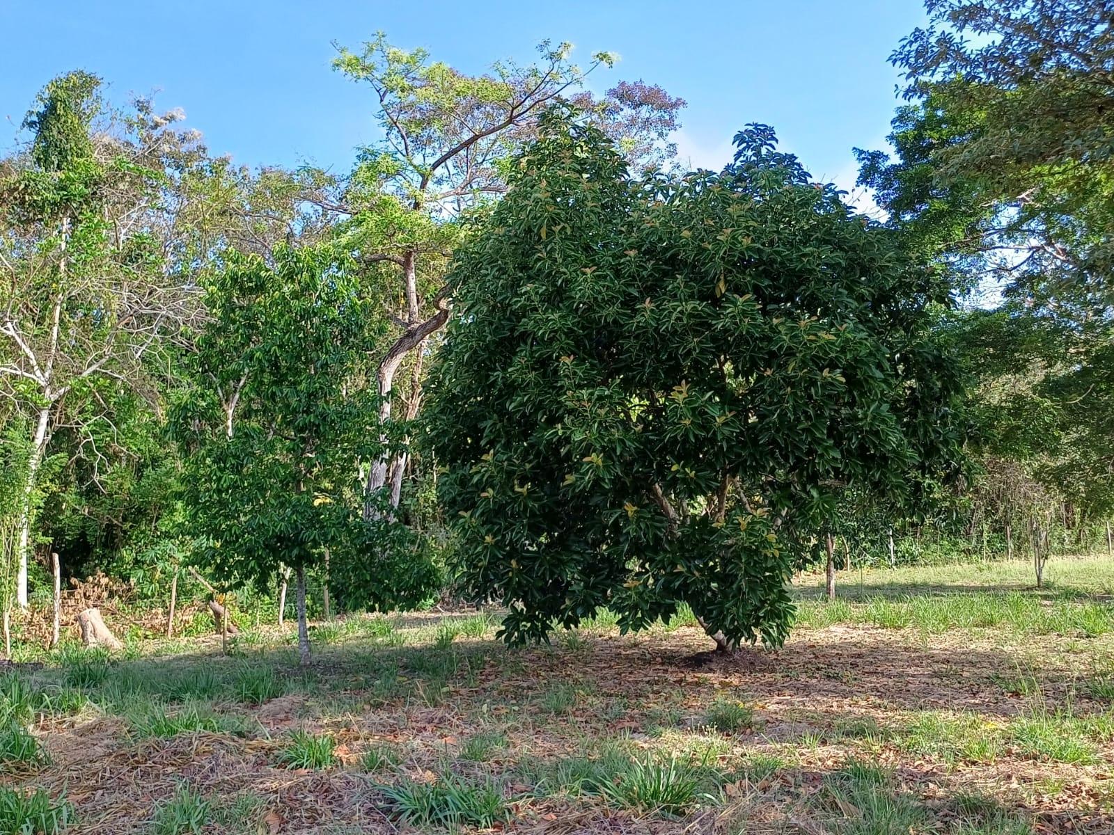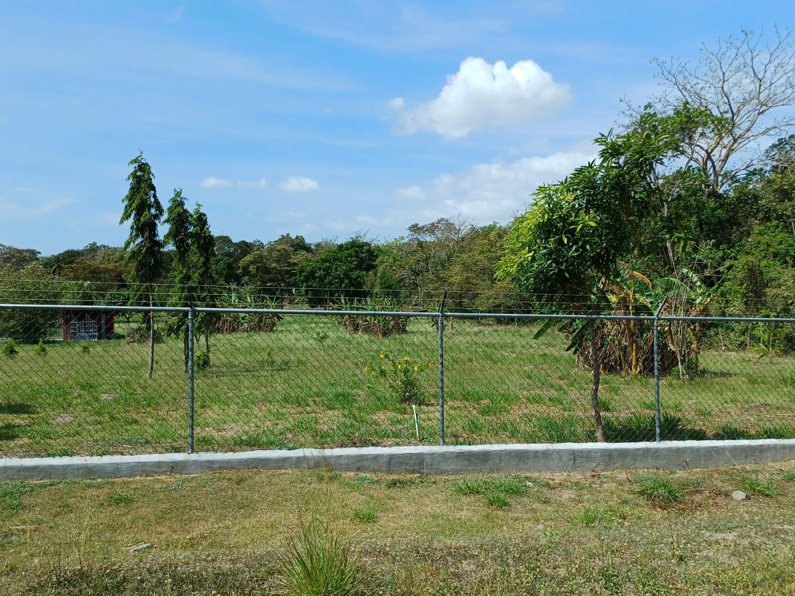 Terreno de 10963.24 m2 en zona privada y tranquila, casi plano, con árboles y plantas, con cerca de ciclón y un pequeño depósito.