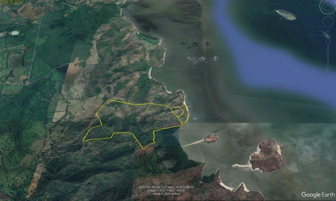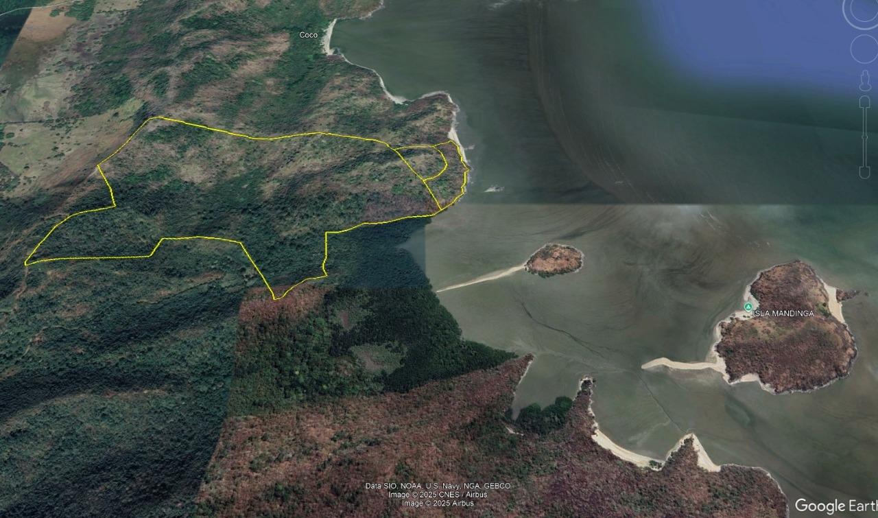 Hermosa propiedad situada en la costa del Pacífico, en una preciosa bahía frente a la isla Mandinga. La propiedad tiene título de propiedad completo hasta la orilla del mar. La topografía incluye un valle entre dos colinas, con hermosas vistas del océano Pacífico, con un kilómetro de frente marítimo que incluye pequeñas playas, acantilados bajos y zonas de manglares. El acceso es por barco o por carretera, sin embargo, la carretera actual es bastante accidentada y necesita mejoras. La propiedad se puede comprar junto con dos propiedades adyacentes, una con playa y otra que ofrece un acceso más fácil por carretera
