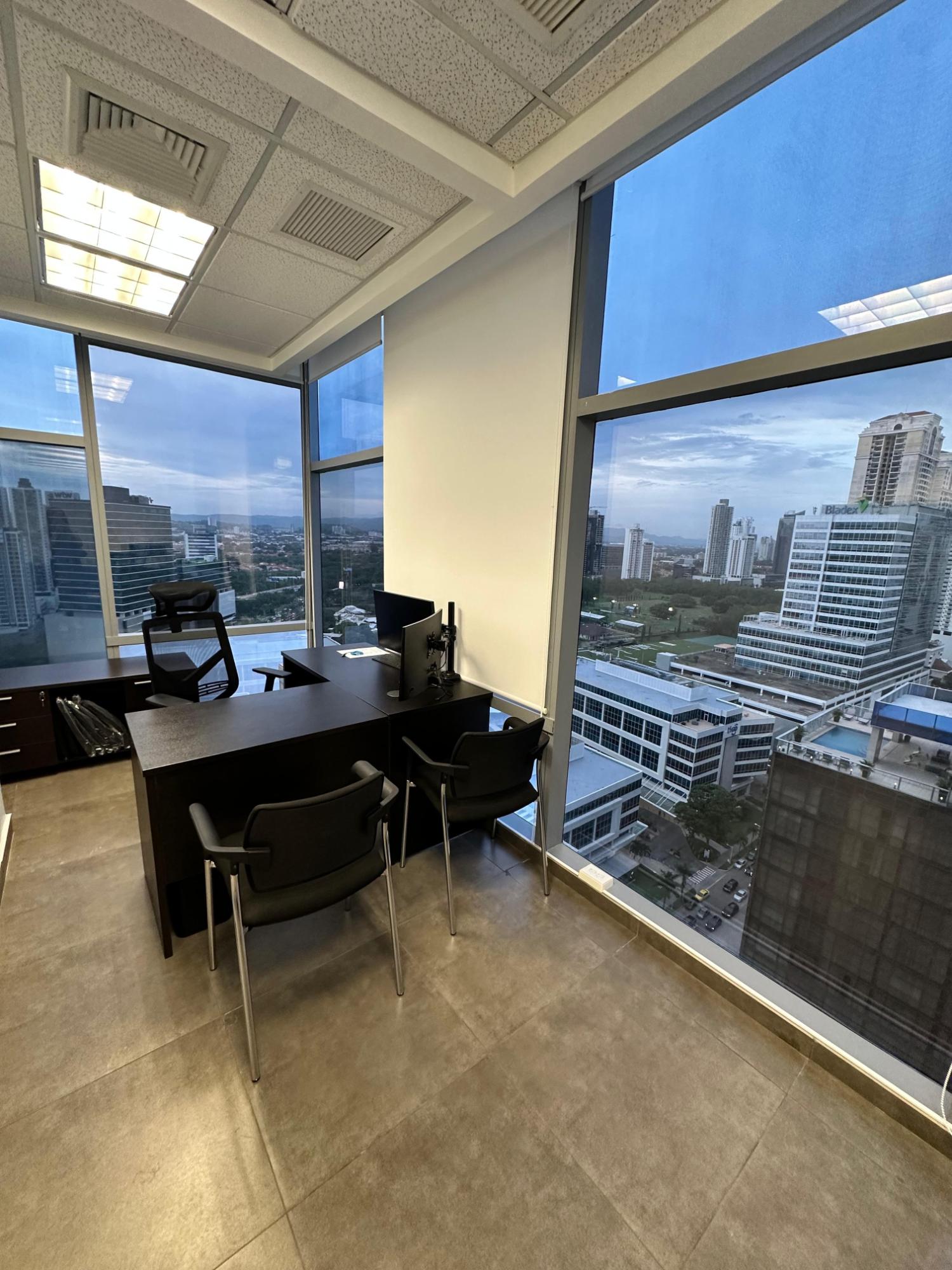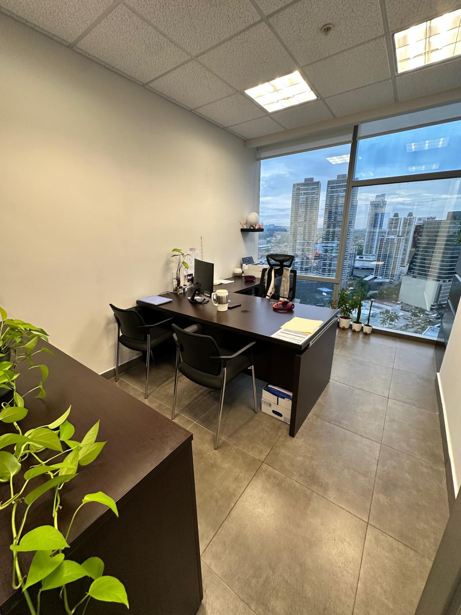 Ubicada en uno de los sectores corporativos más exclusivos de la Ciudad de Panamá, esta elegante oficina de 169 m² ofrece una combinación ideal de ubicación estratégica, amplitud y una impresionante vista al mar. Características destacadas: Superficie: 169 m² Vista panorámica al océano Pacífico Espacios abiertos listos para adecuar según tus necesidades Acabados modernos y excelente iluminación natural 6 estacionamientos asignados Seguridad 24/7 y acceso controlado Edificio con lobby corporativo, elevadores de alta velocidad y planta eléctrica