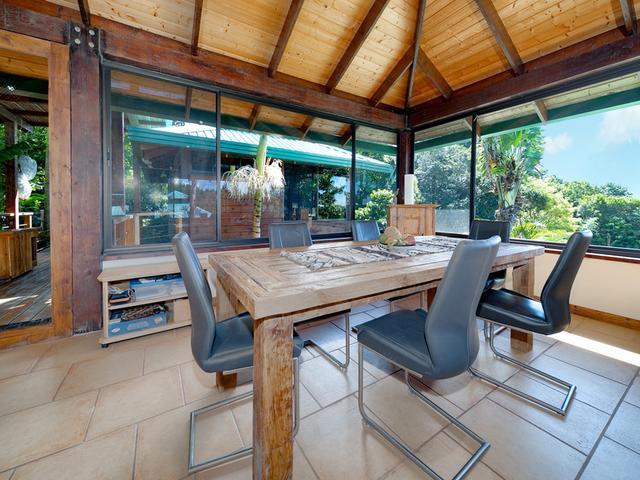 Esta casa inspirada en Bali le da la bienvenida con sus tremendas vistas panorámicas hasta donde alcanza la vista. Una casa familiar moderna, situada en una ubicación muy tranquila, está bien presentada y complementada por el espacioso diseño de planta abierta con características que impresionarán. Ingrese a la cabaña luminosa, bien presentada y aireada, con techos altos y pisos de madera. El diseño generoso y el espacio habitable que fluye libremente complementan la terraza para entretenimiento al aire libre y los jardines paisajísticos. Esta propiedad consta de cuatro módulos, y el módulo n. ° 1 ofrece un plano de planta fantástico con sala de estar, comedor, cocina y tocador. El módulo n. ° 2 es el dormitorio principal con baño en suite y vestidor. El módulo n. ° 3 es un segundo dormitorio que actualmente se usa como oficina. Viene con baño en suite y vestidor. El módulo n. ° 4 es una cabaña independiente, con sala de estar, dormitorio con baño en suite, una hermosa cocina y pisos de madera autóctonos. OPORTUNIDADES DE INVERSIÓN Esta propiedad fue diseñada para albergar cápsulas adicionales no solo para familias más numerosas, sino también para alquileres a corto y largo plazo, lo que crea una fuente de ingresos. Además, este ambiente de inspiración balinesa sería el refugio corporativo o grupal perfecto que crearía una experiencia positiva y relajada. Los hermosos terrenos tropicales pueden albergar fácilmente actividades deportivas e incluso una cancha de pickle ball o una piscina. ¡No se pierda todo lo que esta increíble propiedad tiene para ofrecer. Programe una visita hoy!
