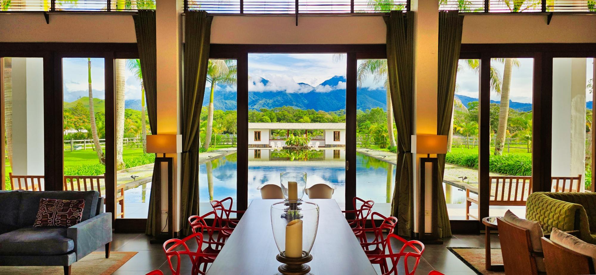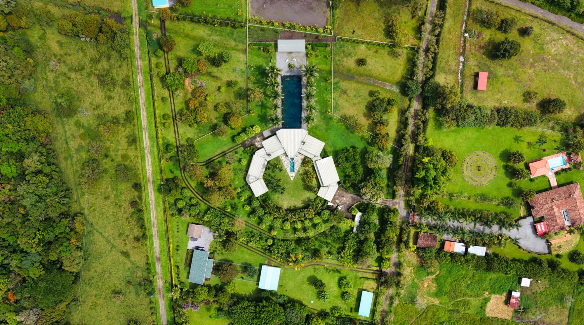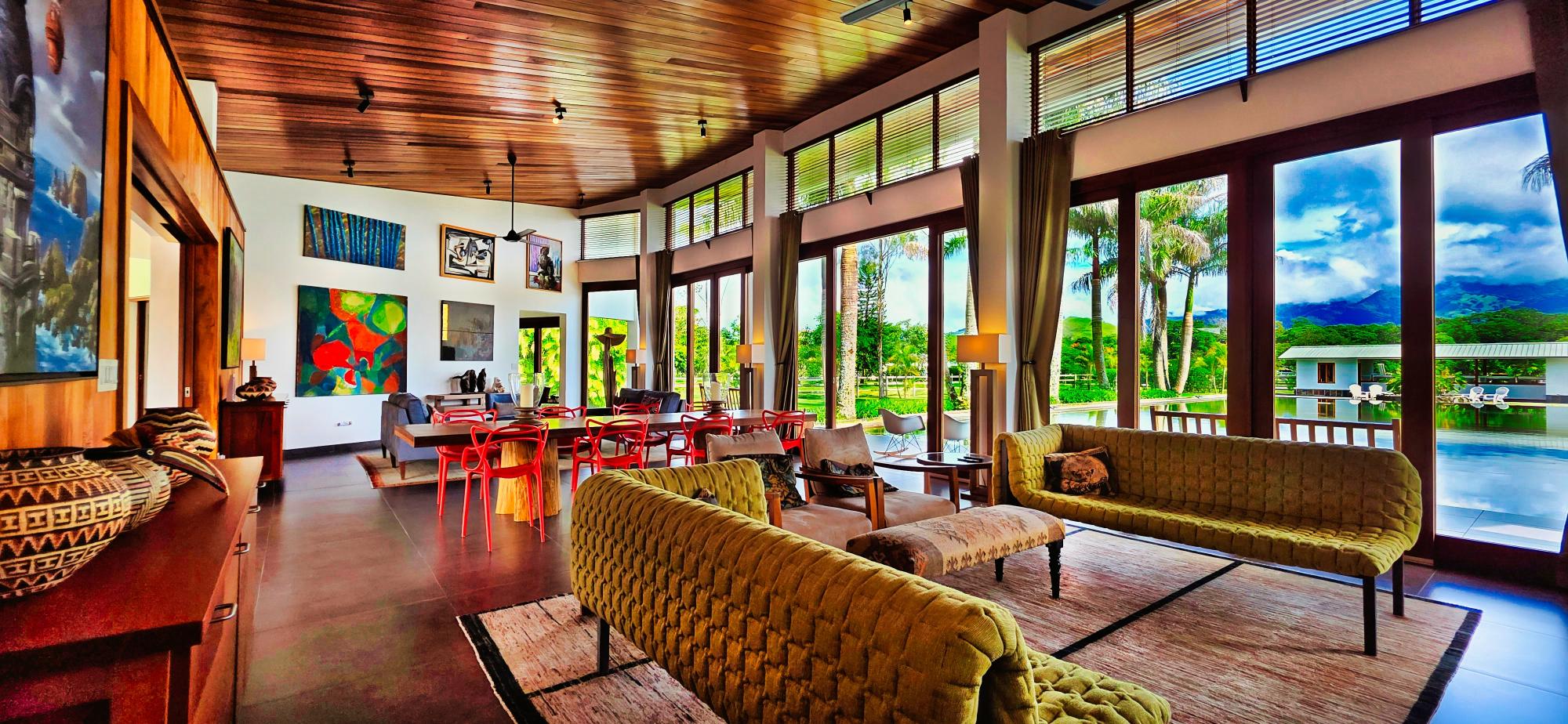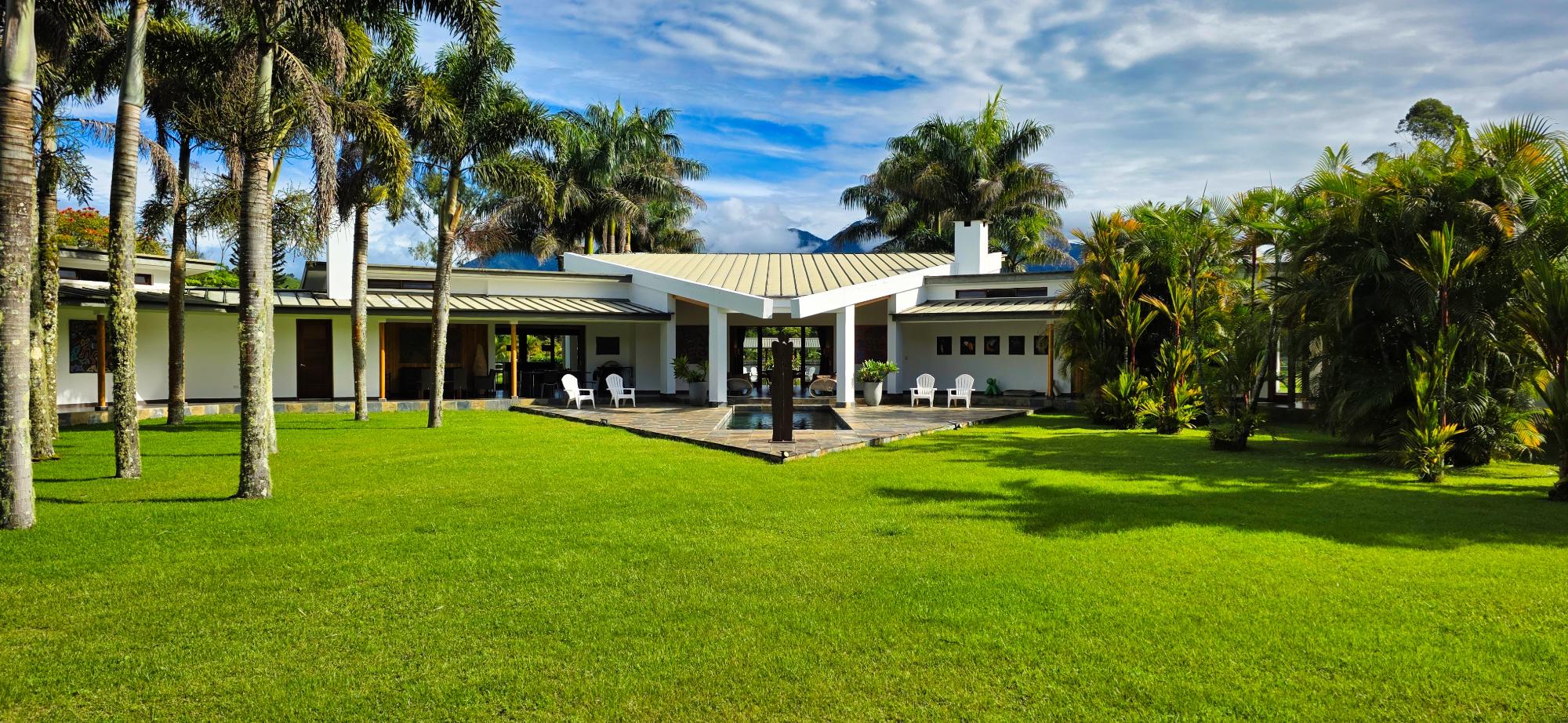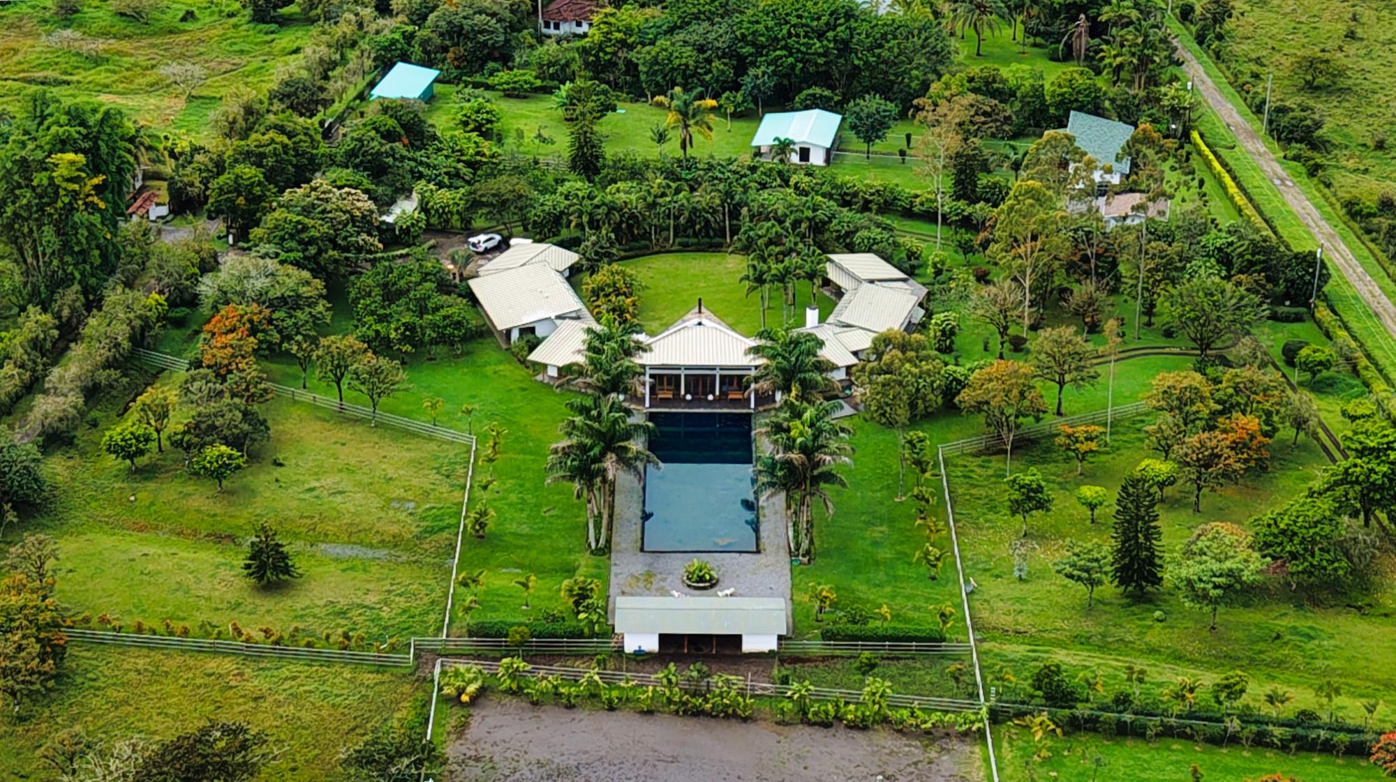 Casa de lujo en venta en volcán, Tierras Altas, Chiriquí – Una joya arquitectónica enclavada en el prestigioso sector de Las Lagunas, rodeada de naturaleza, montañas y el aire fresco de las tierras altas panameñas. Esta majestuosa residencia se erige sobre un terreno privado de 1.75 hectáreas (4.32 acres), a tan solo 2.8 km (9 minutos en auto) de la vía principal de Volcán, y a pocos minutos de las emblemáticas lagunas y reconocidas fincas cafetaleras de la región. La casa principal cuenta con más de 900 m² (9,687 ft2) de construcción entre interiores y elegantes terrazas abiertas, pensadas para disfrutar de vistas panorámicas de 360° hacia las montañas y un íntimo jardín interior con piscina. La casa se ofrece como No amueblada Características destacadas: Amplia sala y comedor con ventanales de piso a techo y estanque de agua reflejante. Cocina de gran tamaño totalmente equipada con área de despensa. Tres dormitorios principales, cada uno con baño en suite. Dos apartamentos independientes con sala, cocina y habitación con baño privado, ideales para huéspedes o para generar ingresos de alquiler. Cuenta con un amplio estudio, actualmente utilizado como taller de pintura, que fácilmente puede transformarse en una oficina privada o espacio creativo según las necesidades del propietario. La propiedad dispone de un estacionamiento techado para dos vehículos en uno de sus laterales, además de un estacionamiento privado con acceso directo a la residencia. Jardines extensos con árboles frutales maduros, flores ornamentales y áreas verdes que integran la vida de lujo con el encanto natural de las tierras altas. La propiedad cuenta con su propio pozo de agua y amplios tanques de reserva, además de conexión al acueducto del IDAAN, garantizando un suministro constante y confiable. Áreas de la casa: Cerrada 459 m2 (4,940 ft2), abierta 422.84 m2 (4,940 ft2) área de piscina 30 m2 (323 ft2) La finca fue originalmente concebida con instalaciones para albergar caballos, ofreciendo amplios espacios abiertos y un establo frente a la residencia principal. Este detalle la convierte en una opción perfecta para amantes de la equitación y de la vida ecuestre de lujo. No obstante, dichas instalaciones pueden transformarse con facilidad en un gimnasio privado, un spa de alto nivel o un elegante pabellón de recreación, adaptándose a la visión y estilo de vida de su nuevo propietario. Beneficios de ubicación: Zona residencial exclusiva y segura (Buenavista – Las Lagunas).