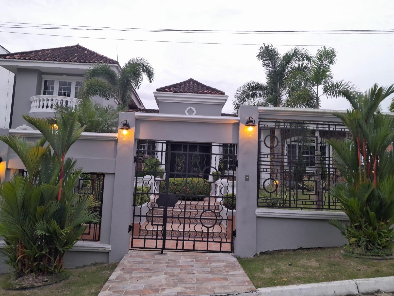 Vive la distinción y el confort dentro del exclusivo Club de Golf de Panamá. Esta imponente residencia de tres niveles ha sido diseñada para quienes valoran la elegancia, el espacio y la privacidad, en un entorno rodeado de naturaleza, seguridad y prestigio. Ubicada en una de las comunidades residenciales más codiciadas del país, esta propiedad es mucho más que una casa: es un estilo de vida reservado para pocos. Con un total de 7 recámaras con baño completo, esta propiedad ofrece amplitud para toda la familia e invitados. El nivel principal cuenta con jardines frontales de lujo, fuente con cascada iluminada, terraza integrada a la sala principal, comedor para 12 personas, cocina con isla, cava de vinos y desayunador, además de una recámara principal con jacuzzi, balcón y walk-in closet. El área social es ideal para el entretenimiento: terraza techada con bar con capacidad para 80 personas, área de juegos con billar, jardines exteriores con mesas, y un cerramiento perimetral completo para privacidad total. La residencia también incluye oficina privada con baño, recámara de servicio con cocina, lavandería interna, y estacionamiento para 5 vehículos. En el nivel superior encontrarás una recámara adicional con baño privado, cuarto de máquinas para aire central, múltiples depósitos y balcón techado. Toda la propiedad cuenta con aire acondicionado split y central, iluminación de lujo, cielo raso de gypsum, y techo de teja en arcilla roja. Vivir aquí es pertenecer a un entorno exclusivo, donde el golf, la tranquilidad y la vida familiar se encuentran. Si buscas un hogar que refleje tu éxito y buen gusto, esta es tu oportunidad.