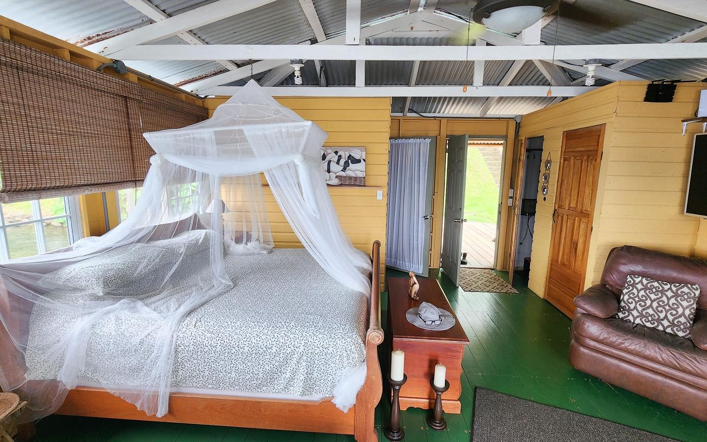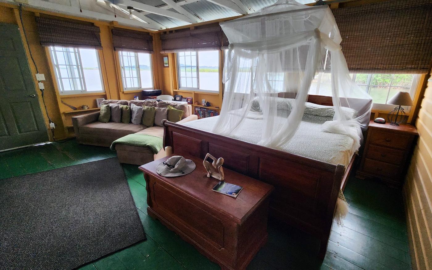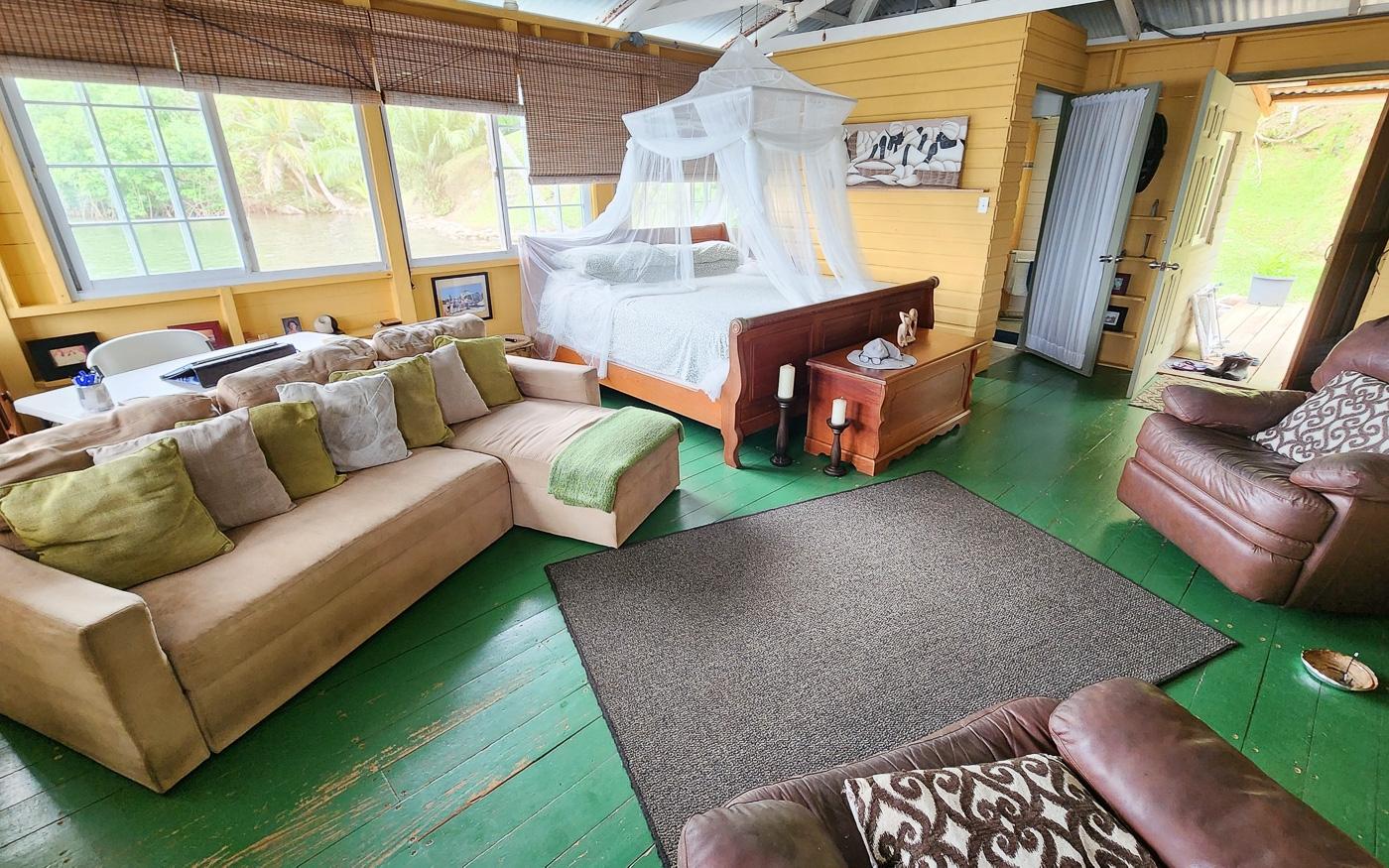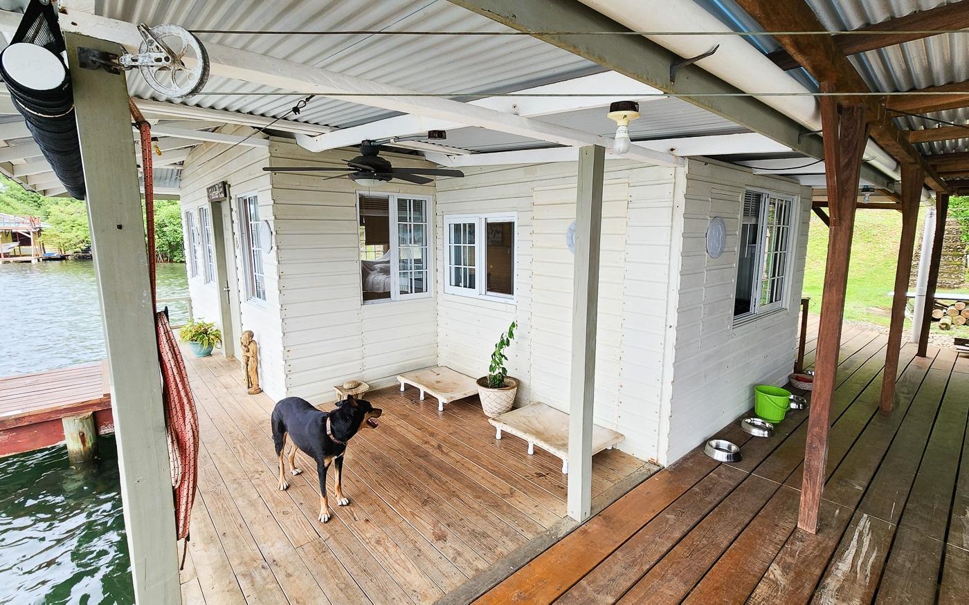Con orientación norte, excelente elevación y 117 metros de frente al mar, este lote de 2 hectáreas ofrece impresionantes vistas de la costa salpicada de islas del sistema Laguna Sur de Bocas del Toro. Al menos dos hermosos terrenos para construir adornan la cuidada ladera de la propiedad, donde la brisa del norte es constante. El terreno está plantado con árboles maduros de mango, pomarrosa, piña, plátanos y bananos. ¡Lo más emocionante de esta propiedad son los dos manantiales de agua dulce! Imagine relajarse en una refrescante piscina infinita natural disfrutando de las vistas. Una encantadora cabaña sobre el mar le da la bienvenida al pie de un impresionante terreno. Con una distribución tipo estudio, la cabaña cuenta con sala de estar y dormitorio combinados, con un baño en la parte trasera y una cocina independiente a un lado. El espacio se abre a un patio cubierto de 16 m² con comedor, y al otro lado hay un cobertizo para botes con ascensor y un taller donde se encuentran los sistemas aislados, que incluyen un generador de emergencia y baterías de litio de un año de antigüedad.