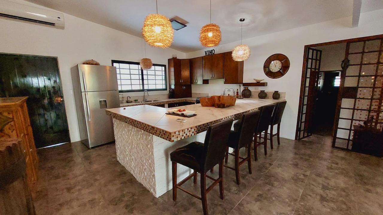 La propietaria de esta casa decidió llamar a su finca «Mi Otra Vida», como homenaje a su viaje desde la gran ciudad de Nueva Orleans al campo de Panamá. La casa ha sido completamente renovada de piso a techo, incluyendo un nuevo baño y una nueva cocina. La entrada principal de la propiedad tiene paredes blancas y un portón de hierro muy bonito. Hay un hermoso árbol justo en la entrada de la propiedad que proporciona mucha sombra, perfecto para aparcar su coche bajo, o simplemente para sentarse bajo su frondosa copa. La casa tiene 4 recámaras, uno con una oficina, y dos baños. La cocina de concepto abierto tiene un montón de gabinetes y una barra de desayuno agradable, perfecto para entretener a la familia e invitados. Las instalaciones de lavandería están en la gran terraza en la parte trasera de la casa. Hay un bonito bohío en un lado de la casa y la casa del cuidador es muy bonita. Los propietarios son amantes de los perros y han construido una bonita zona techada para sus perros en la parte trasera de la casa. Parte de la parcela está cercada alrededor de la casa principal para que los perros puedan correr libremente. El resto de la propiedad sigue abierta. En la parte trasera del lote de casi 1,3 acres (5.275 m2) corre el río Teta, que da nombre a la conocida Playa Teta, una playa ideal con grandes olas para los amantes del surf. La propiedad tiene muchos árboles frutales maduros, incluyendo mangos, papayas y limoneros. Usted realmente siente que está en medio de un oasis. Esta propiedad se encuentra en Costa Esmeralda, a escasos 2-3 km de Coronado, pero en una zona muy tranquila.