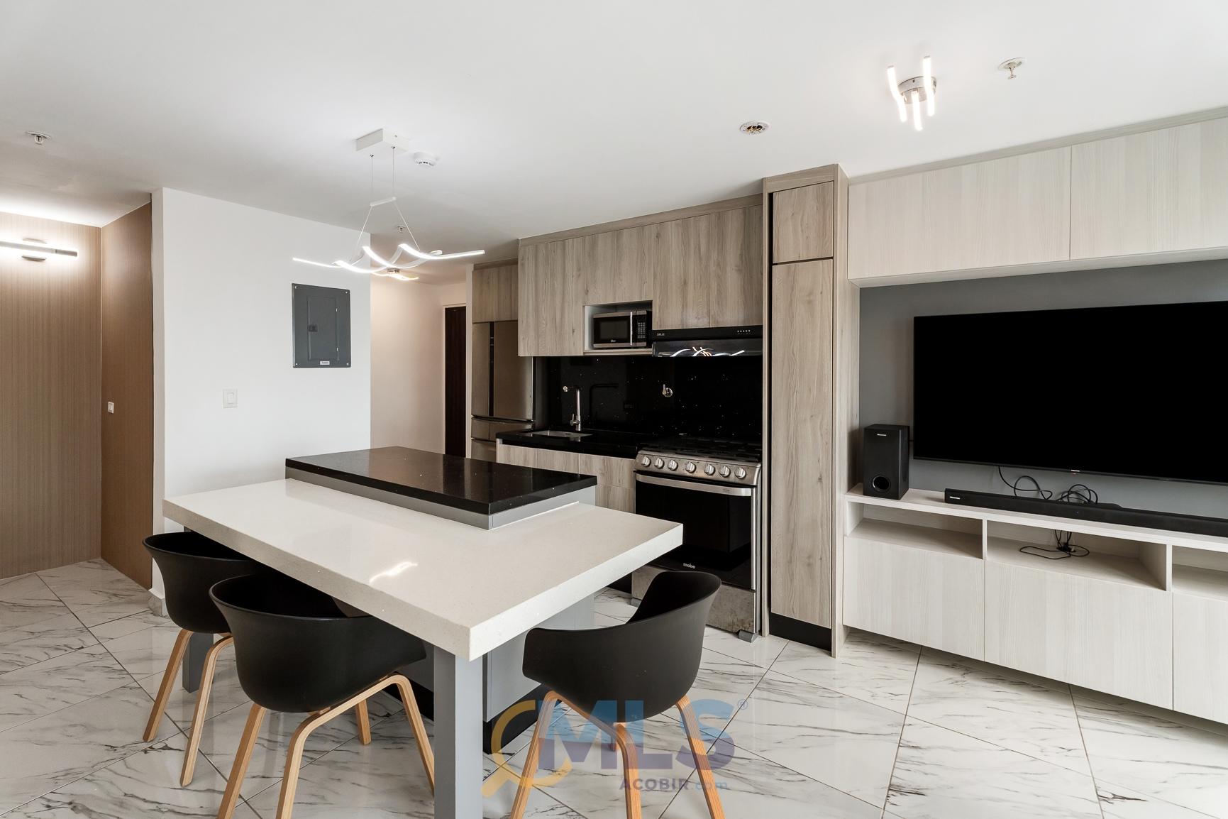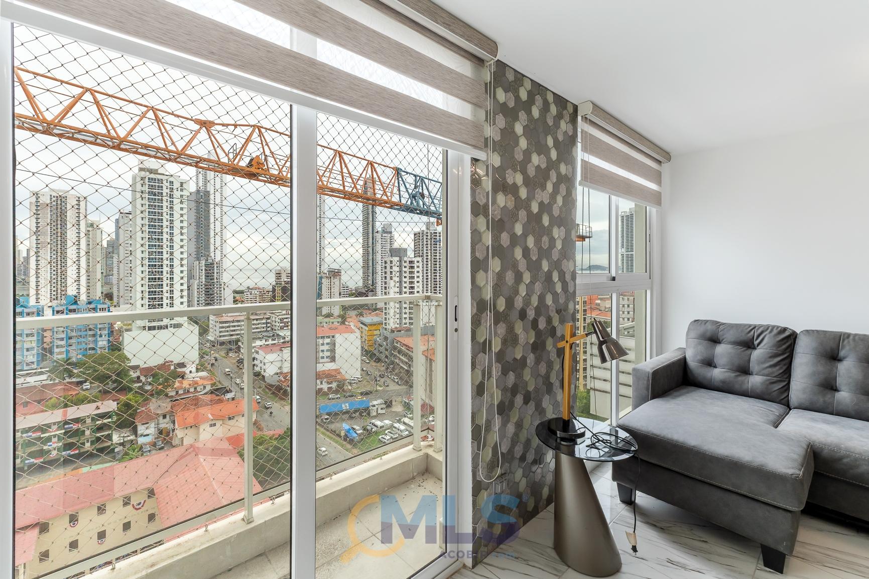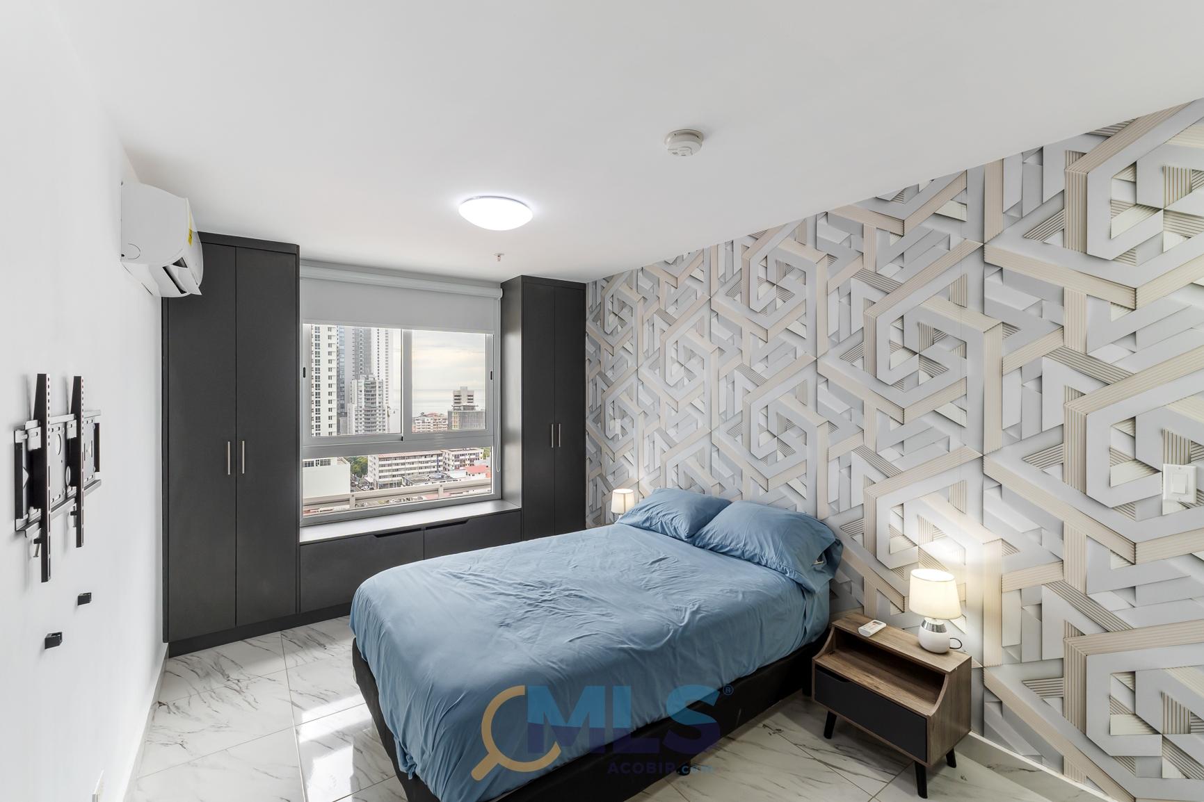 Apartamento de 1 habitación, amoblado y completamente remodelado con estratégica ubicación en Bella Vista, cerca de estaciones del metro, hospitales y con fácil acceso a diferentes vías principales de la Ciudad. Cuenta con 59 m2, con 1 habitación con dos closets lineales y baño privado. Sala-comedor con balcón, cocina integrada con isla que funciona como comedor. Closet de blancos. Pequeño espacio para oficina. Closet de lavandería. 1 estacionamiento en pool (no asignado). El edificio PH El Botánico en Bella Vista, fue construido en 2022 y cuenta con área social con piscina, área de co-working, juegos para niños, área para BBQ y área indoor para mascotas.