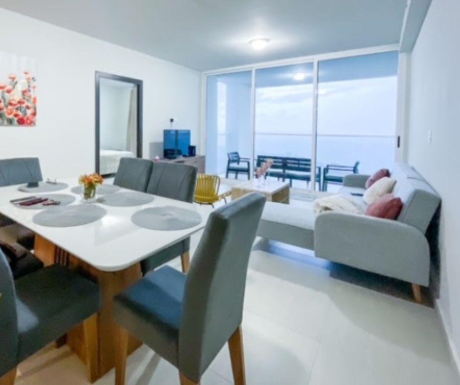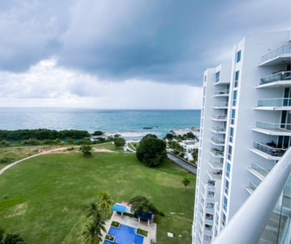 ¡Para estrenar! Espectacular apartamento con la mejor ubicación dentro de Playa Blanca, frente al mar y con vistas a las montañas y al parque eólico de Penonomé. El apartamento cuenta con 2 recámaras, 2 baños, 1 balcón frente al mar y ventanas con vista directa al parque eólico de penonomé y a la piscina salada más grande de Centroamérica y el Caribe. Tiene muebles y línea blanca totalmente nuevos. Con acceso a la piscina y a todas las amenidades del resort playa blanca. El apartamento posee área de servicio completa con recámara y baño. Ubicado en piso 15, siendo este edificio de 17 niveles. Totalmente amueblado con diseño moderno y práctico, construído en el año 2019.