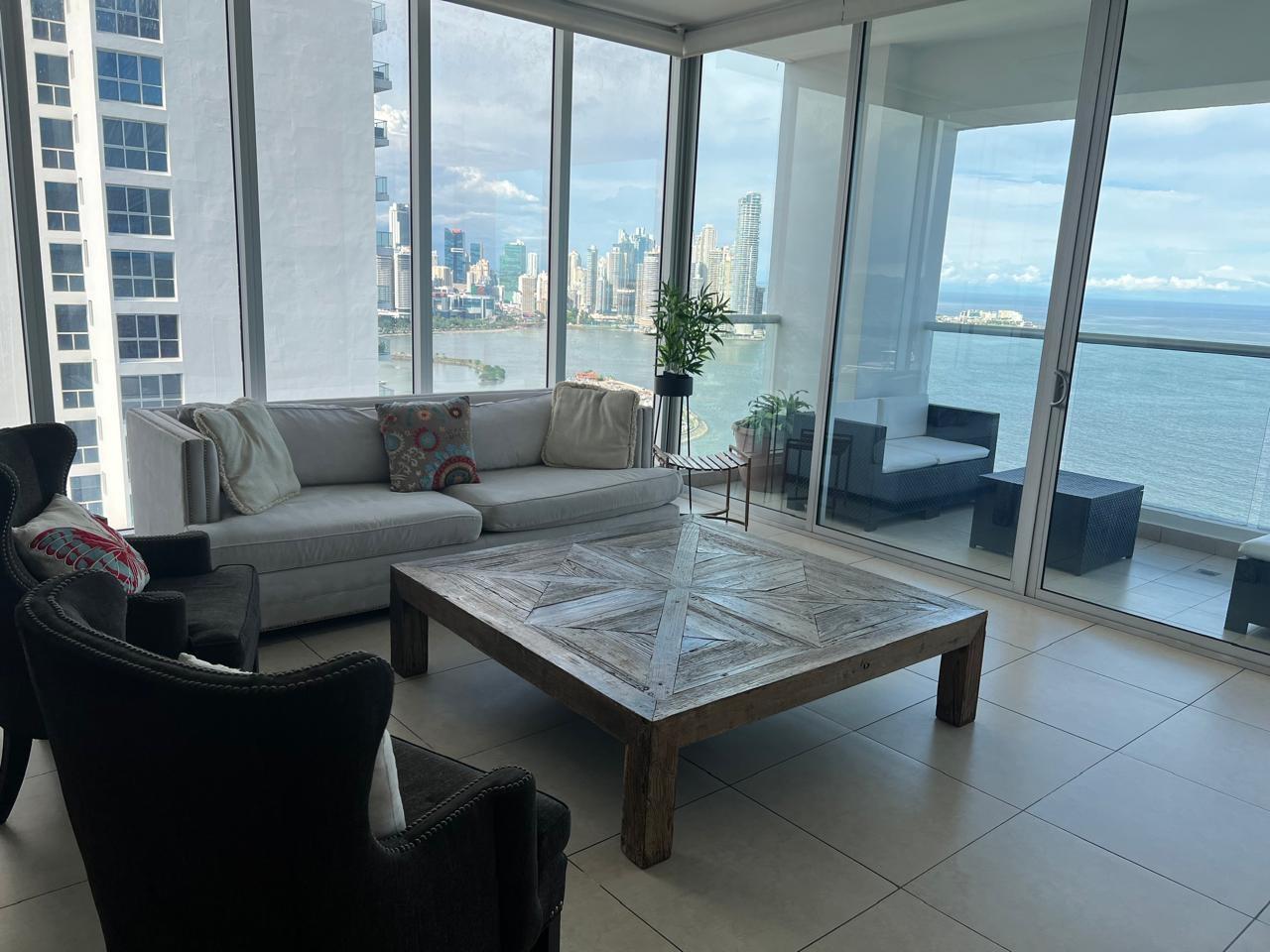 Venta de Apartamento Frente al Mar – PH Rivage Tower Área: 167.76 m² 2 habitaciones, cada una con su baño privado Sala Comedor Cocina abierta Cuarto y baño de servicio (C/B/S) Incluye: ✔ Amoblado ✔ Línea blanca completa ✔ Aires acondicionados ✔ Rollers screen motorizados ✔ Balcón con impresionante vista al mar, la ciudad y Casco Viejo ✔ 2 estacionamientos Amenidades del PH Rivage Tower: Piscina con vista al mar Gimnasio Spa Salón de eventos Seguridad 24/7 Conserjería y mantenimiento