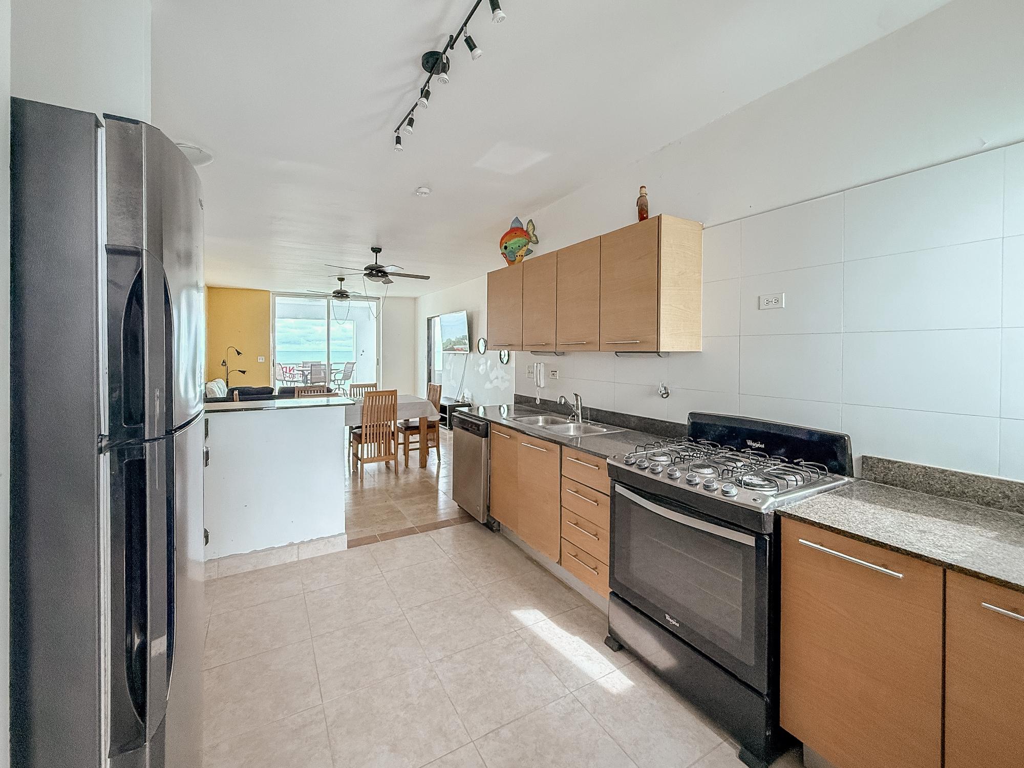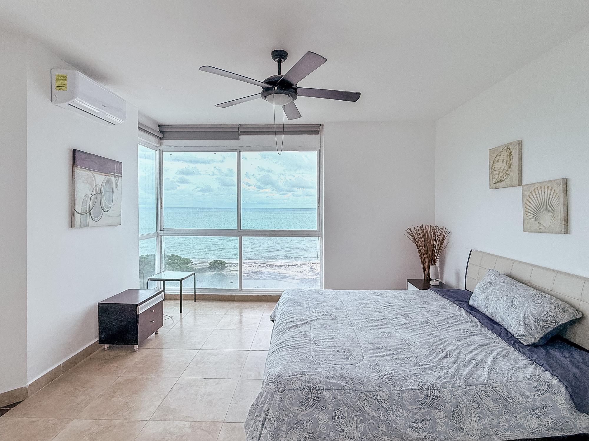 Encantador apartamento de playa frente al mar de 3 habitaciones, 2 baños, con balcón, cuarto y baño de servicio. Se vende completamente amoblado y tal como se muestra en las fotos. Disfruta de una cocina equipada con desayunador y medio baño de visitas. La recámara principal incluye walk-in closet, baño privado con dos lavamanos y aire acondicionado en todas las áreas. Las amenidades del complejo elevan la experiencia: acceso directo a playas, piscina, jacuzzi, áreas de BBQ, parque infantil, canchas deportivas, voleibol de playa, restaurante, spa, anfiteatro, deportes acuáticos y es pet friendly. No pierdas esta oportunidad de vivir junto al océano—agenda una visita hoy.