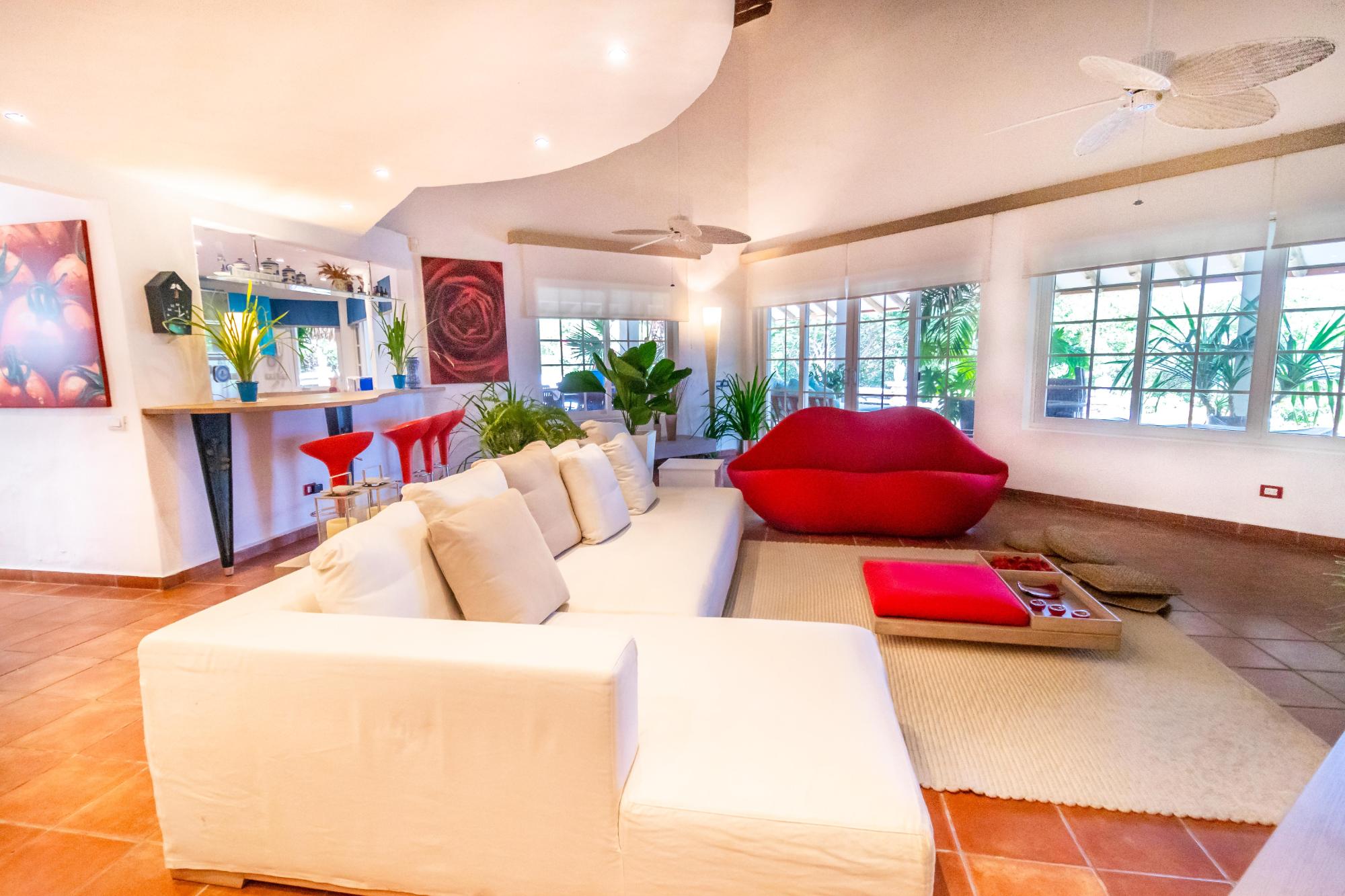 Exclusiva propiedad de playa en Punta Barco Resort rodeada de manglares con una extraordinaria vista al mar y una gran piscina privada única. Diseñada por los galardonados arquitectos Cambefort y Boza, esta impresionante propiedad contemporánea cuenta con un diseño abierto, una gran terraza al aire libre, 4 dormitorios cada uno con baños en suite, cocina, baño de invitados, lavadero. Junto a la piscina, un gran cenador techado con palmeras naturales, tiene un bar funcional, un horno de pizza de leña incorporado y una barbacoa. El bohío también tiene un elegante baño y una ducha de agua caliente al aire libre. Junto a la residencia principal hay una distintiva casa de huéspedes estilo loft de 2 pisos con baño en suite. La casa de huéspedes cuenta con un tronco de árbol pulido incorporado y puede acomodar hasta seis personas. Una plataforma de observación de madera se encuentra en una piscina de marea natural rodeada de manglares con vista al océano. El gran jardín muy bien cuidado está rodeado de altas palmeras que le dan a la propiedad una privacidad absoluta y poco común. La propiedad incluye una casita de 2 dormitorios para empleados con cocina, baño y un pequeño patio. En la parte delantera de la propiedad hay un garaje para 2 coches, espacio de estacionamiento adicional para 4 coches y 2 depósitos de almacenamiento. La propiedad también cuenta con 2 grandes tanques de reserva de agua y un generador de electricidad a gas con capacidad suficiente para cubrir todo el complejo, ambos bien escondidos detrás de un muro de piedra natural en el jardín.