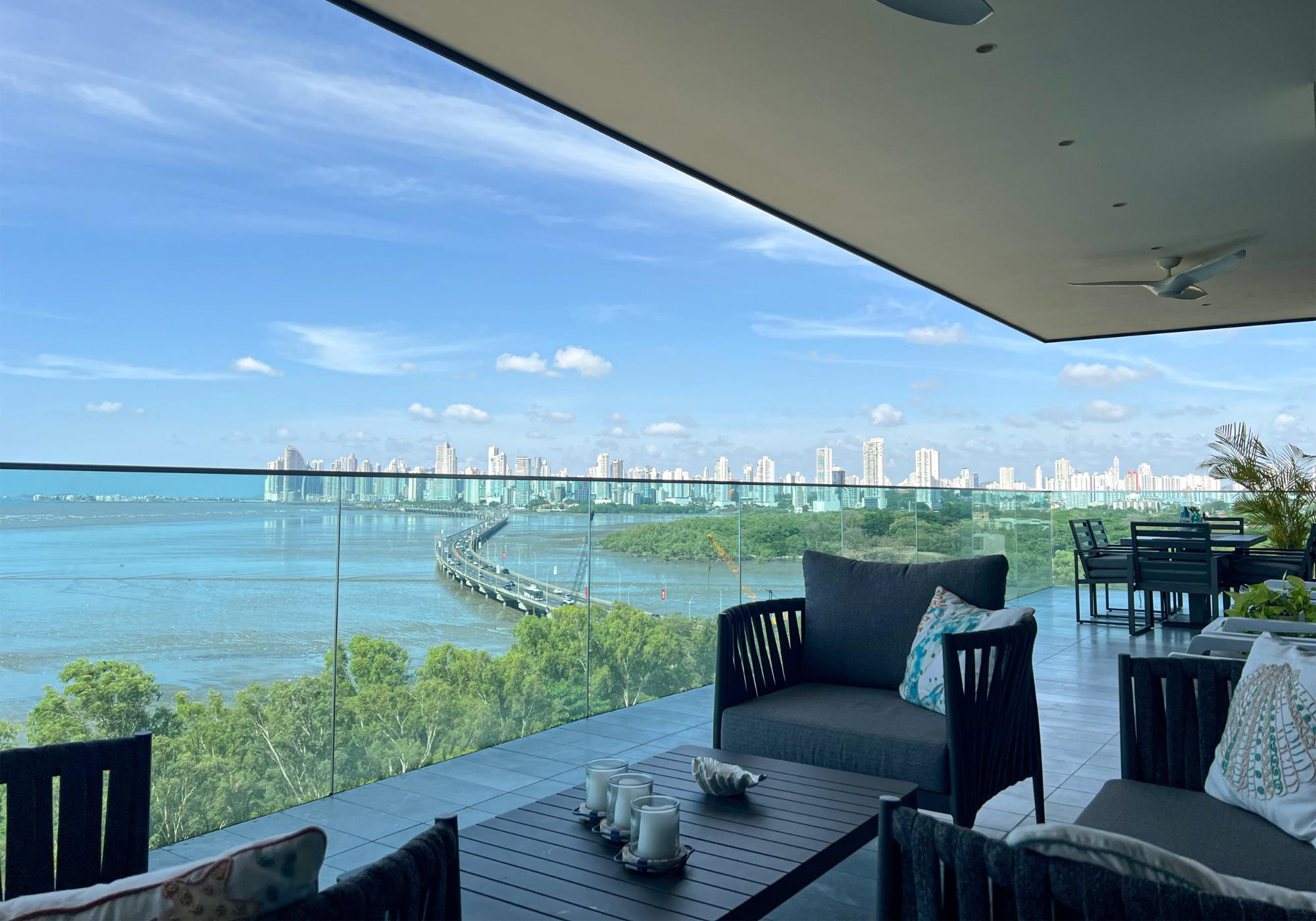 Bienvenido a una obra maestra del lujo contemporáneo en Upper East Tower, donde el océano se encuentra con el cielo en perfecta armonía. Esta residencia de 443 m² completamente amueblada ofrece una sala de estar y comedor de concepto abierto que se extiende hacia una amplia terraza con vista al mar, perfecta para presenciar el impresionante amanecer sobre la Bahía de Panamá. Diseñada para la comodidad y la elegancia, esta casa de cuatro habitaciones cuenta con baños en suite, una sala familiar privada y acabados exquisitos en todas partes. La cocina abierta de última generación, perfectamente integrada en el área social, está equipada con electrodomésticos de primera calidad para una experiencia culinaria refinada. Los residentes disfrutan de acceso privado al ascensor, techos altos y ventanas de piso a techo que inundan el espacio con luz natural. La torre ofrece comodidades estilo resort, que incluyen una piscina frente al mar, espacios de arte seleccionados y un área de mercado vibrante, creando un estilo de vida incomparable en la dirección más prestigiosa de Costa del Este.
