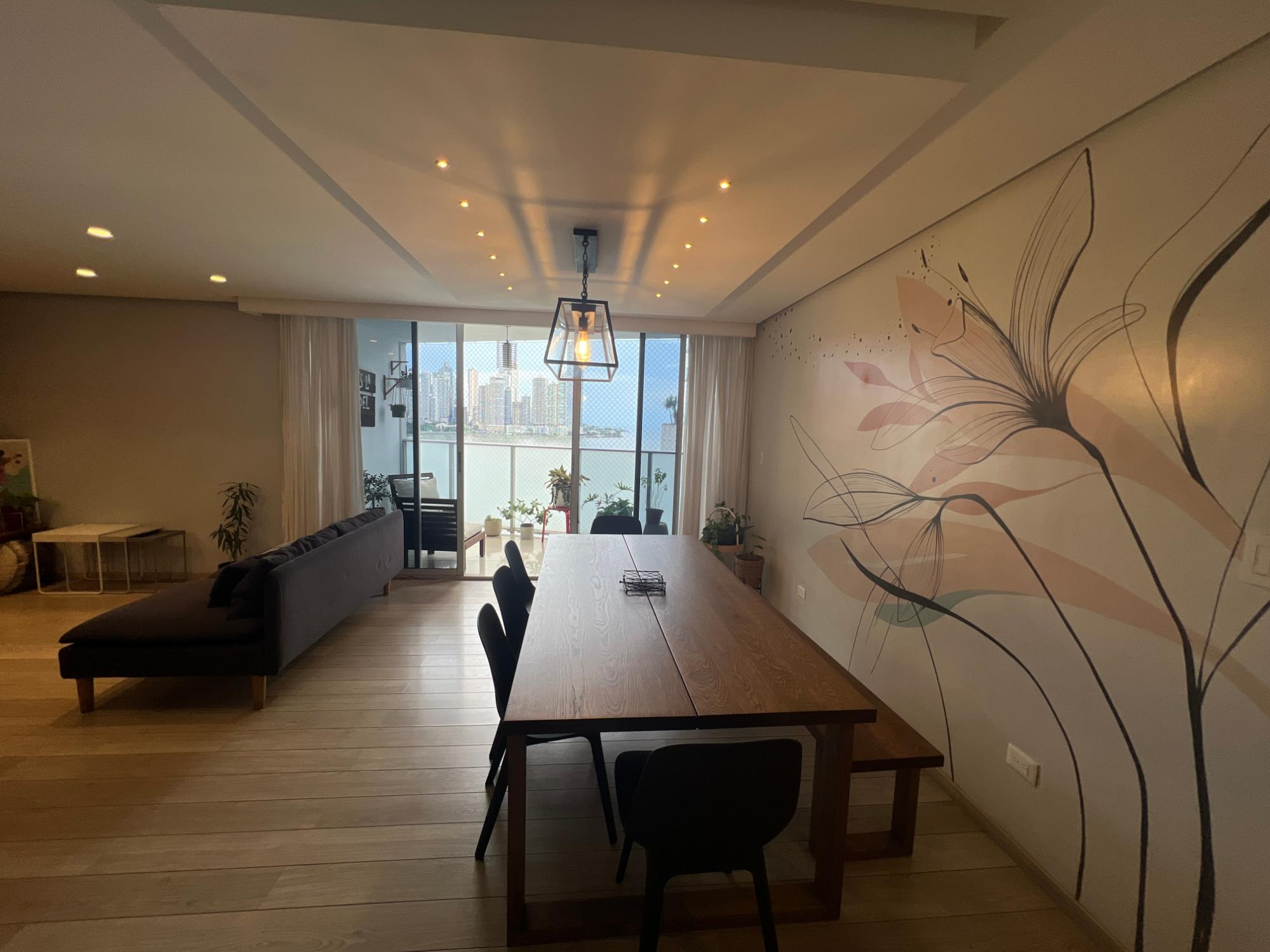 ¡Bienvenido a su nuevo hogar en el corazón de Bella Vista, Panamá! Este apartamento de 3 dormitorios y 2 baños se estrena en el mercado de alquiler, ofreciendo un estilo de vida moderno y cómodo. Con una amplia superficie de 143 m2, esta propiedad es perfecta para quienes buscan espacio y funcionalidad en un entorno contemporáneo y privado. La propiedad está equipada con características de primera clase, que incluyen aire acondicionado en splits, armarios empotrados y baños con acabos. Además, cuenta con una cocina bien equipada con horno de gas convencional, nevera, microondas y una lavadora y secadora conjunta. La elegancia de los muebles de cocina brinda un toque cómodo al espacio. Los servicios del edificio hacen que este lugar sea único, incluyendo una piscina, gimnasio y un generador eléctrico de emergencia. Para su comodidad, el apartamento dispone de 2 espacios de estacionamiento, ascensor, seguridad las 24 horas y un tanque de agua, asegurando un suministro continuo y seguro. Las comodidades cercanas como el Parque Urracá, hospitales y transporte público hacen de su ubicación un punto estratégico con fácil acceso a las tiendas, restaurantes y otras conveniencias diarias. Este apartamento decorado con estilo contemporáneo y amoblado, ofrece vistas panorámicas al mar, proporcionando un entorno sereno para vivir. Con su ubicación céntrica, cerca de la estación de metro y de un parque con juegos infantiles, esta propiedad garantiza una conectividad extraordinaria para una vida urbana dinámica en Panamá.