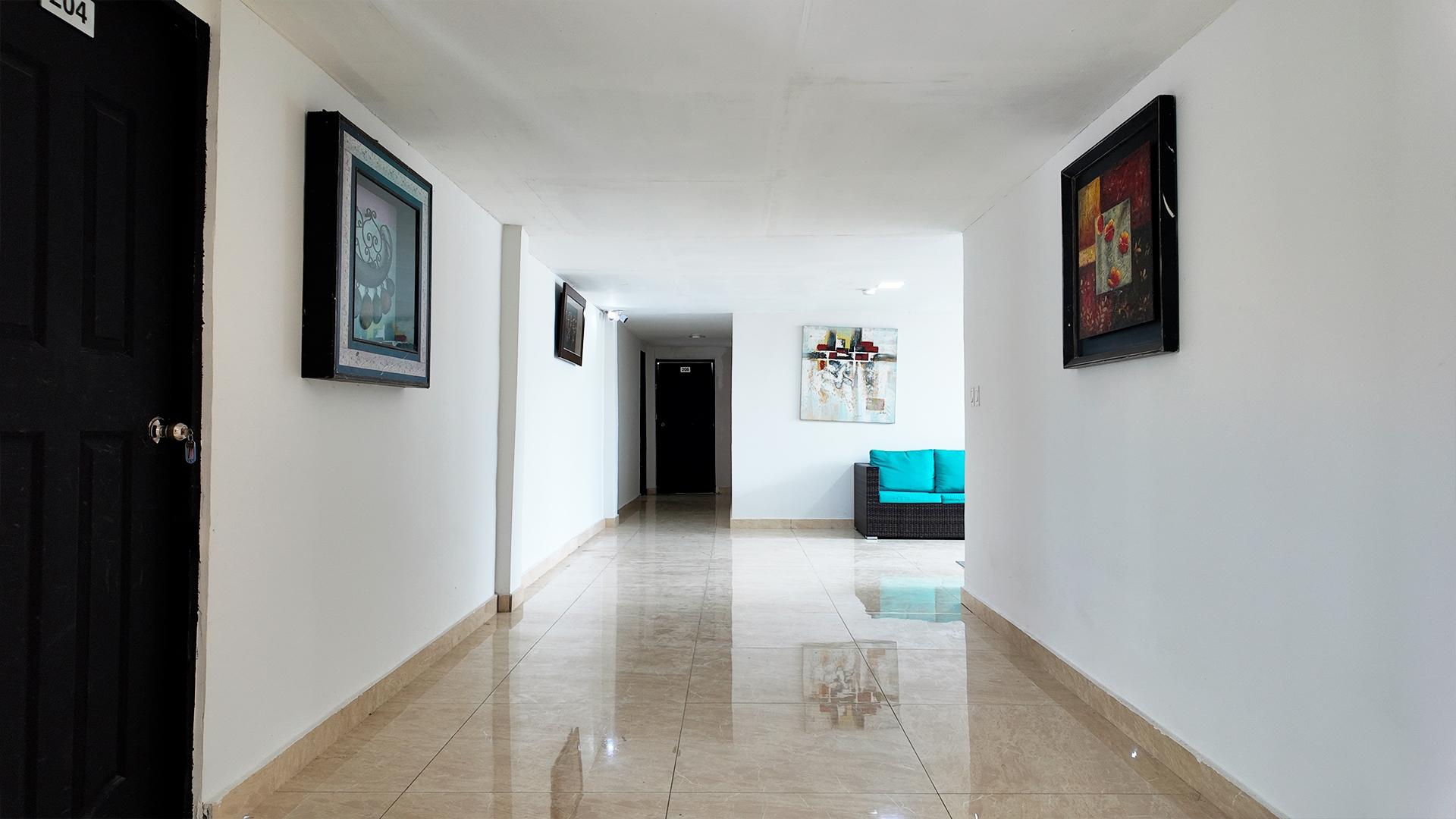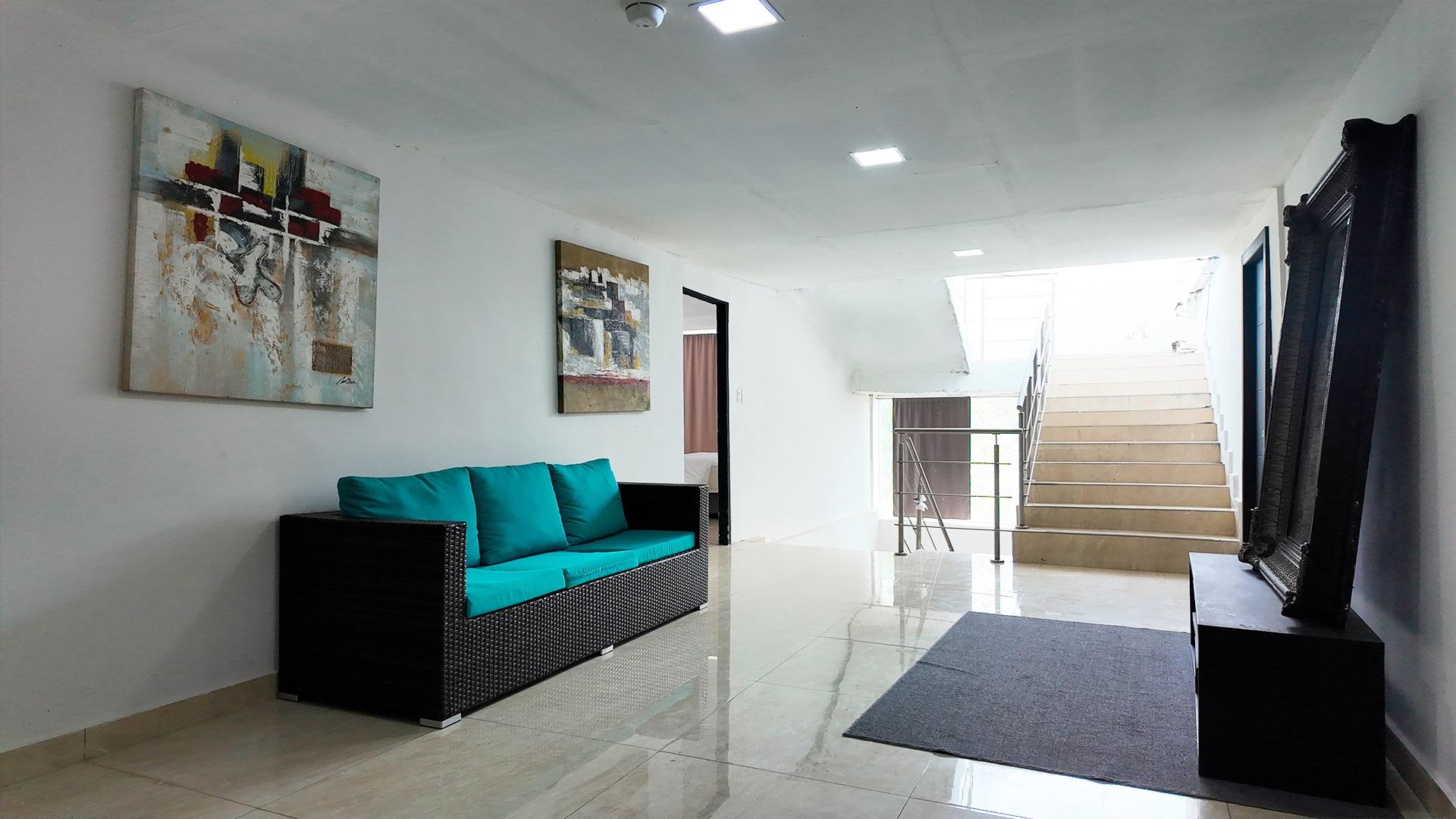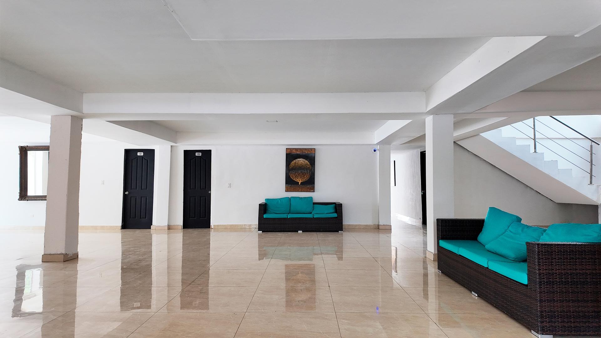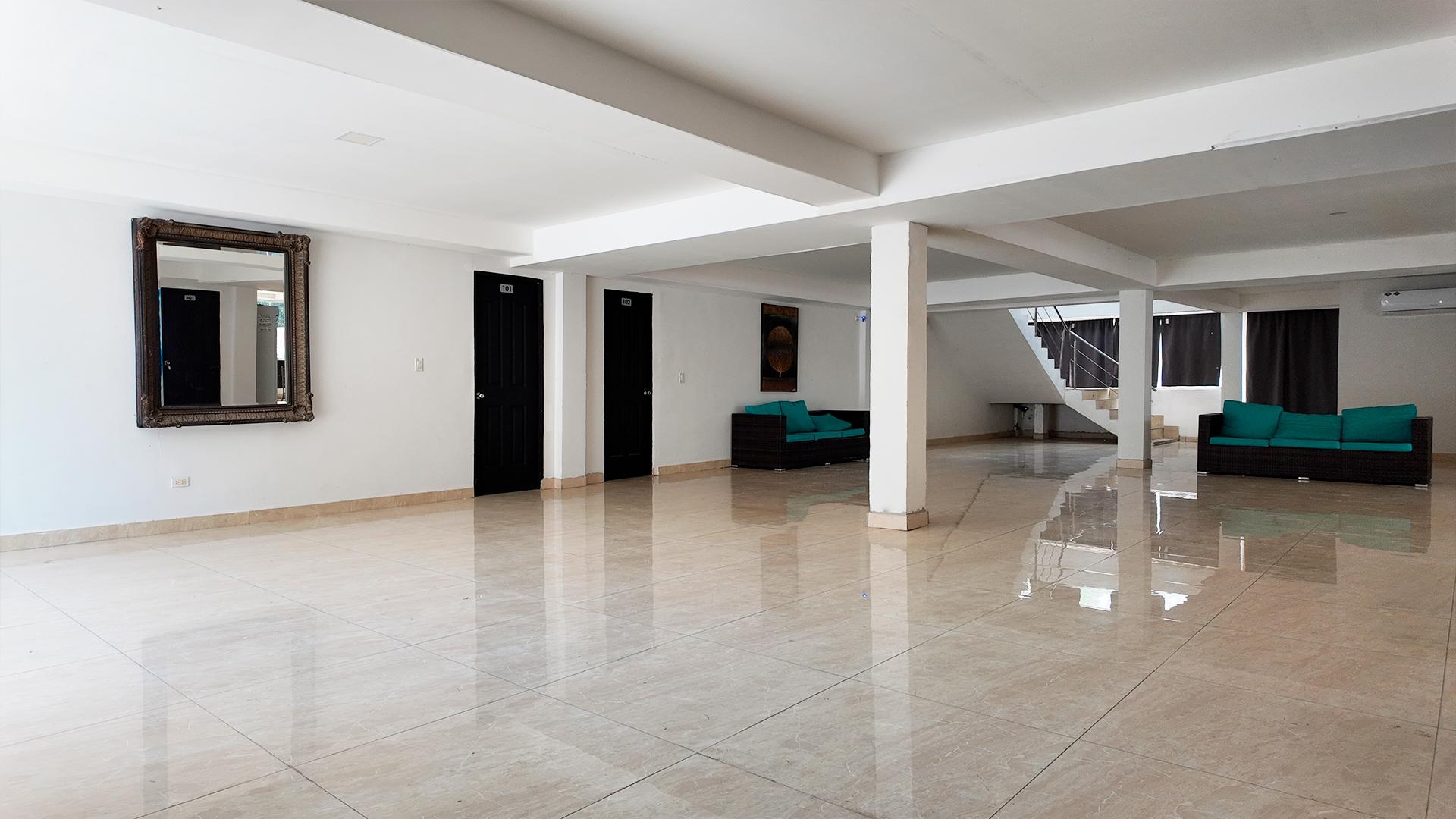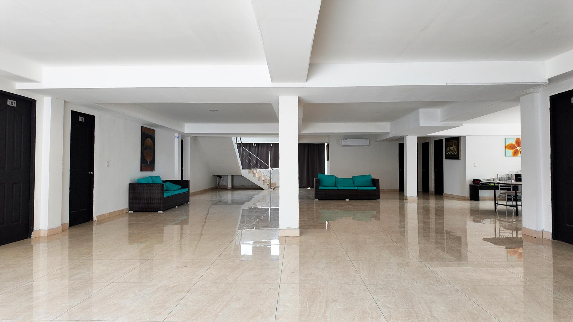 Consta de dos plantas. La planta baja está compuesta por lobby, cocina, lavandería, cuarto de servicio, cuatro habitaciones y dos servicios sanitarios. La planta alta está compuesta por sala de estar, siete habitaciones, cada una con walk in closet y su servicio sanitario. Mantiene piso de porcelanato junto a cielo raso de gypsum y techo de losa de hormigón. Las paredes son de bloques repelladas y pintadas a ambas caras.