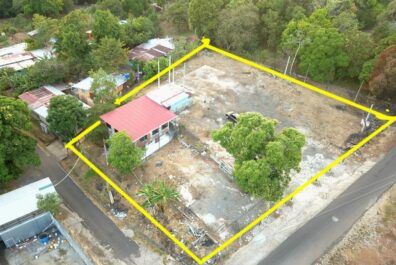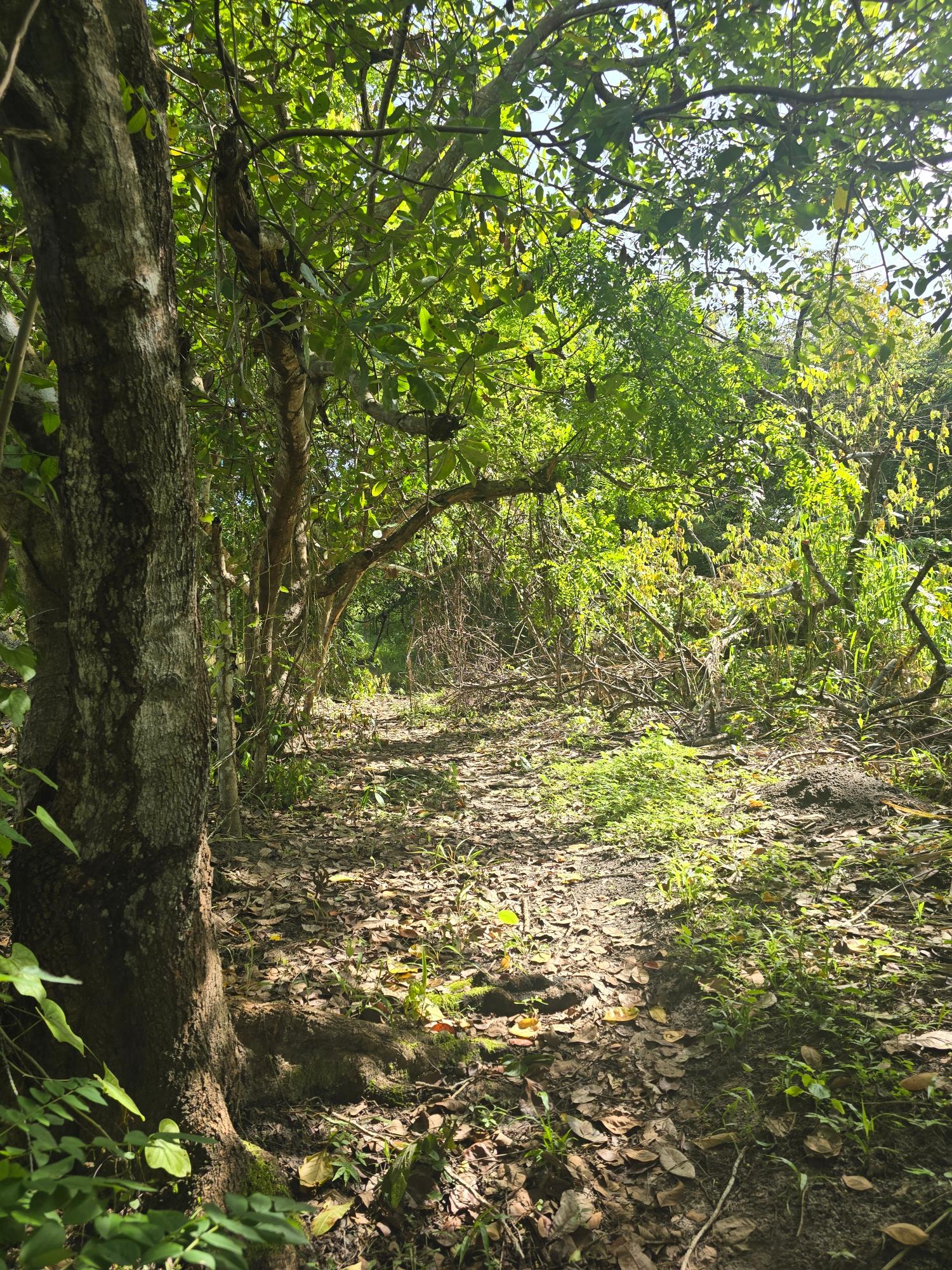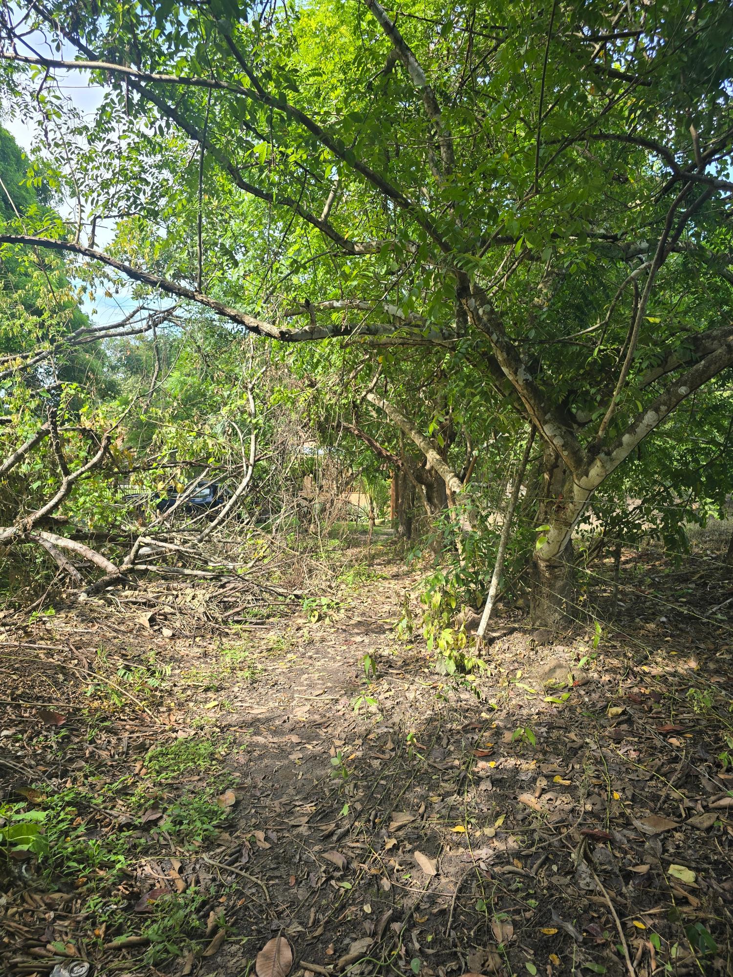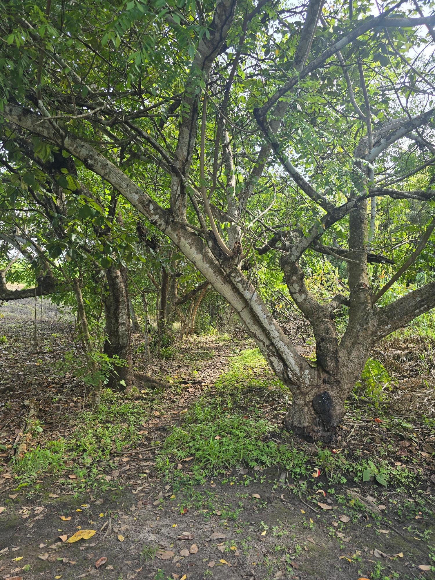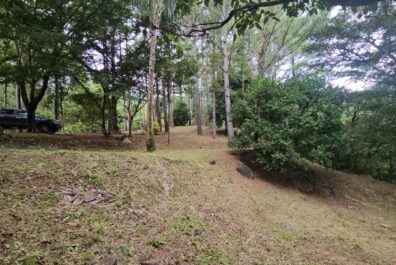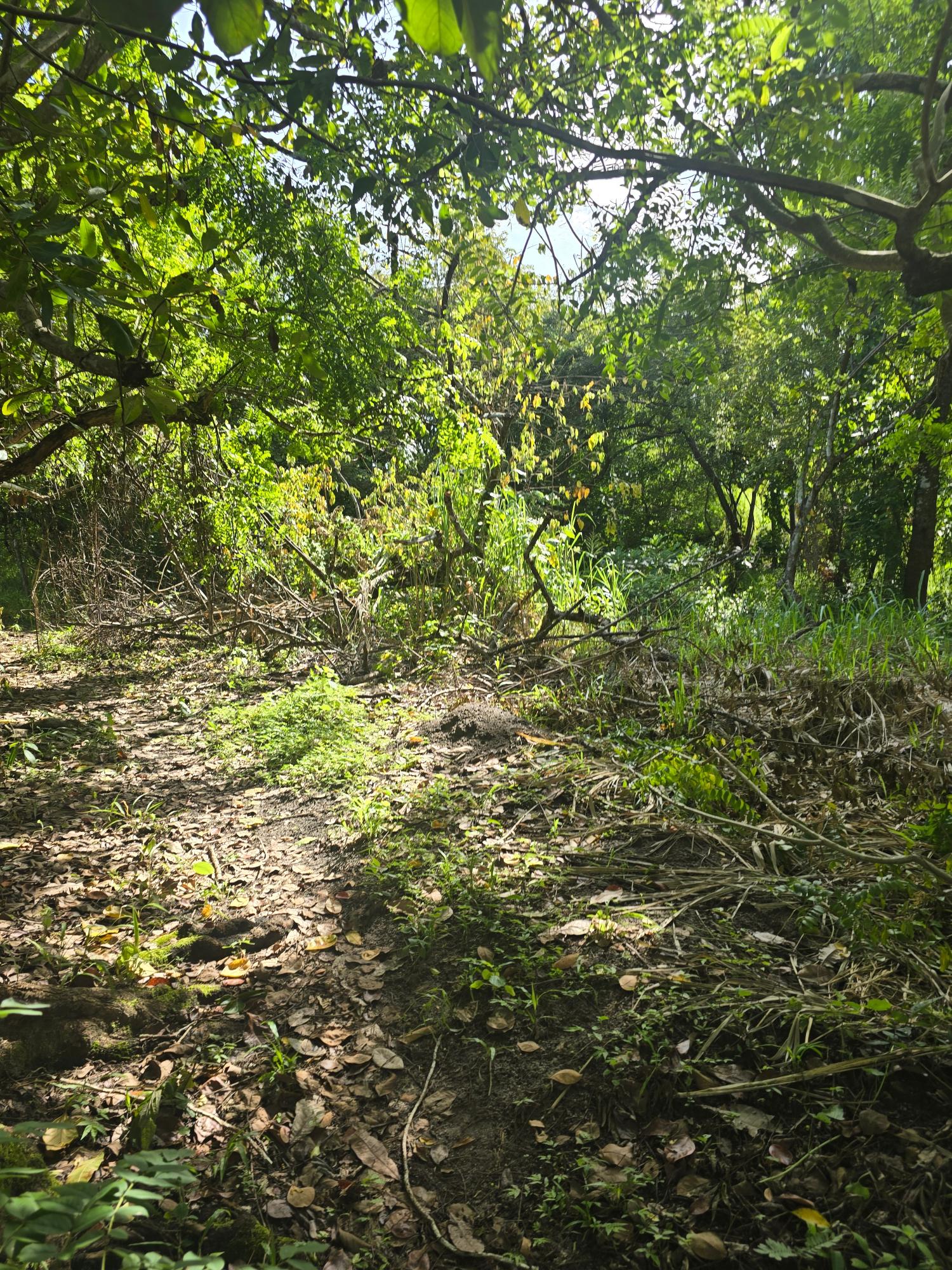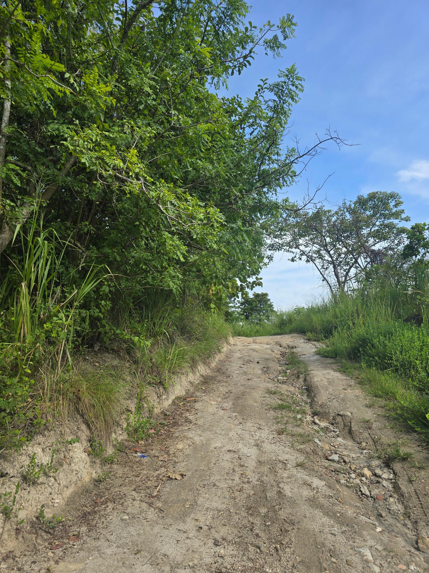 Terreno con vegatación y árboles, con carretera, acceso a tendido eléctrico y agua.