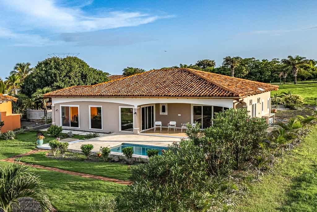 Sound of the Sea en Pedasí combina la comodidad moderna con un relajado estilo de vida costero. Diseñada con espacios abiertos y techos abovedados con vigas de madera a la vista, la casa se siente espaciosa y luminosa. Grandes puertas de cristal conectan la sala de estar interior con la terraza de la piscina y el jardín, perfecto para relajarse o entretenerse con vistas al océano. En el interior, la villa ofrece una distribución práctica con dos dormitorios y una sala de lectura, ideal para trabajar o para momentos de tranquilidad. La suite principal cuenta con armarios a medida, un elegante baño en suite y acceso directo a la zona de la piscina. La cocina está totalmente equipada con encimeras de granito, electrodomésticos de alta calidad y una amplia isla para disfrutar de comidas informales. Una terraza acristalada independiente con ventanales de suelo a techo crea un espacio tranquilo para disfrutar del paisaje del jardín. La casa tiene una superficie total de construcción de 280 m² (171 m² interiores y 109 m² exteriores) en un terreno de 1260 m². Cuenta con 2.5 baños y la propiedad se beneficia de una exención de impuestos hasta 2034. La cuota mensual de la Asociación de Propietarios (HOA) es de $176.46, lo que garantiza áreas comunes bien mantenidas y tranquilidad. Además, incluye una lavandería funcional, un garaje de techo alto y un jardín maduro con plantas nativas y senderos de piedra. Esta villa, lista para entrar a vivir, es perfecta como un tranquilo refugio costero o como residencia permanente en una de las comunidades de playa más encantadoras de Panamá. Contáctenos hoy mismo para obtener más información o programar una visita.