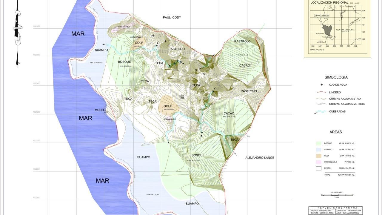 Terreno de 100 hectáreas en Isla Cristobal, Bocas del Toro. Perfecto para desarrollar proyecto de playa con hoteles, marina, bungalows, etc.