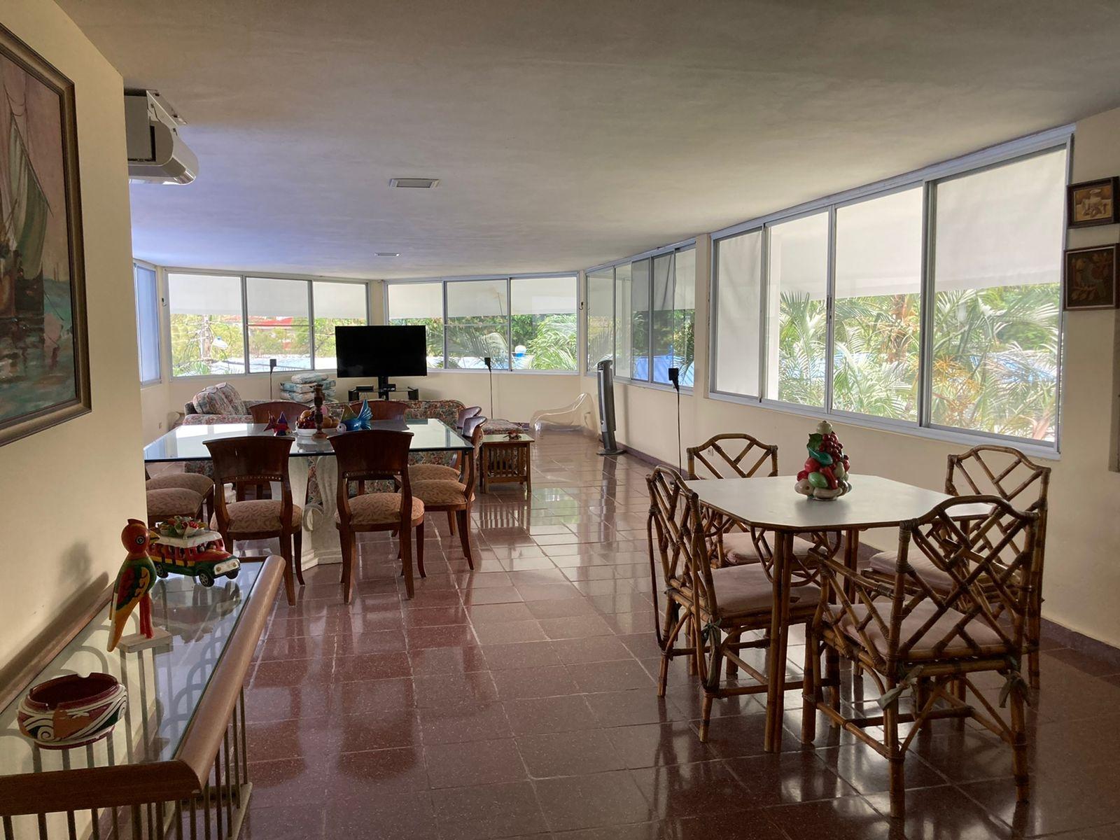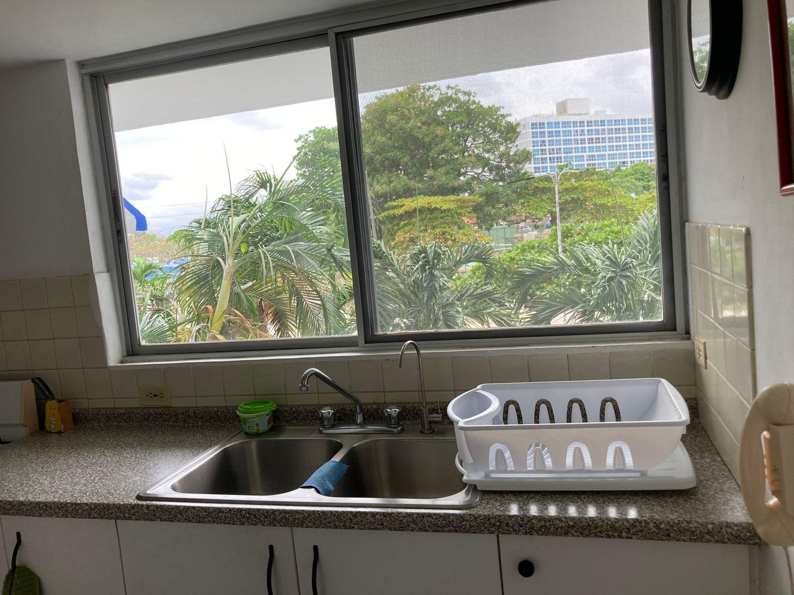 Es un apartamento amoblado de tres recamaras, sala comedor, cocina, 2 baños para las recamaras y cuarto de empleada con su baño.