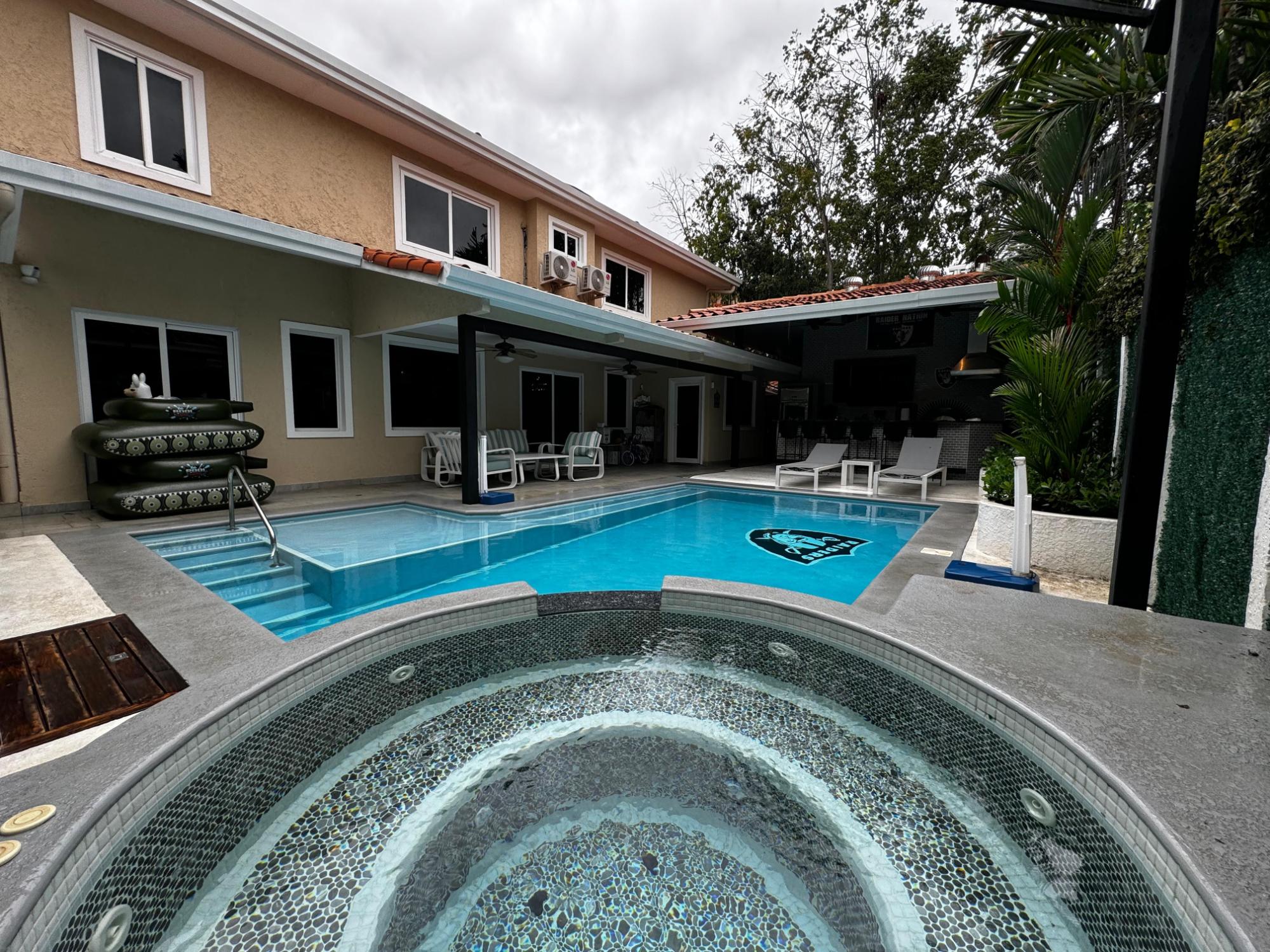 Casa de Lujo en Venta – Costa Bella, Costa del Este Oportunidad ideal para inversionistas: propiedad actualmente alquilada en $5,200 mensuales por un año. Los inquilinos cubren servicios como agua, luz e internet. Características generales: -Área total: 465.35 m² -5 dormitorios -7 baños -2 pisos -6 estacionamientos -Piscina en forma de L y jacuzzi -Cocina exterior equipada -Depósito de 2 pisos -Patio trasero con terraza cubierta Distribución: -Planta baja: sala-comedor de concepto abierto, baño de visitas, dormitorio con baño privado, oficina, cocina completamente equipada, lavandería, cuarto y baño de empleada. -Planta alta: dormitorio principal con baño en suite y vestidor, 3 dormitorios, 2 baños adicionales, sala familiar y área de TV. Toda la casa tiene ventanas de vidrio templado doble para reducir calor y consumo de A/C. Renovaciones recientes: -Casa completamente remodelada en 2023, con mejoras en techos (2024), escaleras, closets, puertas y acabados de alta gama. Área social y entretenimiento: -Cocina exterior con doble encimera, fregadero doble, parrilla empotrada COYOTE de 36”, horno para pizza Alfa, extractor de calidad comercial, máquina de hielo Scotsman, refrigerador Carbone. -Smart TV LG de 95” y medio baño exterior. -Sistema de aspersores automático. Baños: 7 baños totalmente remodelados con acabados modernos, distribuidos entre ambas plantas, incluyendo baño exterior y de servicio. Cocina interior: Amplia y funcional, con cerámica nueva, doble nevera LG con dispensador, lavavajillas, estufa Frigidaire a gas, campana extractora, microondas doble, horno térmico y amplio espacio de almacenamiento. Aire acondicionado: 9 unidades en total: 7 LG Dual Inverter y 2 Panasonic Inverter, para eficiencia energética y confort. Exterior: Estacionamiento techado para 6 vehículos, 2 trasteros cerrados y jardines con sistema de riego automatizado. Ubicación privilegiada: Costa Bella se ubica en Costa del Este, una de las zonas más exclusivas de la ciudad. Se destaca por su seguridad, infraestructura moderna, parques, áreas verdes y cercanía a centros comerciales, colegios y oficinas corporativas.