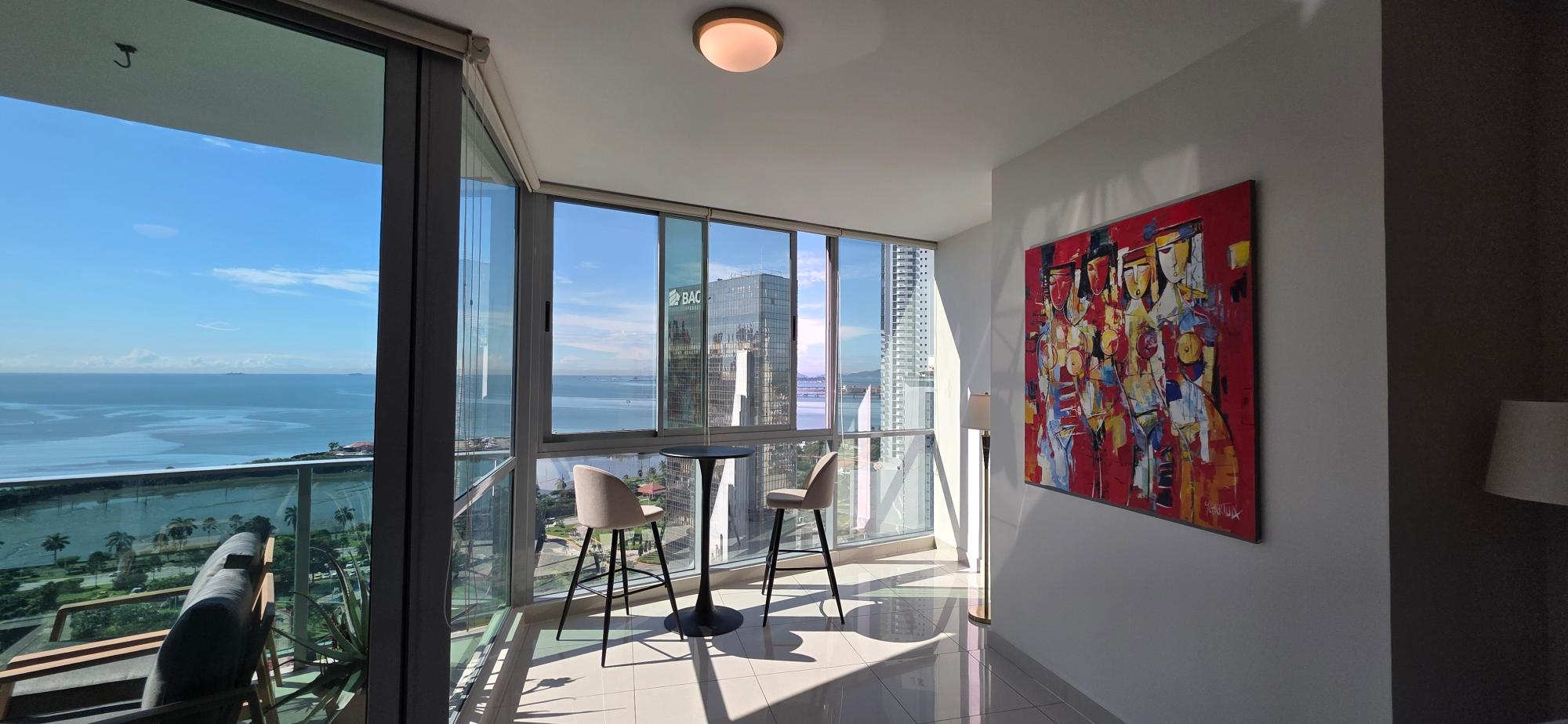 Se vende apartamento impecable con balcón y espectacular vista al mar. Tiene 287m2, cuenta con 3 recámaras (recámara principal con ventanas de piso a techo con vista al mar y 2 Walk-in Closet para el y ella), luz y ventilación natural. 3.5 baños (recámara principal con tina) Apartamento con den, sala, comedor, sala, cocina, área de lavandería (toda la línea blanca de la cocina y lavandería marca Samsung con SmartThings: estufa, refrigeradora lavaplatos, lavadora y secadora), cuarto y baño de empleada. Cuenta con todos los aires acondicionados nuevos marca Panasonic Inverter y mangas de aires instalados por profesionales para mantener su garantía. Cuenta con estacionamientos para 3 autos y depósito. El PH Allure at the Park es uno de los edificios más cotizados de la ciudad de Panamá por su estratégica ubicación en el corazón de Bella Vista frente al Parque Urraca y a paso elevado a la Ave Balboa/Cinta Costera. El edificio cuenta con lujoso y amplio lobby, estacionamientos de visitas, seguridad 24/7, servicio concierge. Área social uno de los más completos de Panamá con piscina, sauna, gimnasio, salón estudio de yoga/pilates, salón de reuniones con cocina, cancha de squash, juego de niños, área lounge y mucho más.