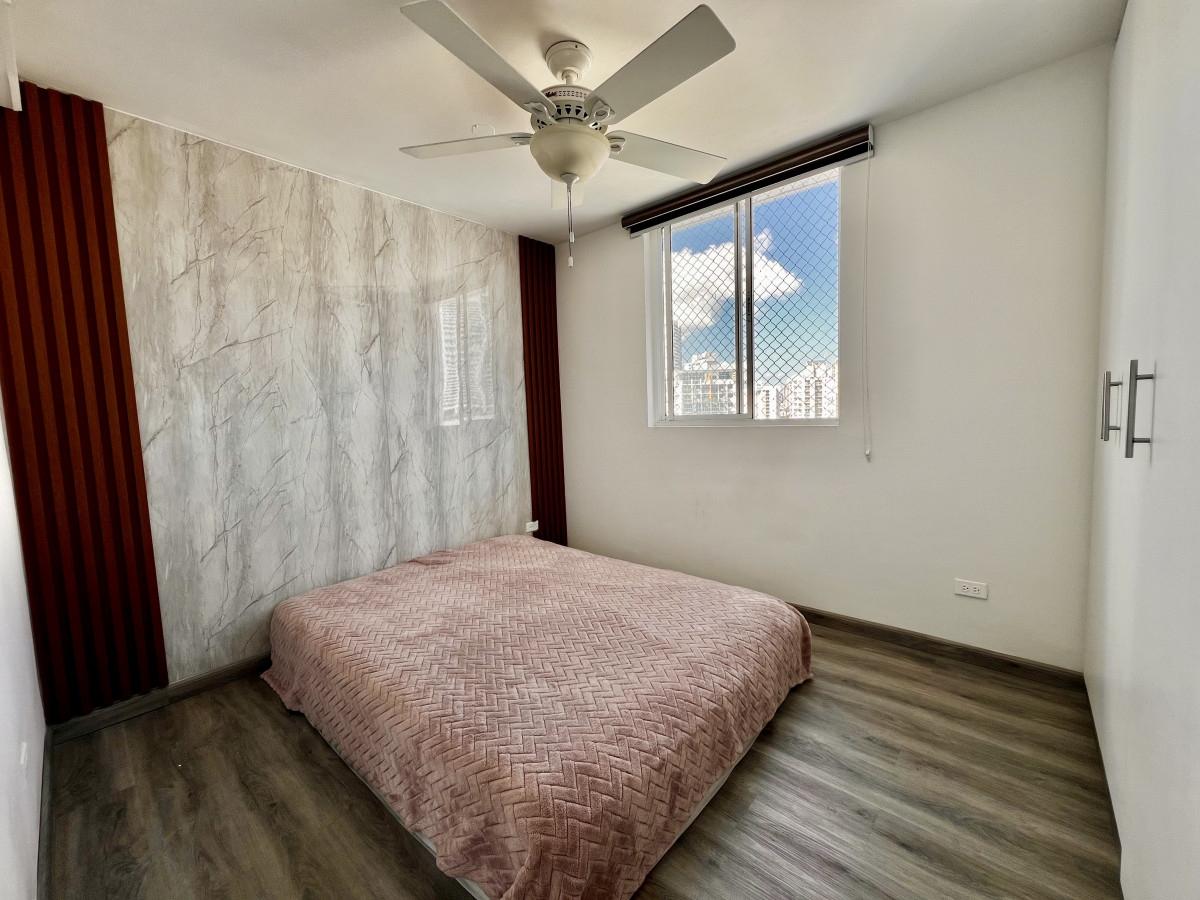 Ubicación privilegiada en San Francisco, cerca de Parque Omar, colegios, supermercados, farmacias, transporte público y Vía España. Características del apartamento:76 m², 2 recámaras, 2 baños completos, Sala-comedor amplia y luminosa, Cocina cerrada, Área de lavandería, Balcón, 1 estacionamiento. Características del edificio: Piscina, Salón de eventos, Seguridad 24/7 y control de acceso, Elevadores.