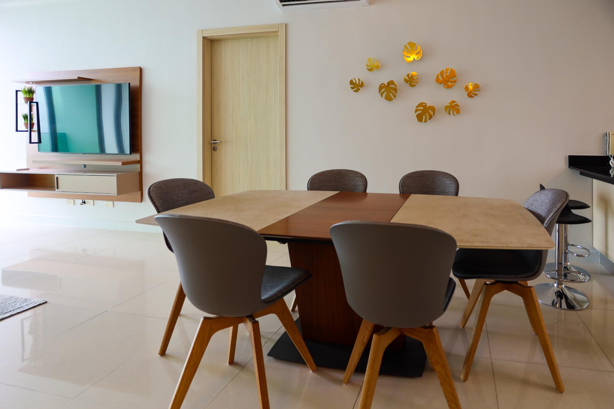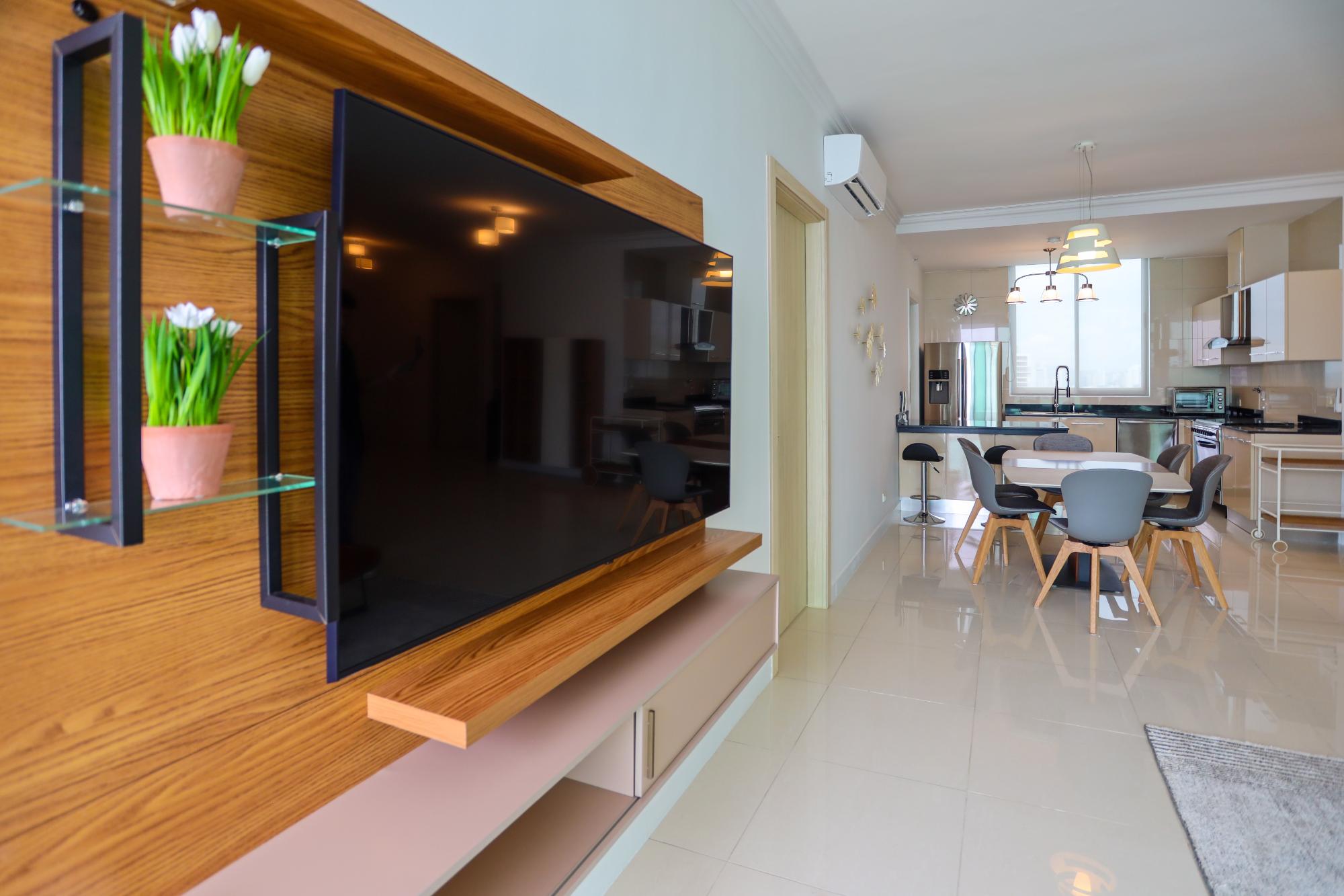 Disfruta de vivir en una de las zonas más céntricas y cotizadas de la ciudad en este hermoso apartamento completamente remodelado y amoblado, con acabados modernos, excelente distribución y vista al mar. Distribución: 134 m² 2 recámaras (principal con walk-in closet) 2 baños Sala familiar Comedor Balcón con vista Cocina con desayunador Área de lavandería 2 estacionamientos Depósito Incluye: Línea blanca completa Aires acondicionados Cortinas y decoración Planta eléctrica total Ascensor principal y de servicio Áreas sociales completas: Piscina Sauna y baño turco Gimnasio Área de juegos para niños Seguridad privada 24/7 Mantenimiento: $201.00 Excelente ubicación, cerca de parques, supermercados, restaurantes y con fácil acceso al Corredor y la Cinta Costera