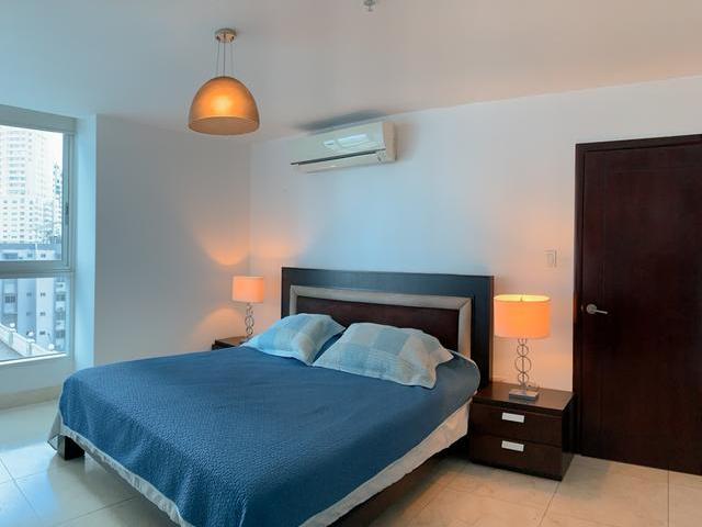 El apartamento cuenta con 108.60 mt2, 2 recámaras, 2 baños completos, sala, comedor, cocina abierta, balcón, La recámara principal cuenta con un espacioso walk in closet. El Edificio se encuentra frente a la Cinta Costera, y posee un área social completa con piscina, jacuzzi, salón de fiestas, jardín, sala de billar, tenis de mesa y gimnasio totalmente equipado.