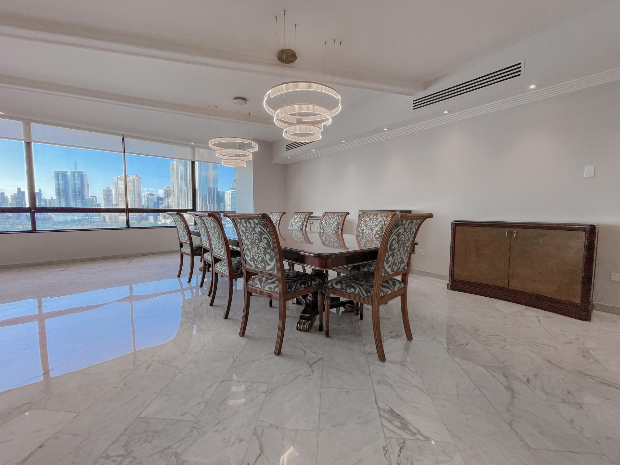 Exclusivo apartamento en PH Villa Marina – Punta Paitilla Oportunidad en uno de los residenciales más exclusivos de Punta Paitilla. Con 337.94 m2, este apartamento ofrece una amplia sala-comedor con vista al mar, den familiar, baño de visitas, tres recámaras con walk-in closet y baño privado, cocina independiente con desayunador, espaciosa lavandería, baño de servicio y dos estacionamientos. El PH cuenta con un elegante lobby de doble altura, dos ascensores principales de alta velocidad y un ascensor de servicio. Su área social remodelada incluye piscina para adultos y niños, salón de eventos, gimnasio totalmente equipado, cancha de basketball, cancha de squash, salón de aeróbicos y sauna. Vive con exclusividad, comodidad y una vista espectacular. Contáctanos para más información o para agendar una visita.